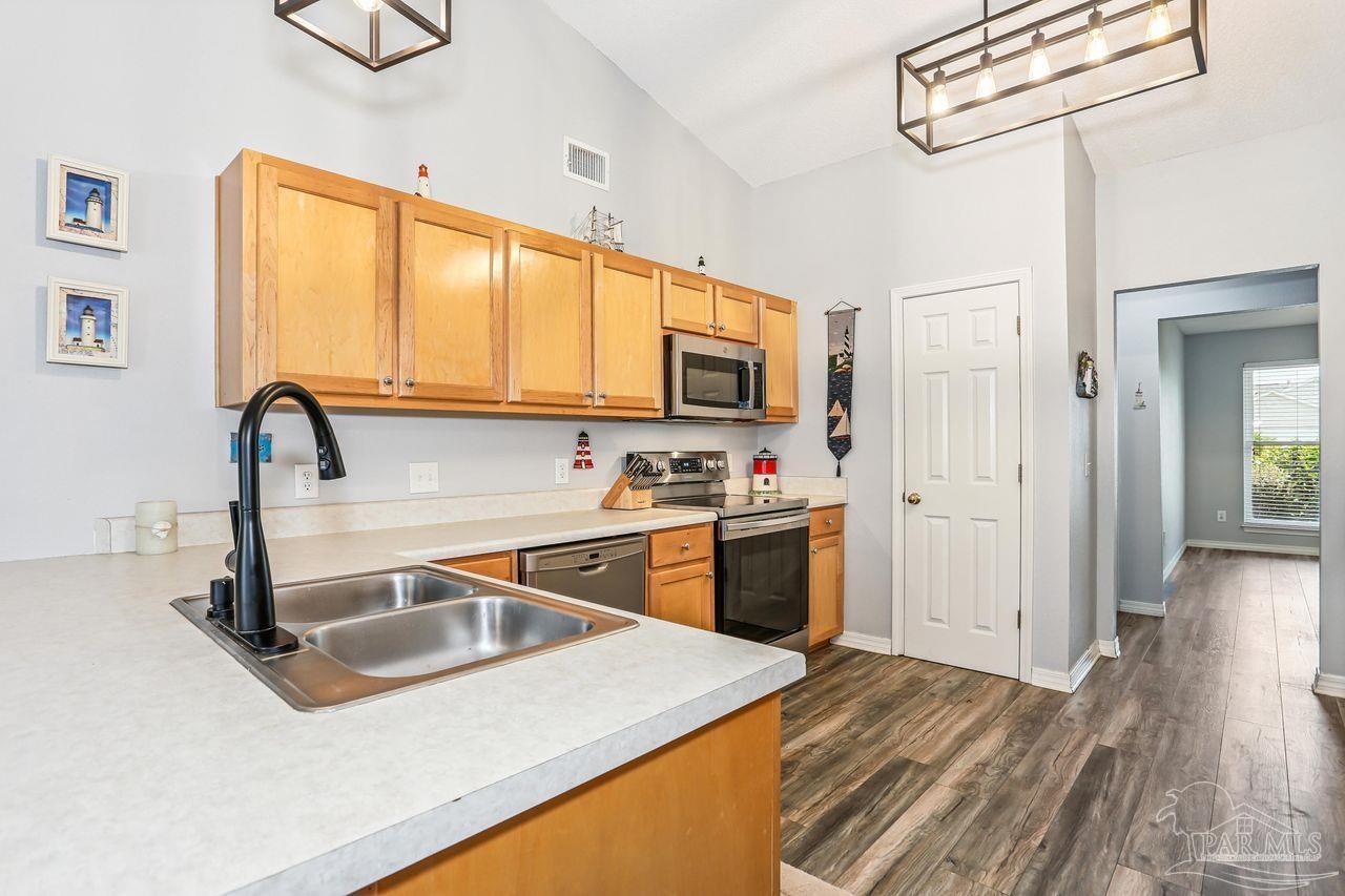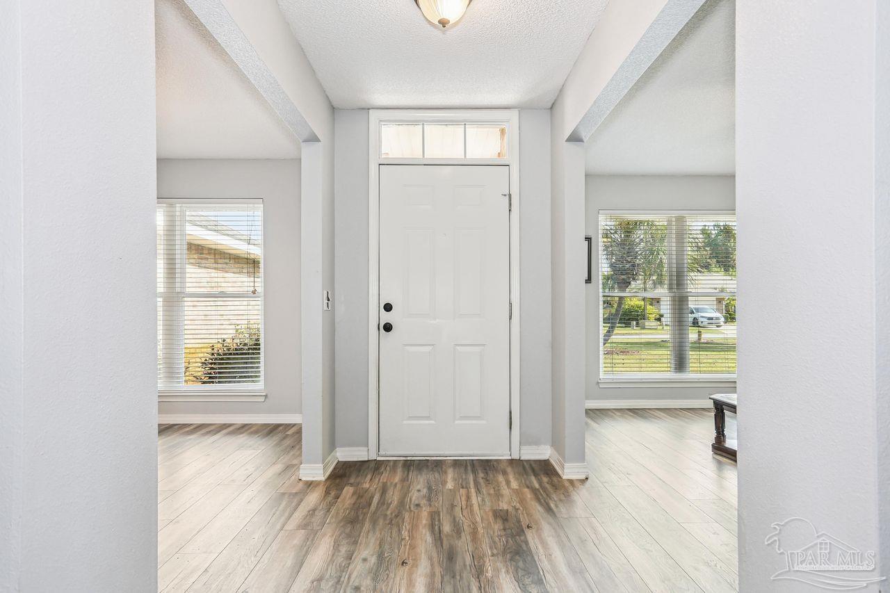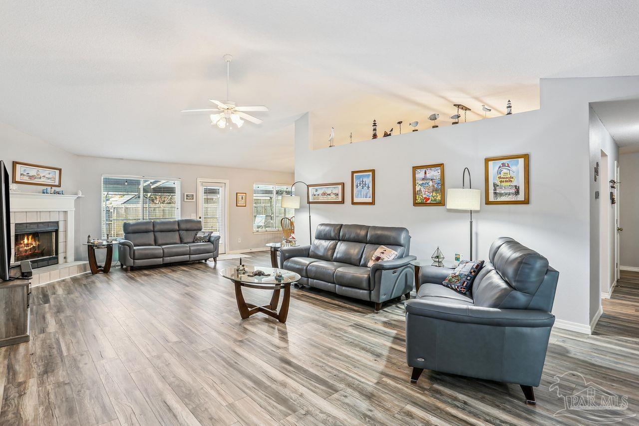 Welcome to this beautifully maintained 4-bedroom, 2-bathroom home tucked away on a peaceful cul-de-sac, just minutes from NAS and the stunning beaches of Perdido. This spacious residence offers both comfort and convenience, along with a sparkling pool enclosed in a screened lanai—perfect for year-round enjoyment. Upon entering, you’re greeted by a formal living room and dining room that flank the front entry, creating an elegant and welcoming first impression. The home then opens to a large family room featuring soaring ceilings and a cozy fireplace, offering the ideal space for gathering and relaxing. The kitchen provides abundant cabinet storage, a pantry, and new stainless-steel stove and dishwasher, along with a bright eat-in area overlooking the backyard. The home’s split bedroom layout offers excellent privacy: three nicely sized guest bedrooms with generous closets are situated on one side, while the primary suite is privately set apart. The primary bedroom features two walk-in closets, and an en-suite bath with a separate tub and shower and a private water closet. Step outside to the expansive screened lanai, ideal for entertaining, grilling, or simply enjoying the Florida lifestyle by the pool. This home has been exceptionally cared for with major recent upgrades, including new windows, roof, A/C, water heater, flooring and pool liner, offering peace of mind for years to come.