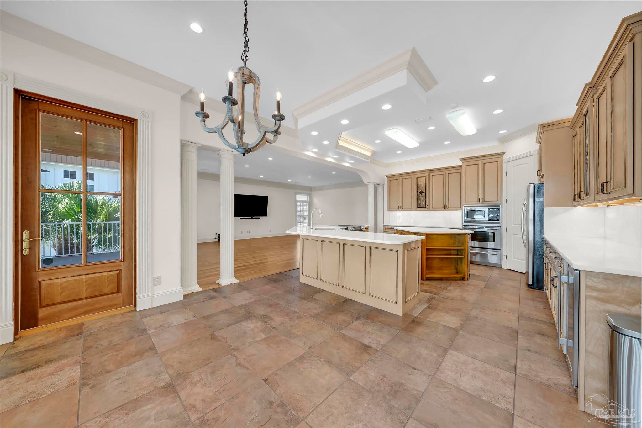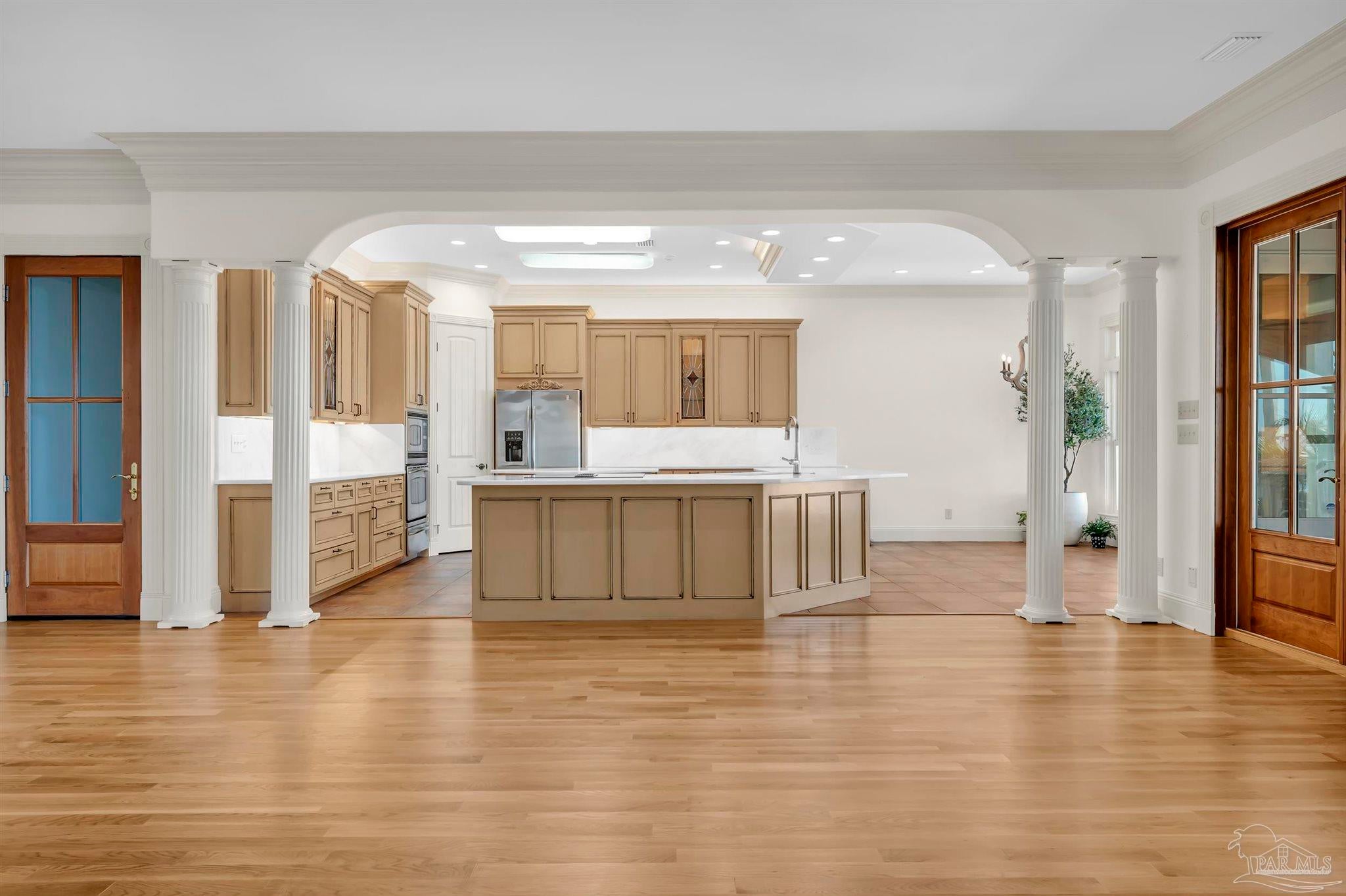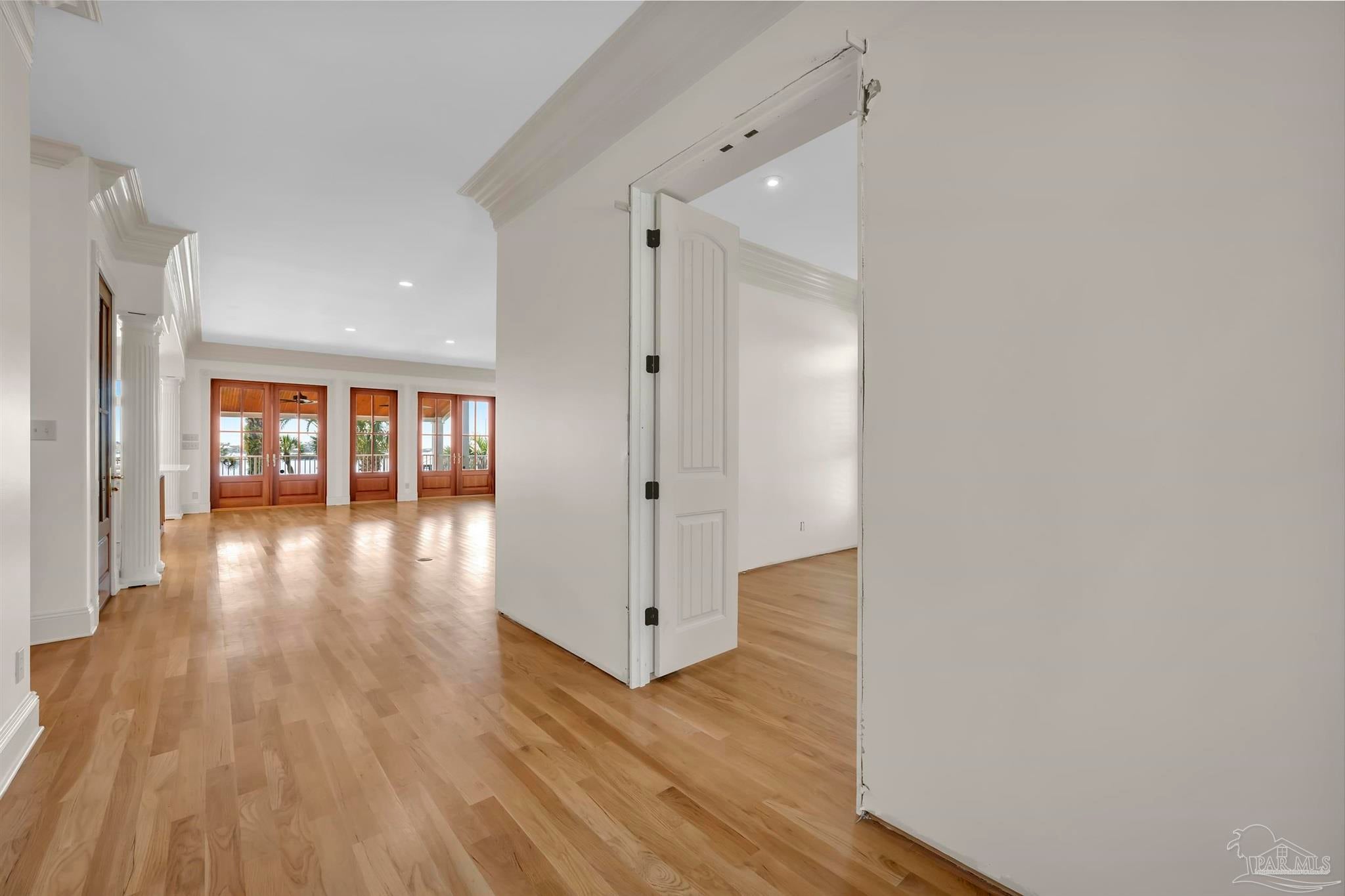Very rare opportunity on deep, open water with easy access to Perdido Pass and the Gulf of Mexico! Luxury abounds in this one-of-a-kind coastal retreat where no detail has been overlooked. This expansive 4-bedroom, 4-full and 2-half-bath home (potential for 5th bedroom) is set on a beautifully landscaped lot with approx. 90 ft of waterfront on Bayou St. John and features a new deep-water boat dock with slip. Enjoy real wood floors, custom crown molding, and a third-floor observation room offering 360° views of Terry Cove, Johnson Cove, and the Gulf. Impact windows and doors throughout. Spacious bedrooms include a private en-suite and balcony with stunning water views. The elegant wood-paneled elevator accommodates multiple passengers and is handicap accessible. A bonus room with vaulted wood ceiling and arched window enhances the coastal character. The chef’s kitchen boasts imported Brazilian white marble counters, under-counter wine cooler, abundant prep space, and breathtaking water views—ideal for gatherings or entertaining. The 3300 sq ft., 6-car heated and cooled garage offers epoxy floors, half bath, extensive storage, space for rod room, boats, and in-home gym. Step outside to enjoy waterfront activities, outdoor shower, and reinforced bulkhead. The first-floor primary suite features a Bain Swedish spa tub, multi-head shower with exceptional water pressures. Additional highlights include a formal dining room (or study), custom “Birds of Paradise” wrought iron staircase inspired by the Pontalba Building in New Orleans, central vac system, and dedicated laundry and cleaning closet with utility sink. A true coastal masterpiece built for comfort, elegance, and the ultimate waterfront lifestyle.