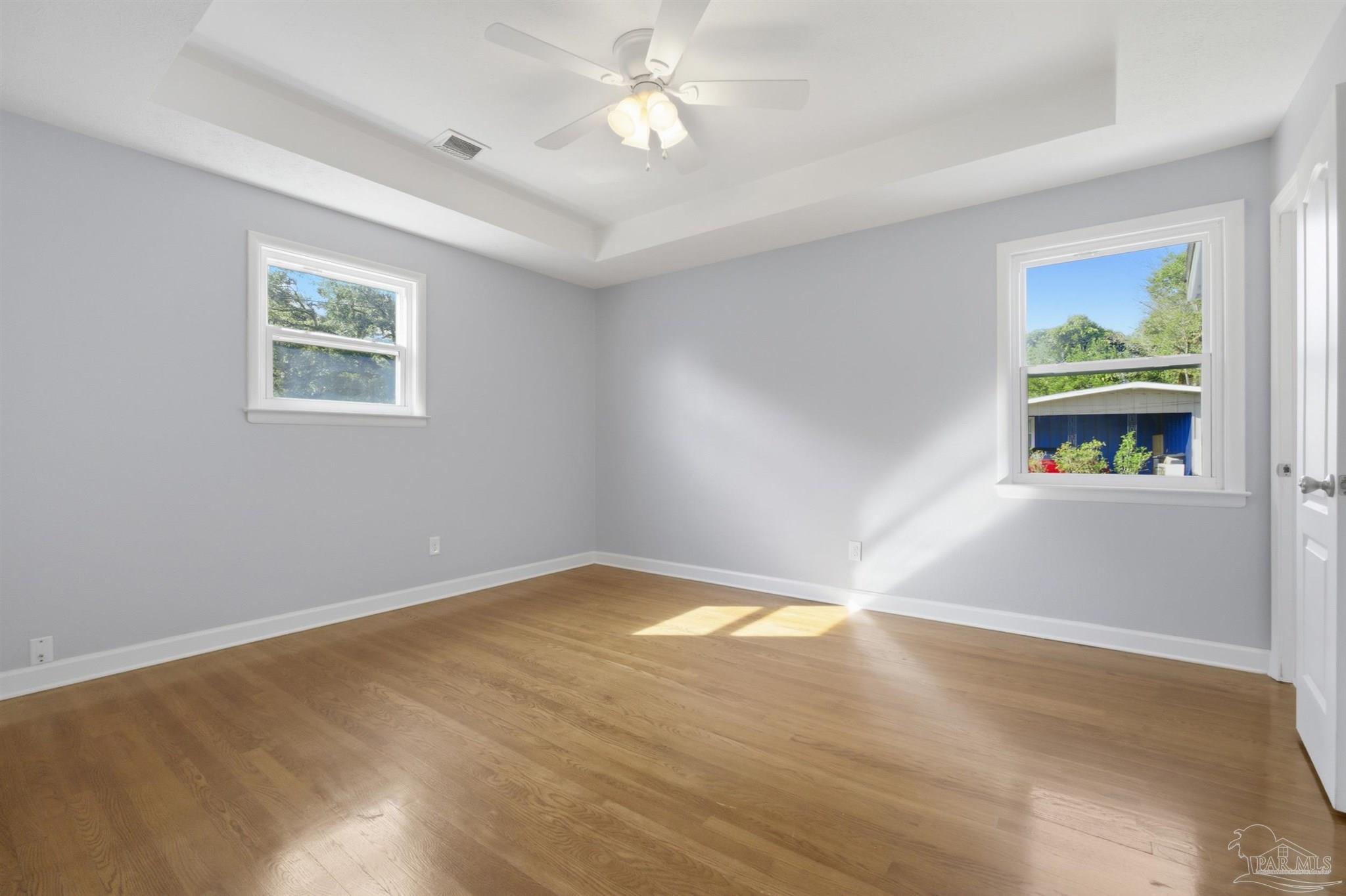 0.8 mi to Bryan Park • 1.0 mi to Hitzman-Optimist Park • 1.2 mi to Publix • 2.5 mi to Cordova Mall • 0.7 mi to I-110 access Fully refreshed 4-bedroom, 3-bath home offering approx. 2,220 sq ft of living space on a generous 100' × 108' corner lot. The open main-level layout features hardwood flooring, updated kitchen with white cabinetry, island, and stainless appliances, plus adjoining dining and living areas. Primary bedroom offers a tray ceiling detail. Finished lower level provides versatile flex space, ideal for family room, home office or media area. Exterior includes painted brick, driveway-parking plus carport, and fenced yard – no HOA. Newer appliances and fresh paint throughout. Situated minutes from Bryan Park and Hitzman-Optimist Park, quick access to Publix, Cordova Mall, and I-110 for effortless commuting. Don’t miss this well-maintained split-level with modern updates and exceptional location.