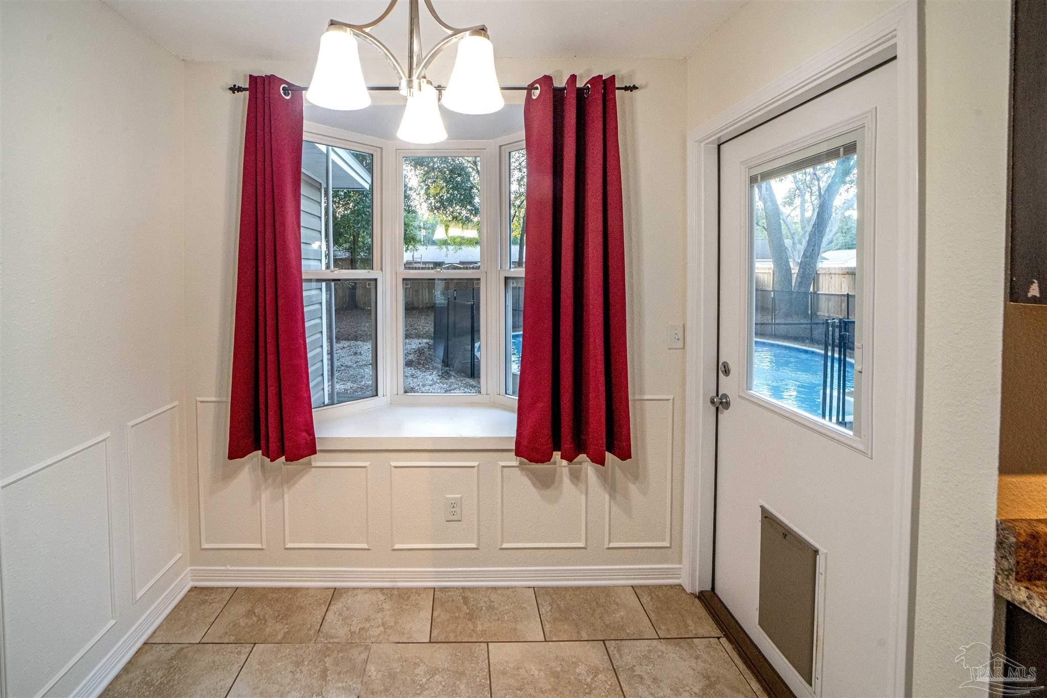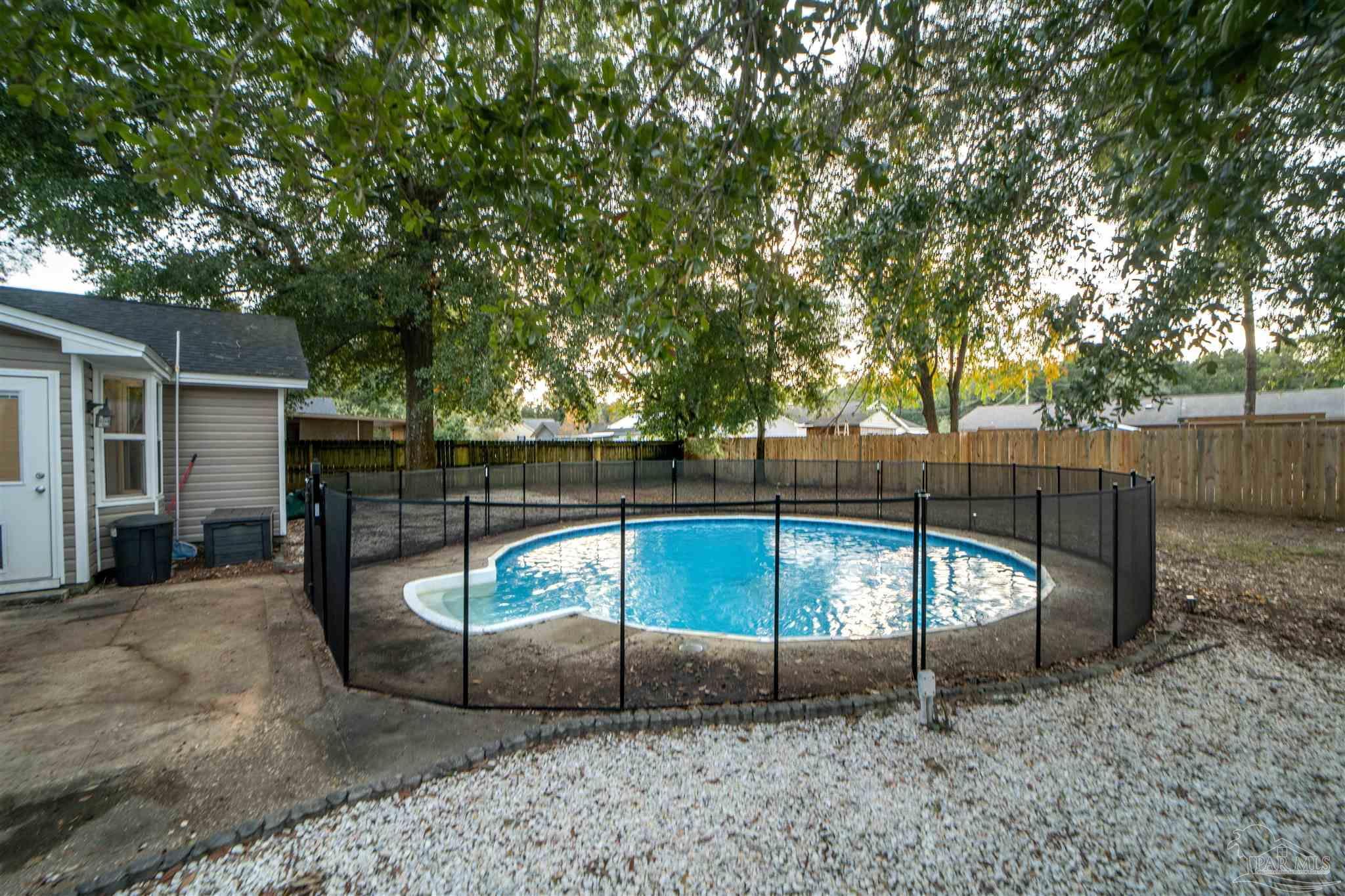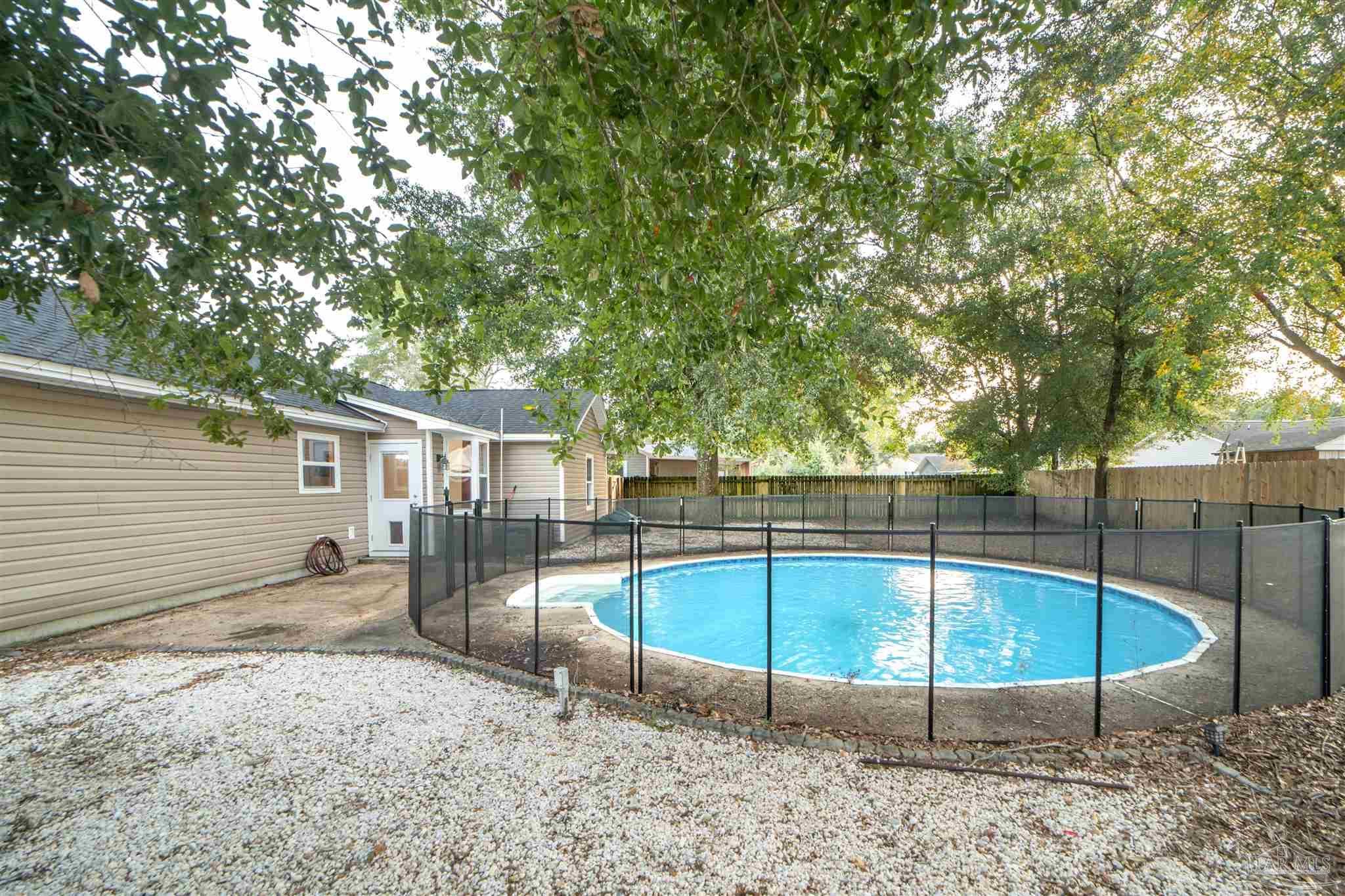 Looking for an easy to maintain home in an excellent location with a POOL, you're going to want to see this one! This three bedroom, two bath home with split floor plan is located convenient to Whiting Field and shopping. And the plus is it can be a four bedroom if desired. The owner's suite has a walk in closet and a private bath with double vanities. The two additional bedrooms are on the opposite side of the home with a shared guest bathroom. The large bonus room would be perfect for a game room, separate living area or could easily be a large fourth bedroom with a closet. Enjoy relaxing in the bright family room with vaulted ceilings, open to your kitchen with an island and inviting breakfast area. The breakfast room has lovely bay windows to enjoy looking out to the backyard and sparkling pool. While this is not a pool for swimming laps, it is the perfect size to cool off after a hot summer day. Child safe pool fencing surrounds the pool and the liner and pool equipment replaced in the last few years. Pool also comes with a cover to make maintenance a breeze during the winter months. It's not often you can find a home at this price with a pool. Schedule your appointment today to see this little gem!