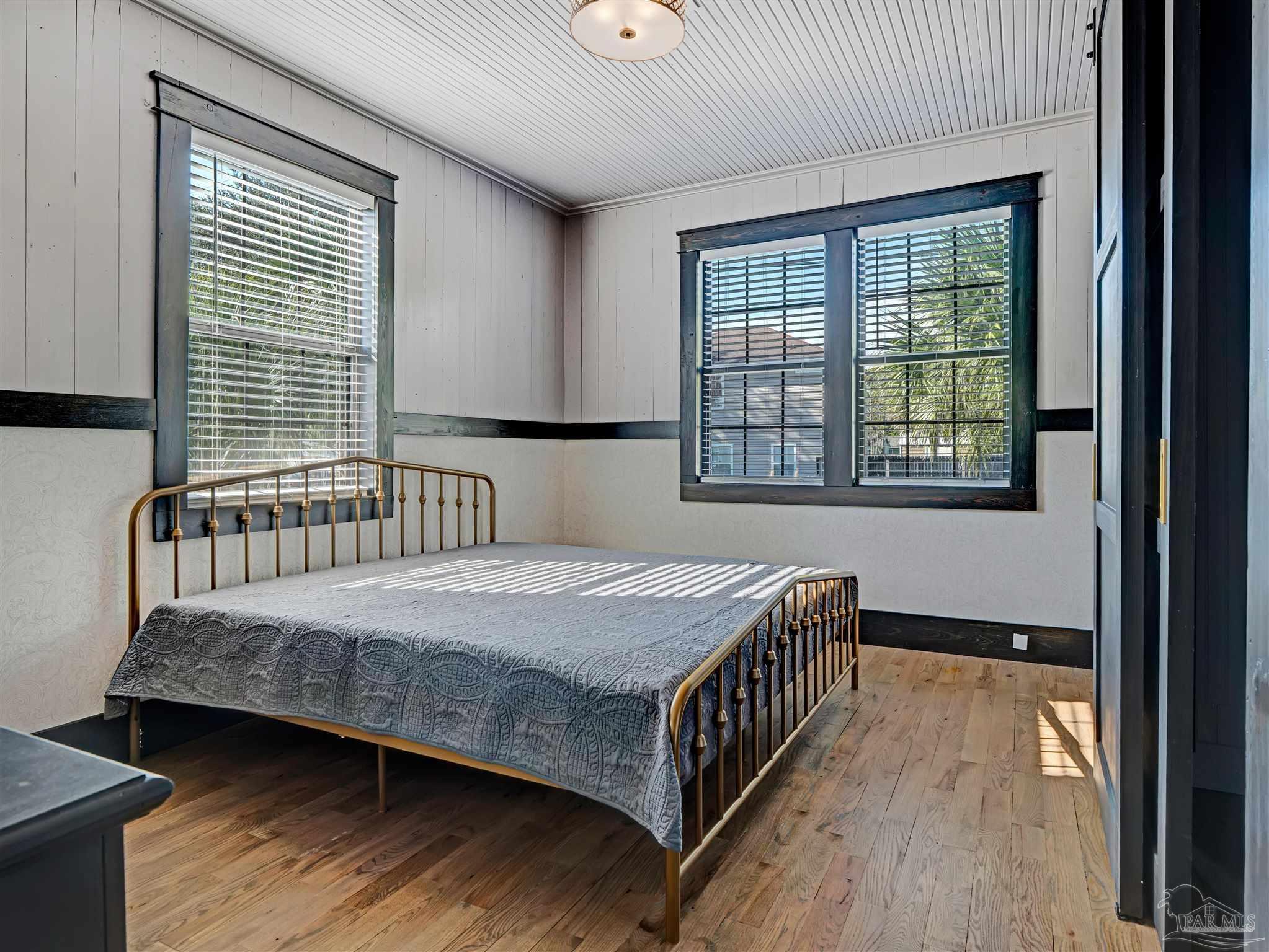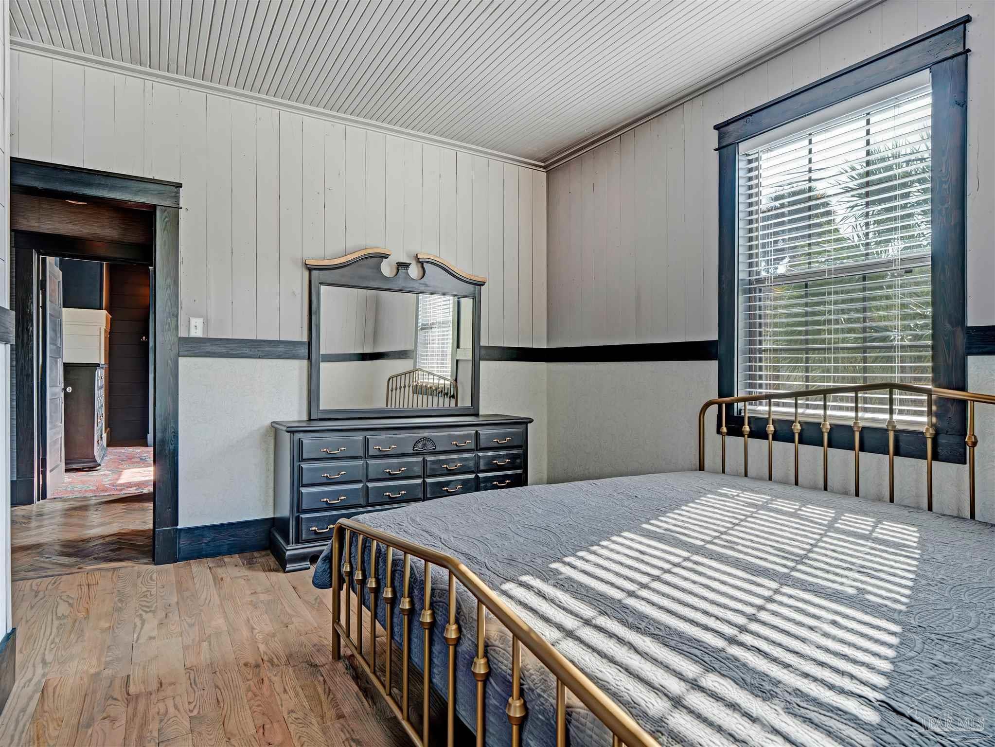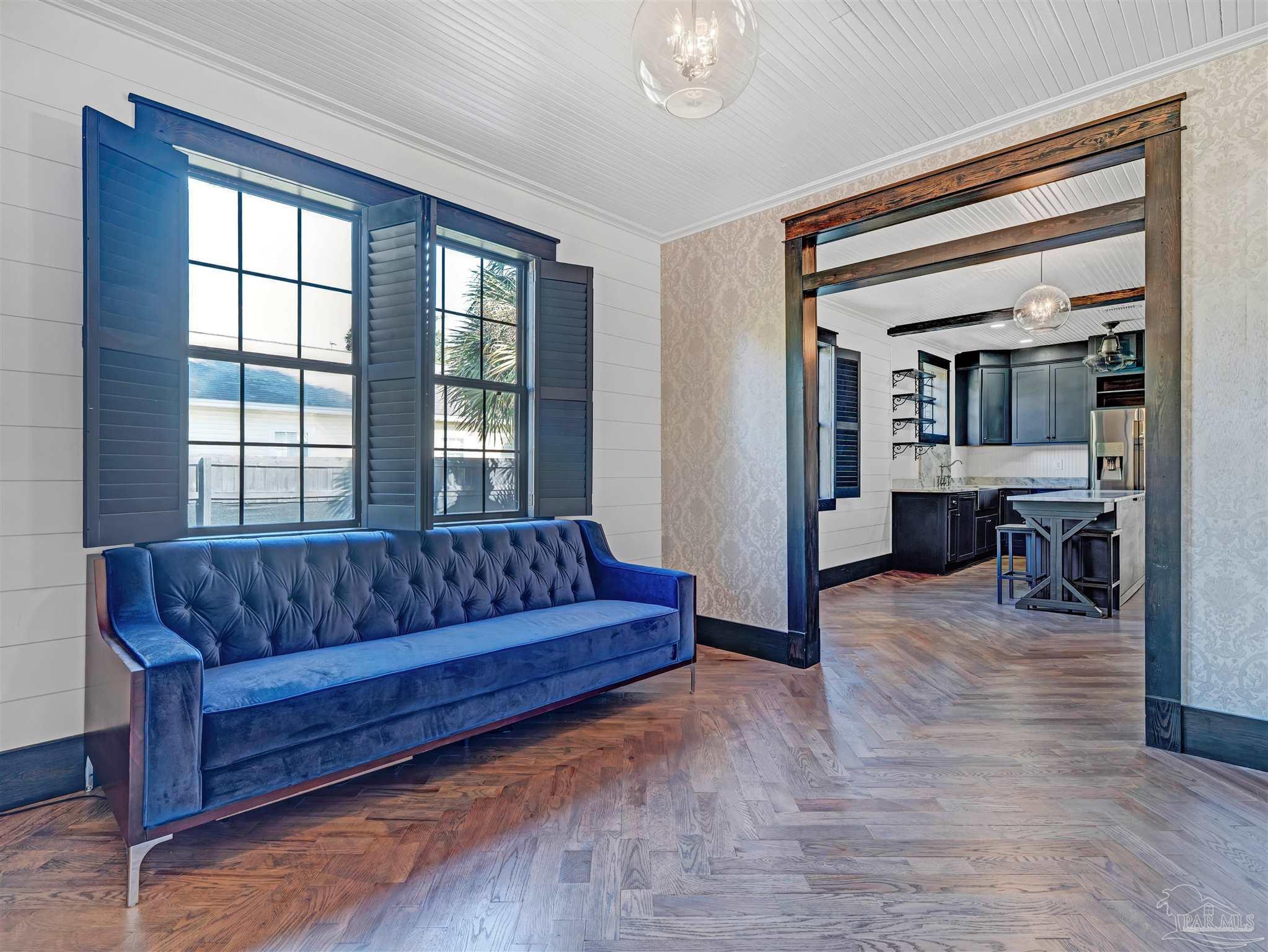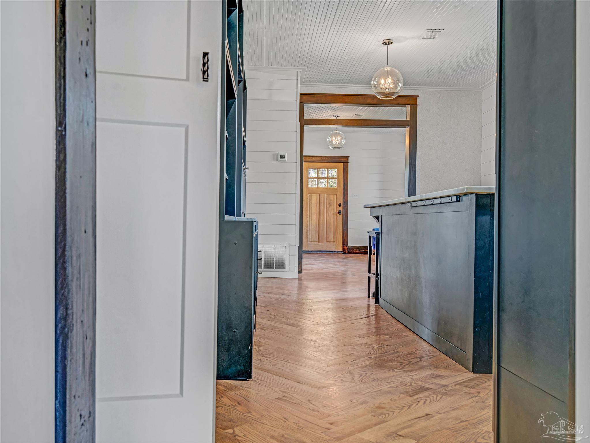 OPEN HOUSE Dec 7th, 2-5 PM. Come on down before the East Hill Holdiay Market @ Cordova Square Park Nestled in one of Pensacola’s most walkable and desirable East Hill–area neighborhoods, this beautifully restored 1930s home blends historic character with modern comfort. Original woodwork, doors, ceilings, and baseboards have been carefully stripped, stained, and refinished, preserving the craftsmanship that defines homes of this era. A reimagined coal-era fireplace anchors the living space, complemented by updated finishes throughout. The flexible layout includes three spacious bedrooms, each large enough for a king-size bed. One bedroom features a private exterior entrance and half bath, ideal for a guest suite, home office, or multigenerational living. The kitchen offers generous counter space with natural quartzite stone, deep storage, and efficient induction cooking, with gas service available if preferred. Major improvements provide peace of mind, including a new metal roof, newer HVAC, newer water heater, updated electrical, and well-maintained windows. An enclosed laundry area with conveying washer/dryer adds convenience. The fenced backyard functions as a private retreat with covered outdoor space and two storage sheds. Located within walking distance to Hollis Park and minutes to downtown and the beach, this move-in-ready home offers the full East Hill lifestyle and timeless 1930s charm.