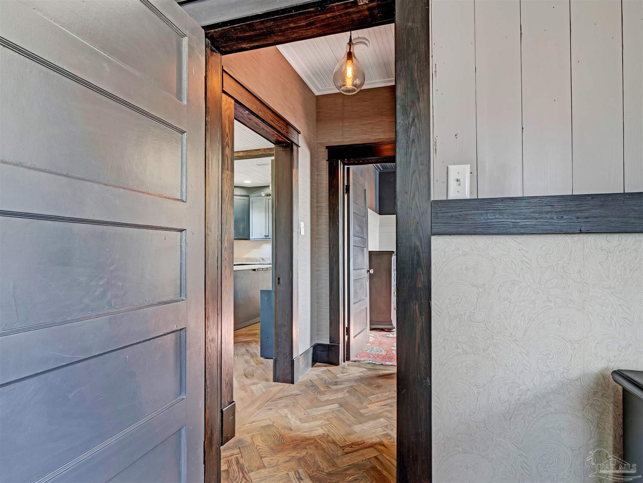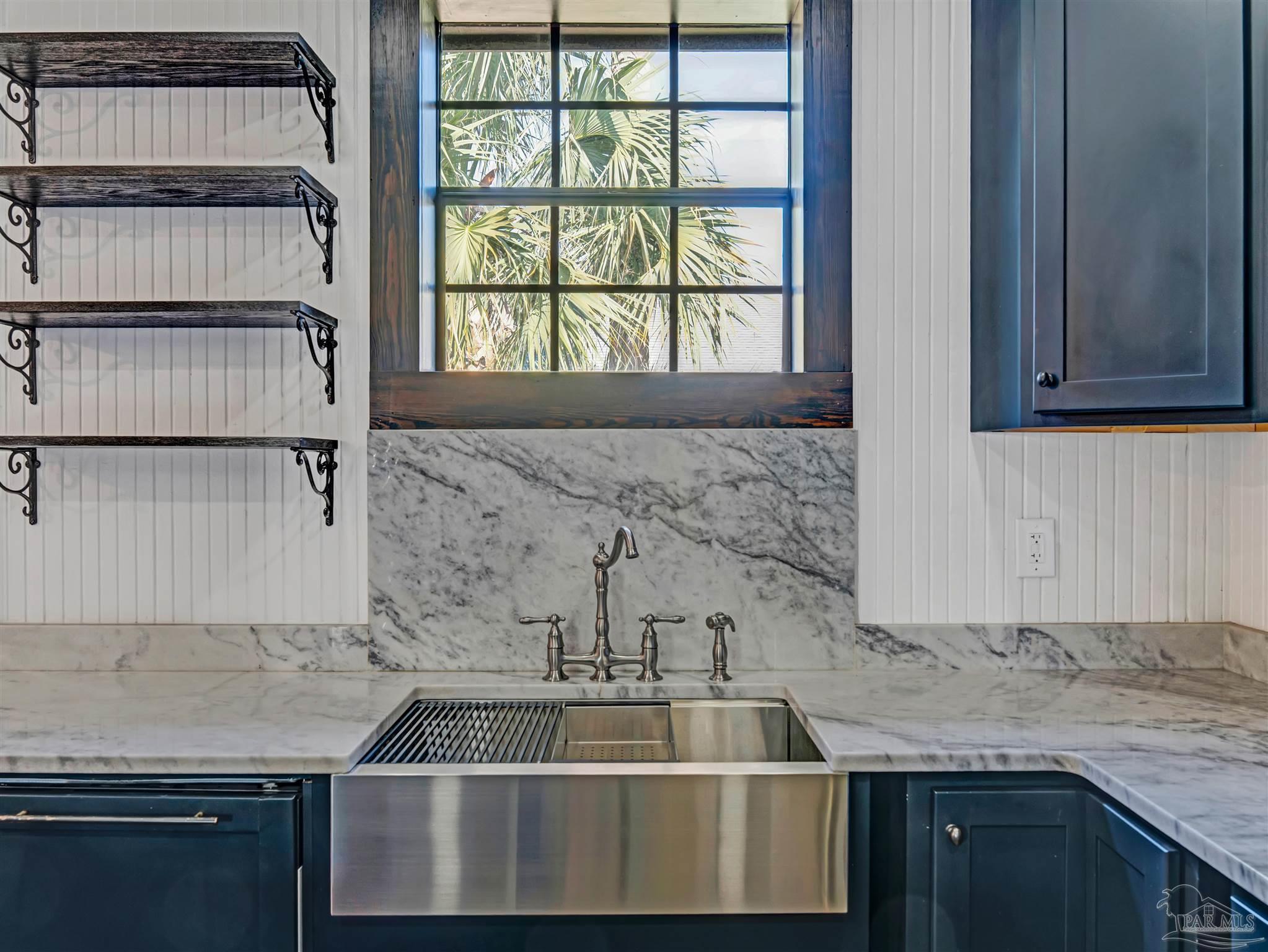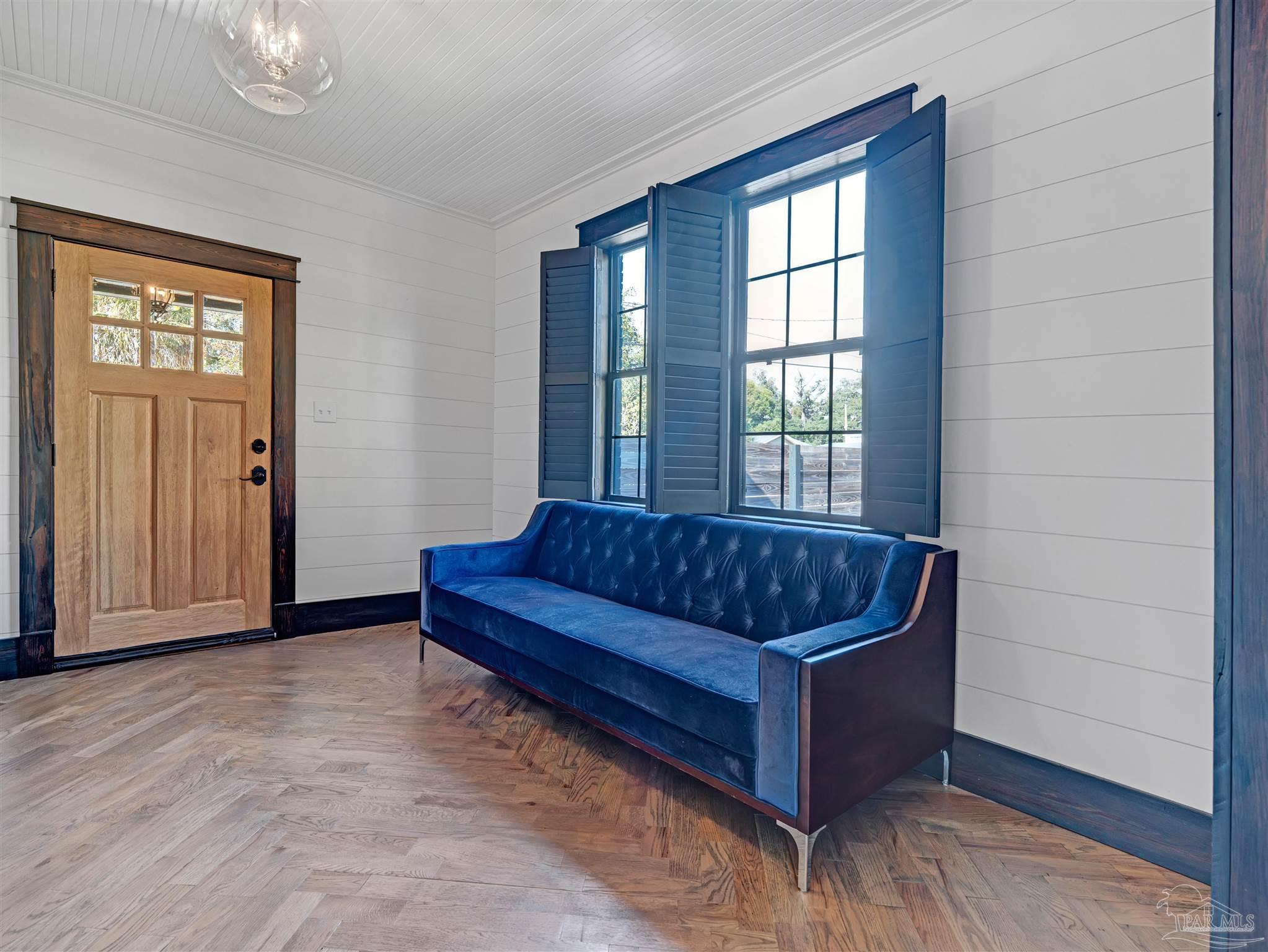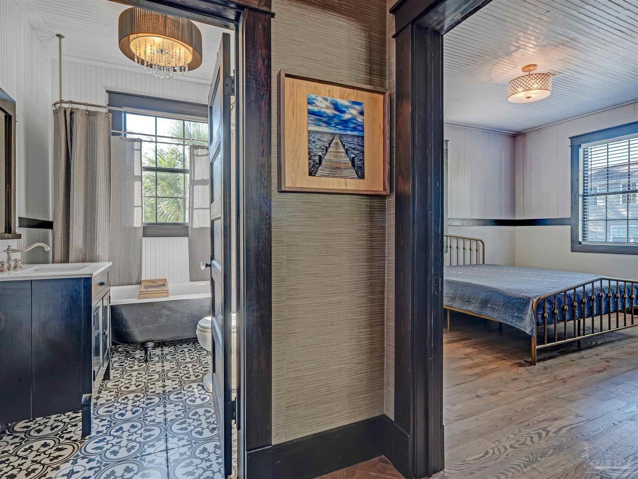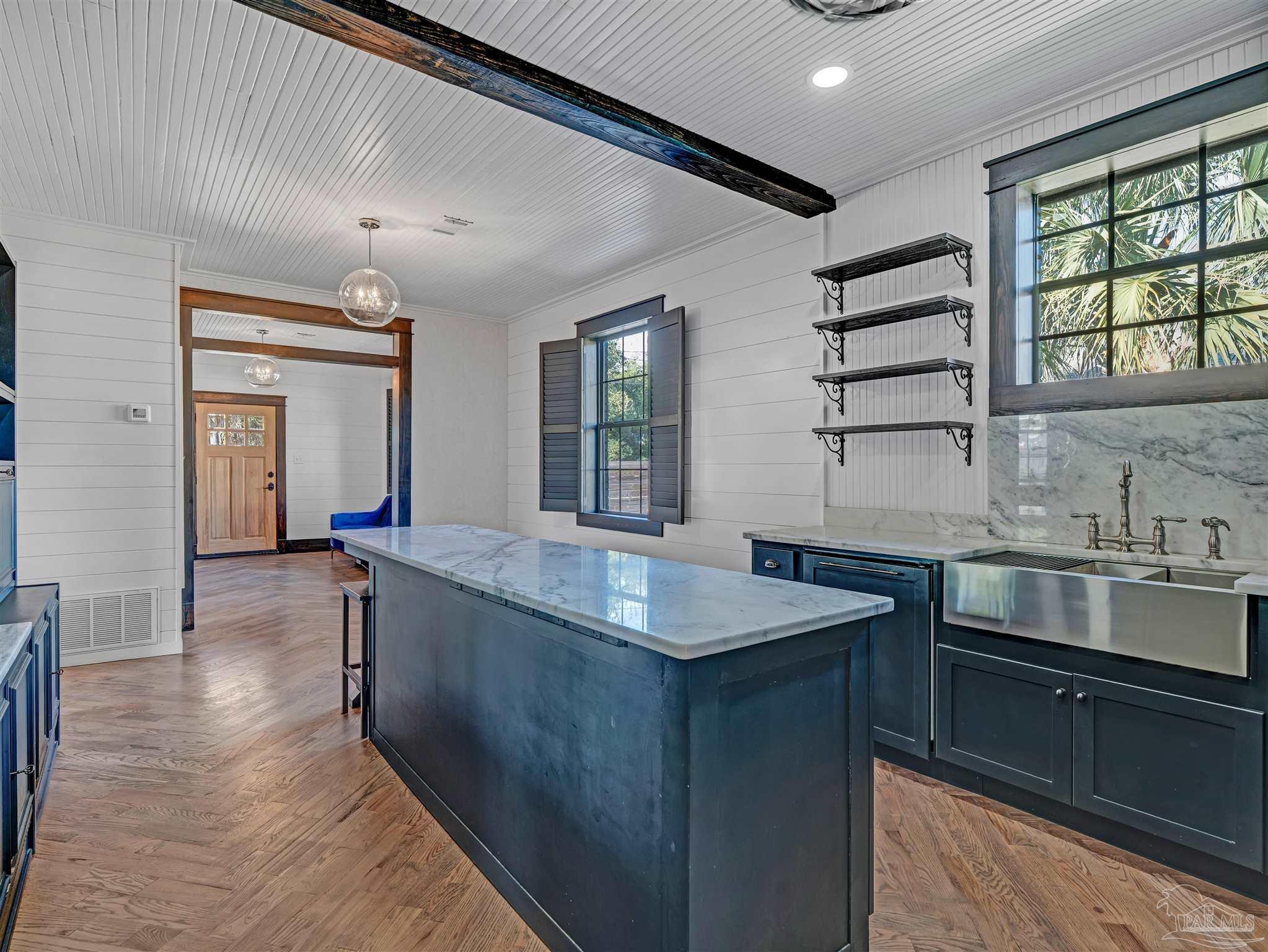 OPEN HOUSE Dec 7th, 2-5 PM. Come on down before the East Hill Holdiay Market @ Cordova Square Park Nestled in one of Pensacola’s most walkable and desirable East Hill–area neighborhoods, this beautifully restored 1930s home blends historic character with modern comfort. Original woodwork, doors, ceilings, and baseboards have been carefully stripped, stained, and refinished, preserving the craftsmanship that defines homes of this era. A reimagined coal-era fireplace anchors the living space, complemented by updated finishes throughout. The flexible layout includes three spacious bedrooms, each large enough for a king-size bed. One bedroom features a private exterior entrance and half bath, ideal for a guest suite, home office, or multigenerational living. The kitchen offers generous counter space with natural quartzite stone, deep storage, and efficient induction cooking, with gas service available if preferred. Major improvements provide peace of mind, including a new metal roof, newer HVAC, newer water heater, updated electrical, and well-maintained windows. An enclosed laundry area with conveying washer/dryer adds convenience. The fenced backyard functions as a private retreat with covered outdoor space and two storage sheds. Located within walking distance to Hollis Park and minutes to downtown and the beach, this move-in-ready home offers the full East Hill lifestyle and timeless 1930s charm.