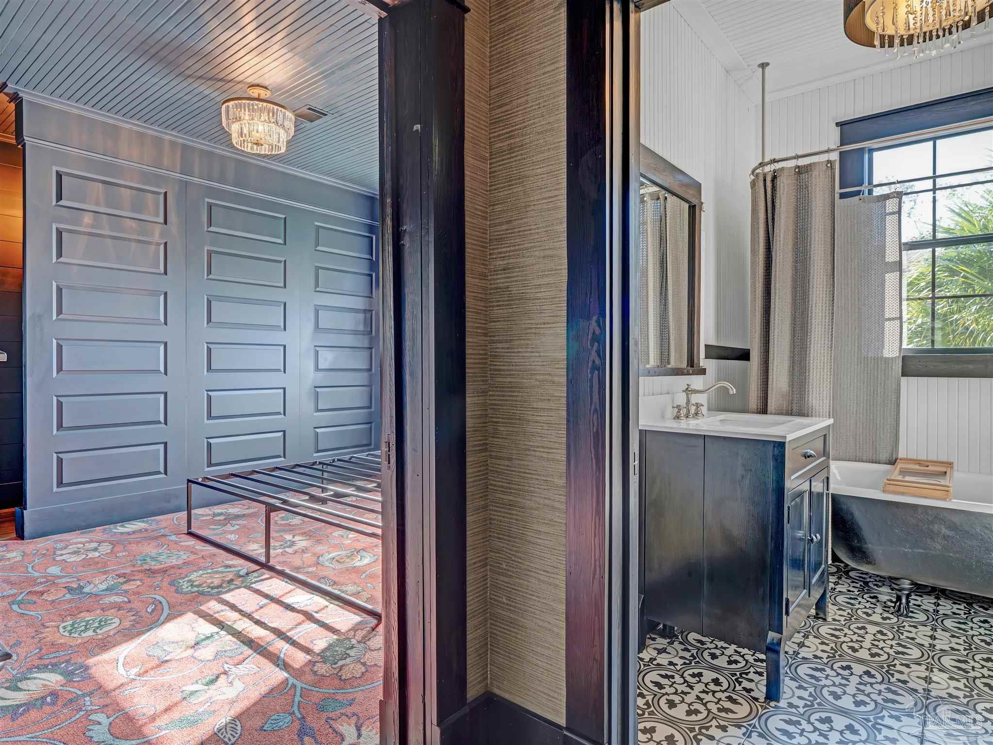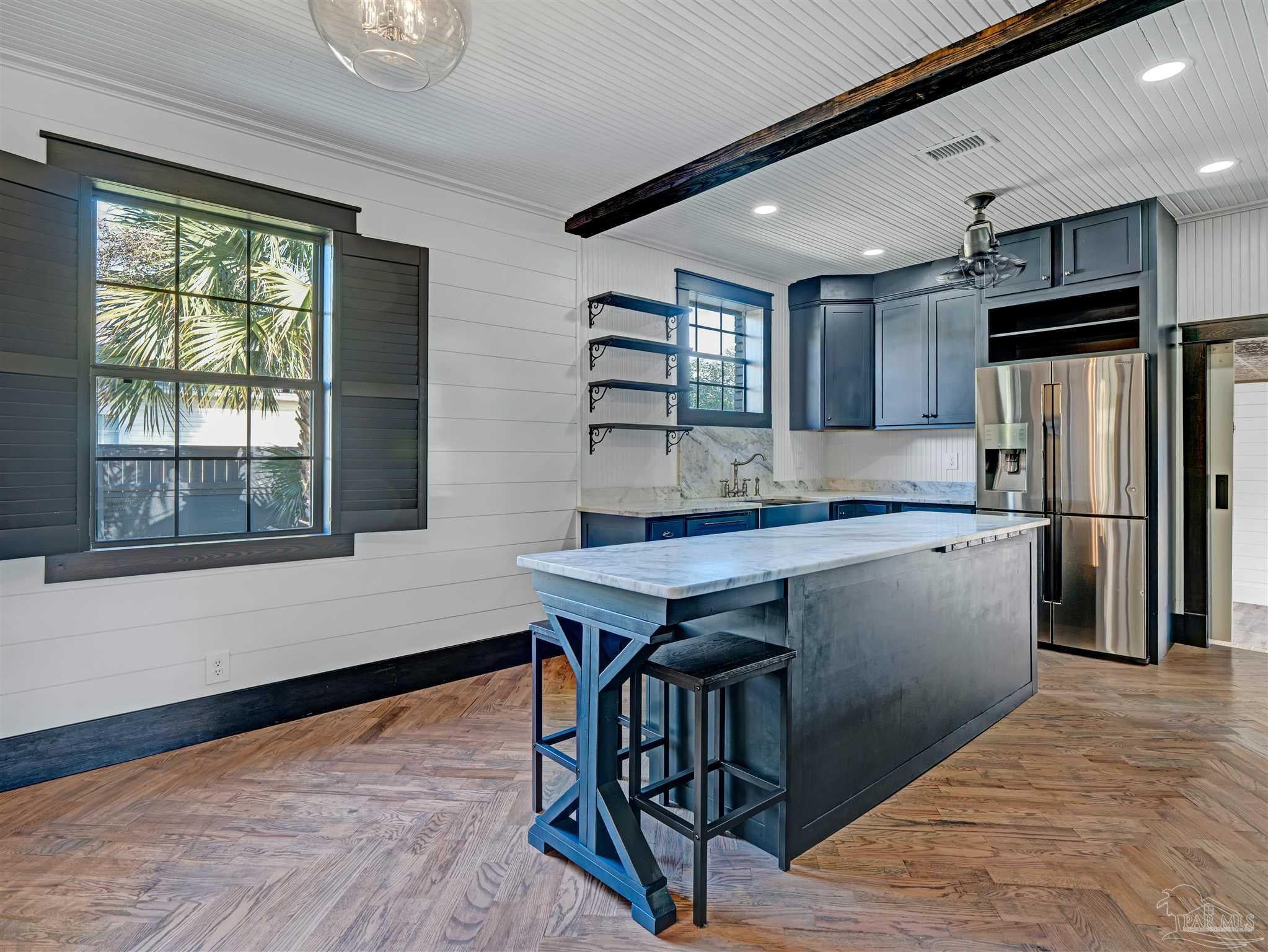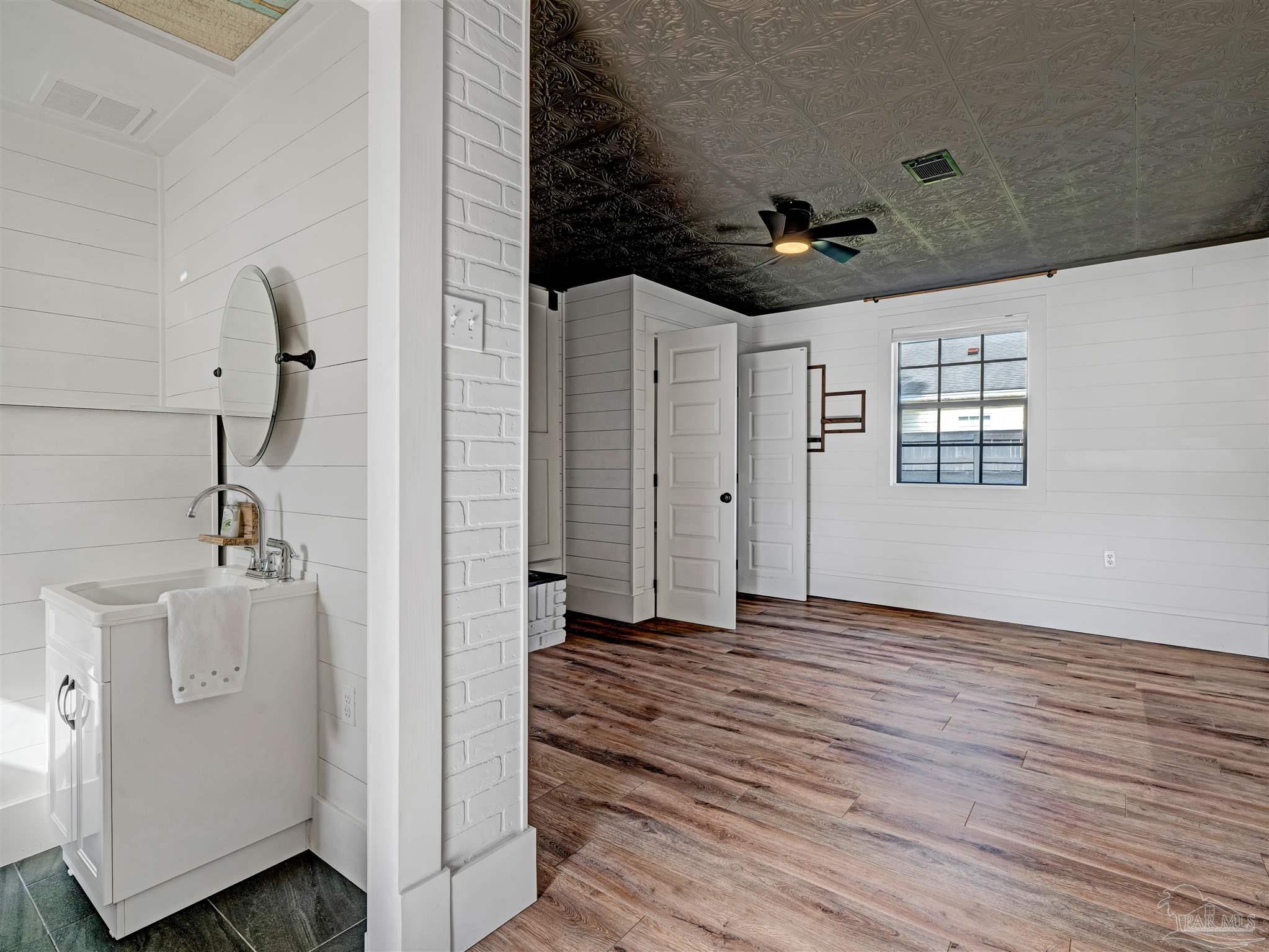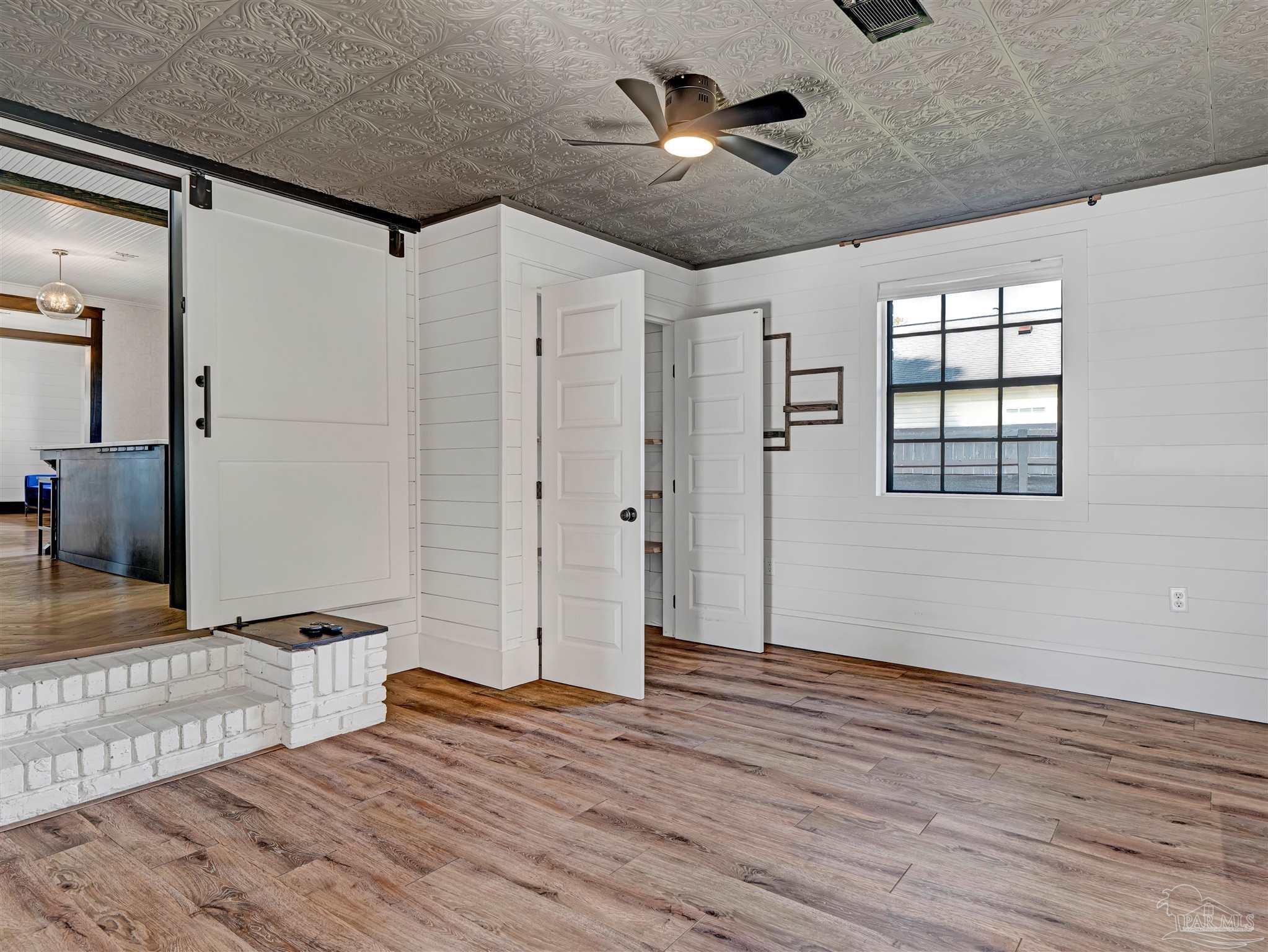 OPEN HOUSE Dec 7th, 2-5 PM. Come on down before the East Hill Holdiay Market @ Cordova Square Park Nestled in one of Pensacola’s most walkable and desirable East Hill–area neighborhoods, this beautifully restored 1930s home blends historic character with modern comfort. Original woodwork, doors, ceilings, and baseboards have been carefully stripped, stained, and refinished, preserving the craftsmanship that defines homes of this era. A reimagined coal-era fireplace anchors the living space, complemented by updated finishes throughout. The flexible layout includes three spacious bedrooms, each large enough for a king-size bed. One bedroom features a private exterior entrance and half bath, ideal for a guest suite, home office, or multigenerational living. The kitchen offers generous counter space with natural quartzite stone, deep storage, and efficient induction cooking, with gas service available if preferred. Major improvements provide peace of mind, including a new metal roof, newer HVAC, newer water heater, updated electrical, and well-maintained windows. An enclosed laundry area with conveying washer/dryer adds convenience. The fenced backyard functions as a private retreat with covered outdoor space and two storage sheds. Located within walking distance to Hollis Park and minutes to downtown and the beach, this move-in-ready home offers the full East Hill lifestyle and timeless 1930s charm.