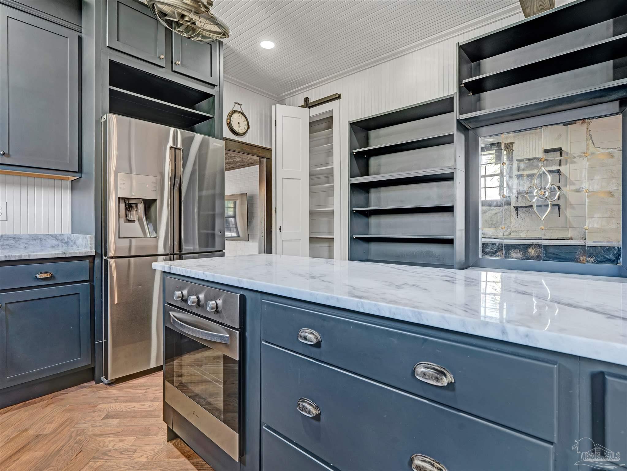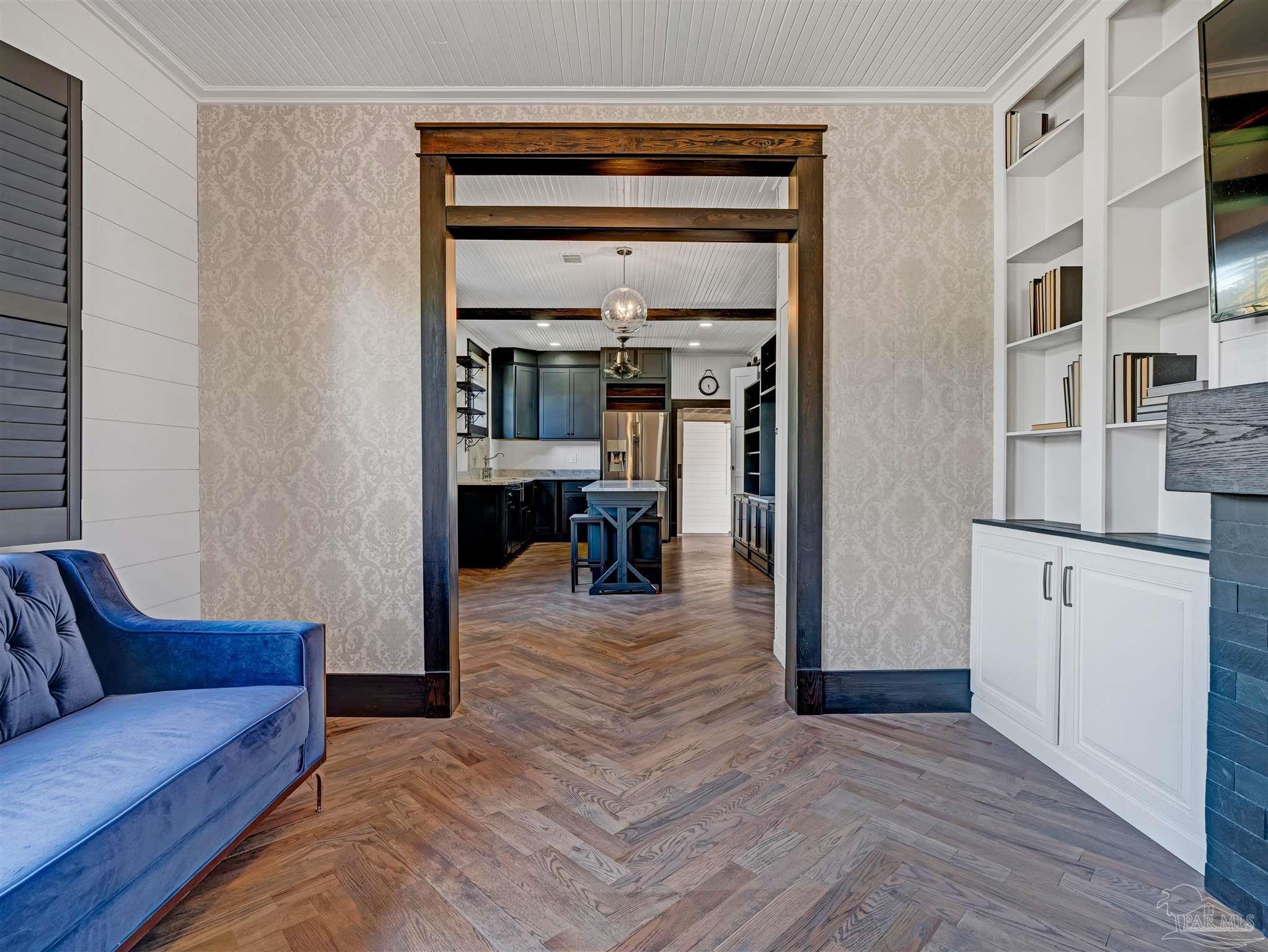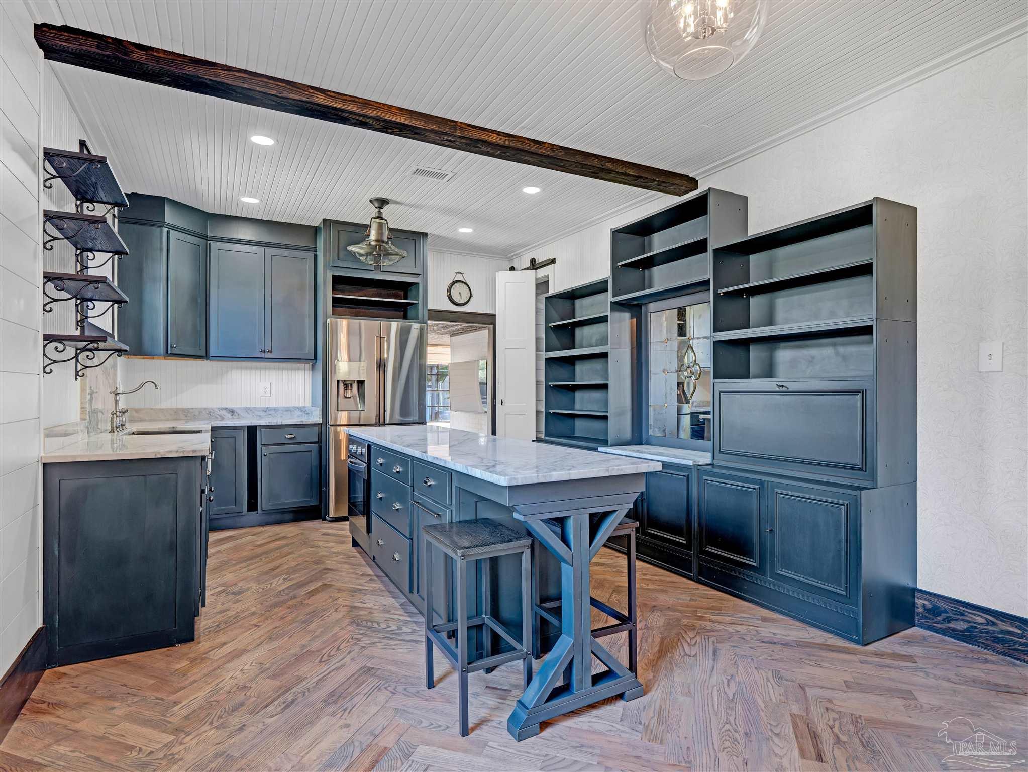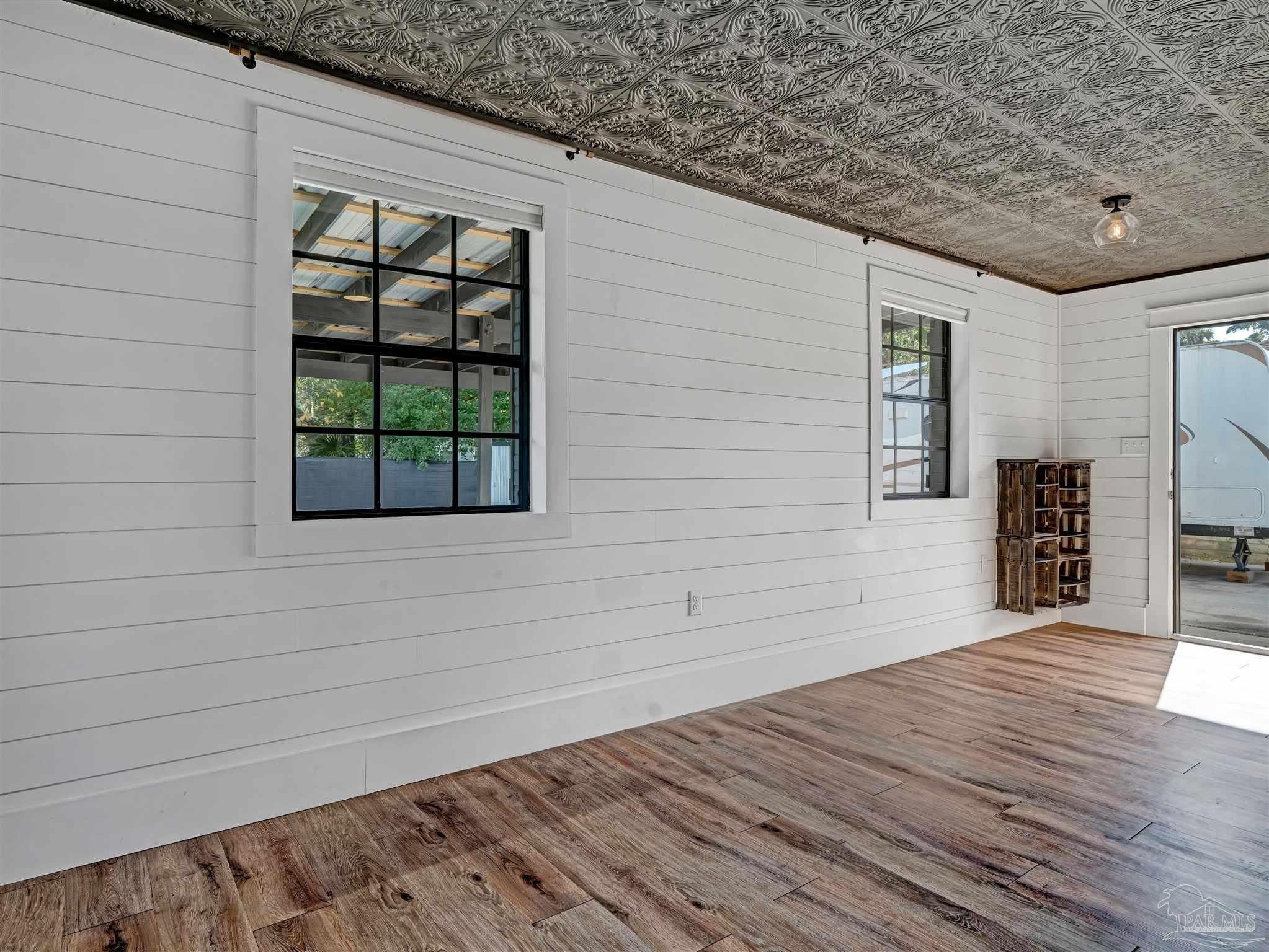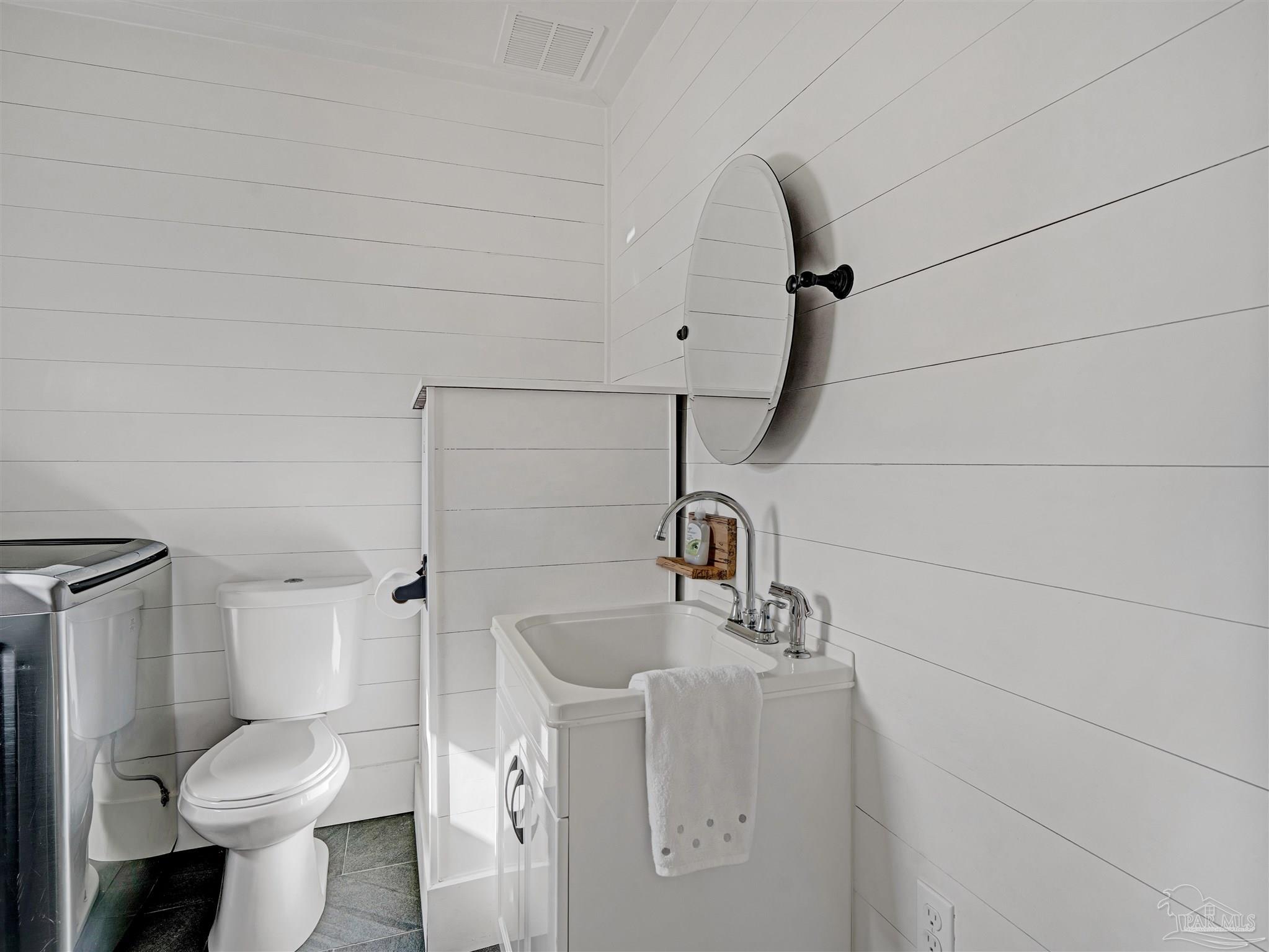 OPEN HOUSE Dec 7th, 2-5 PM. Come on down before the East Hill Holdiay Market @ Cordova Square Park Nestled in one of Pensacola’s most walkable and desirable East Hill–area neighborhoods, this beautifully restored 1930s home blends historic character with modern comfort. Original woodwork, doors, ceilings, and baseboards have been carefully stripped, stained, and refinished, preserving the craftsmanship that defines homes of this era. A reimagined coal-era fireplace anchors the living space, complemented by updated finishes throughout. The flexible layout includes three spacious bedrooms, each large enough for a king-size bed. One bedroom features a private exterior entrance and half bath, ideal for a guest suite, home office, or multigenerational living. The kitchen offers generous counter space with natural quartzite stone, deep storage, and efficient induction cooking, with gas service available if preferred. Major improvements provide peace of mind, including a new metal roof, newer HVAC, newer water heater, updated electrical, and well-maintained windows. An enclosed laundry area with conveying washer/dryer adds convenience. The fenced backyard functions as a private retreat with covered outdoor space and two storage sheds. Located within walking distance to Hollis Park and minutes to downtown and the beach, this move-in-ready home offers the full East Hill lifestyle and timeless 1930s charm.