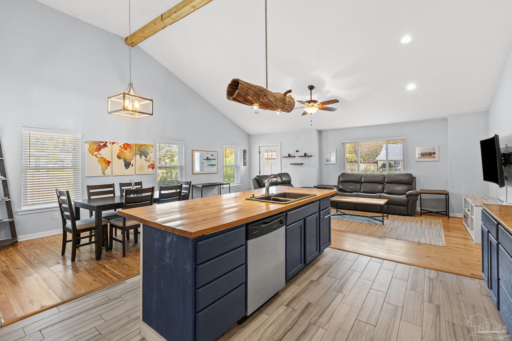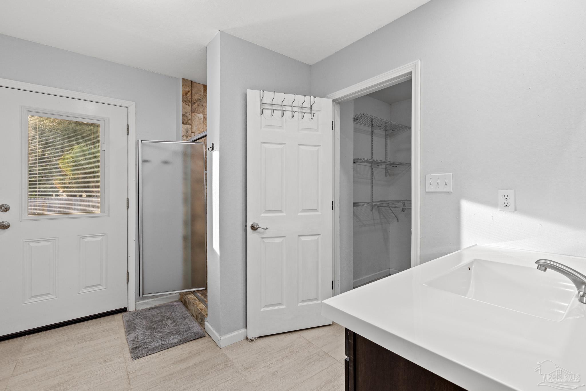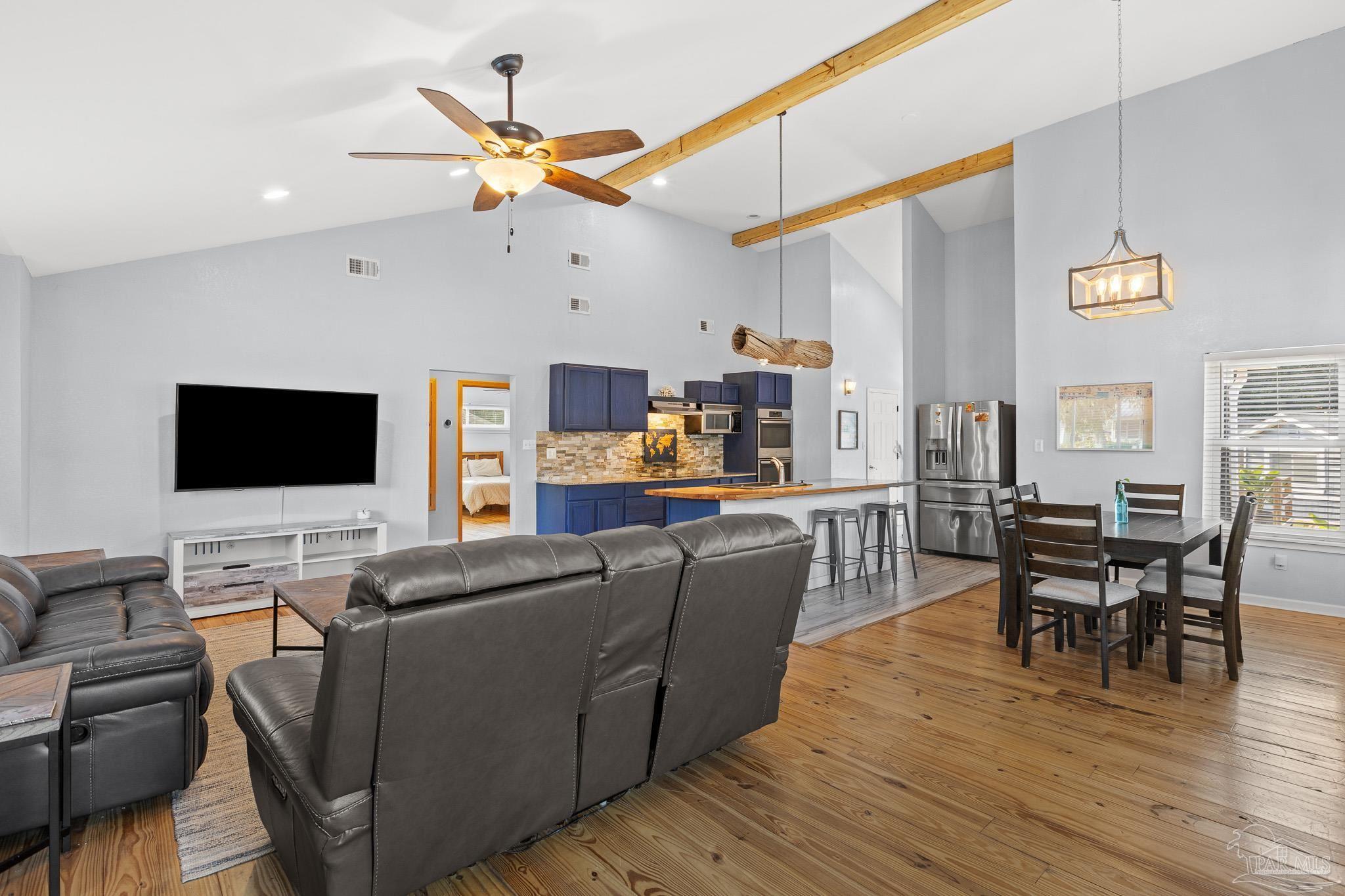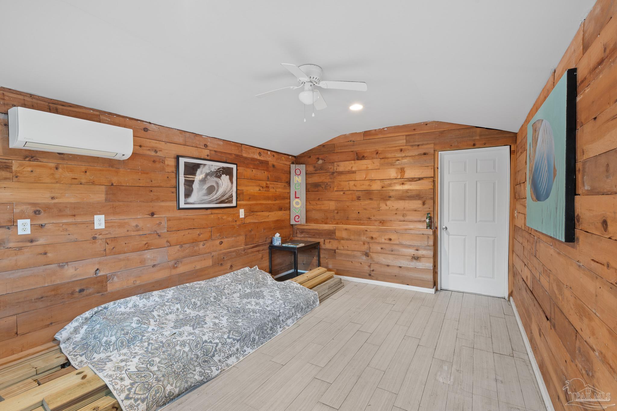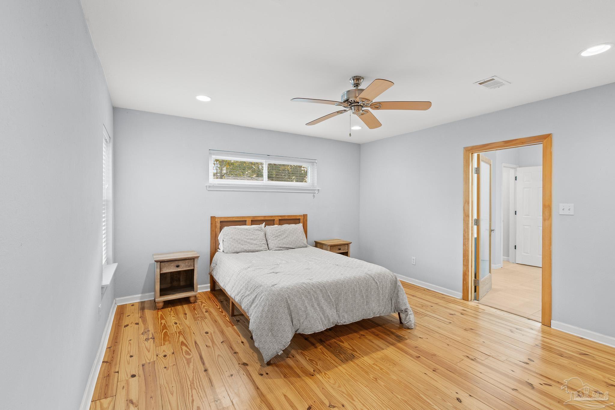 Gorgeous Navy Point home just one block from the beautiful waters of Bayou Grande, Pensacola Bay, and the Gulf! This 2 bedroom, 2 bath home was completely rebuilt in 2015 with new roof, plumbing, HVAC, and electrical. Since then, the owners have added new solar panels, hurricane-resistant windows, new exterior doors with a front storm door, and metal hurricane shutters. Inside, you’ll find an open floor plan with 20-ft ceilings and hardwood floors throughout. The kitchen features granite countertops, stainless steel appliances, and double ovens, along with a walk-in pantry and separate laundry room. spacious primary suite offers dual vanities, two walk-in closets, and an oversized custom-tiled walk-in shower. The attic was built with a potential third bedroom and bathroom in mind, complete with vaulted ceilings and plumbing. A detached building with a closet makes an ideal office or guest space. Enjoy exceptional privacy in the oversized fenced backyard with an end-to-end deck, fire pit, and partial water view. The long driveway and reinforced parking pad are ready for a future carport or garage. Living in Navy Point means access to a waterfront walking and biking trail, boat launch, playground, and multiple beach access points—all maintained by Escambia County. This highly sought-after neighborhood offers a true coastal lifestyle.