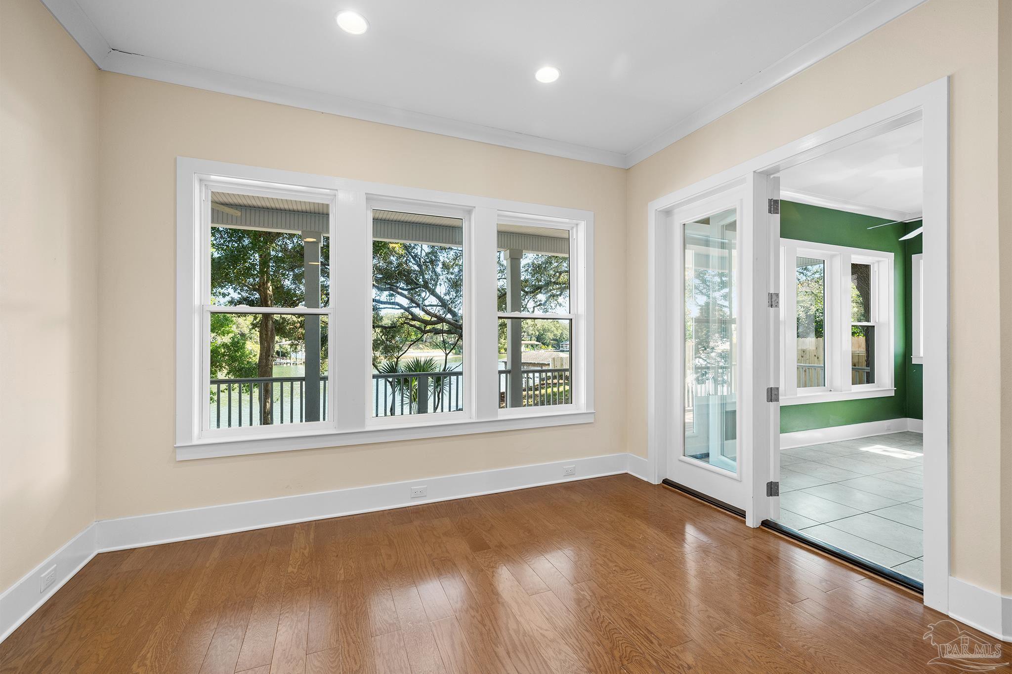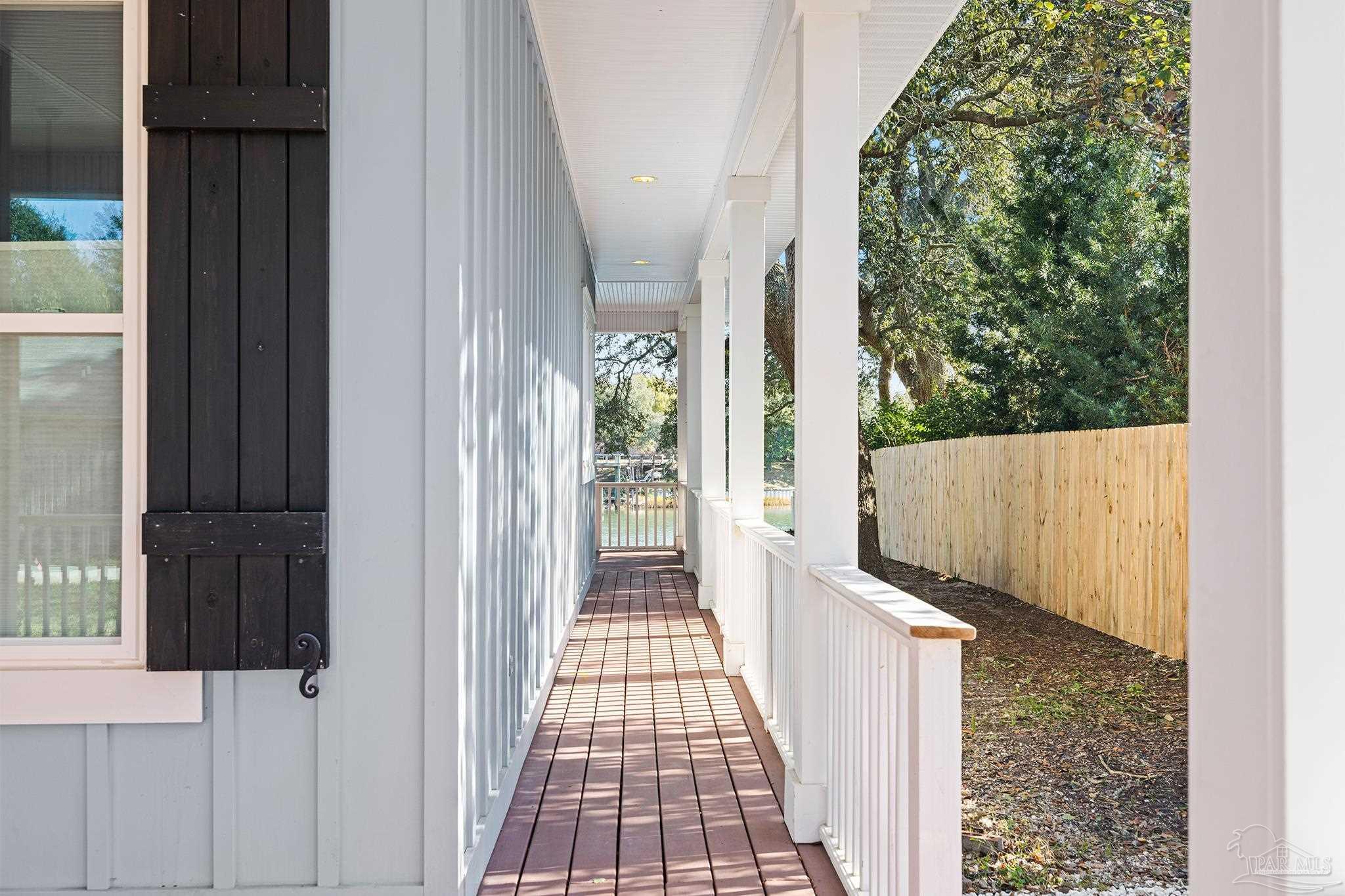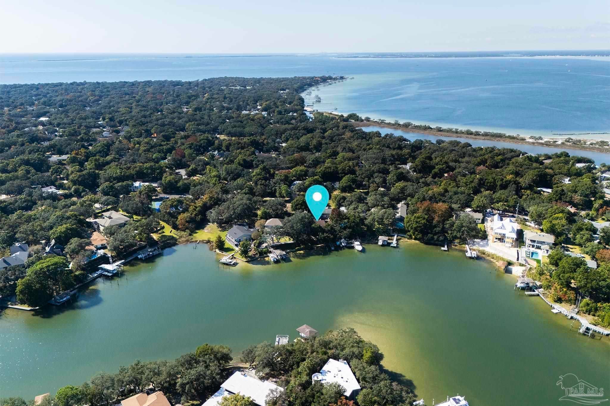 Nestled along the tranquil shoreline of Woodlawn Bayou, this exceptional residence is luxury coastal living in the prestigious enclave of Gulf Breeze Proper. Completed in 2012, the home blends timeless Southern architecture with refined modern craftsmanship, offering an elevated waterfront lifestyle framed by sweeping bayou vistas and the calming embrace of nature. A long, graceful drive leads to the property, where classic board-and-batten siding, gabled dormers, and a grand wraparound porch create an unforgettable first impression. Mature oaks drape the landscape, casting dappled light across the grounds and setting a serene tone from the moment you arrive. Inside, expansive walls of glass invite the outdoors in, showcasing panoramic water views from virtually every main living space. Natural light floods the interior, highlighting exquisite finishes and creating a seamless connection between indoor comfort and the breathtaking environment just beyond the windows. The rear porch spans nearly the entire length of the home, offering multiple areas for relaxation and elegant outdoor entertaining. Gentle breezes flow through the space as you overlook the private dock. This is your direct gateway to boating, paddleboarding, and sunset cruises along the bay. The property’s elevated positioning along the water provides both captivating scenery and an uncommon sense of privacy. Here, mornings begin with golden light rising over the bayou, and evenings end with vibrant coastal sunsets reflected on the water. Located minutes from elite schools, boutique dining, Pensacola Beach, and the cultural attractions of downtown Pensacola, this residence offers convenience without compromising seclusion. It is a rare sanctuary where luxury, craftsmanship, and waterfront tranquility converge.