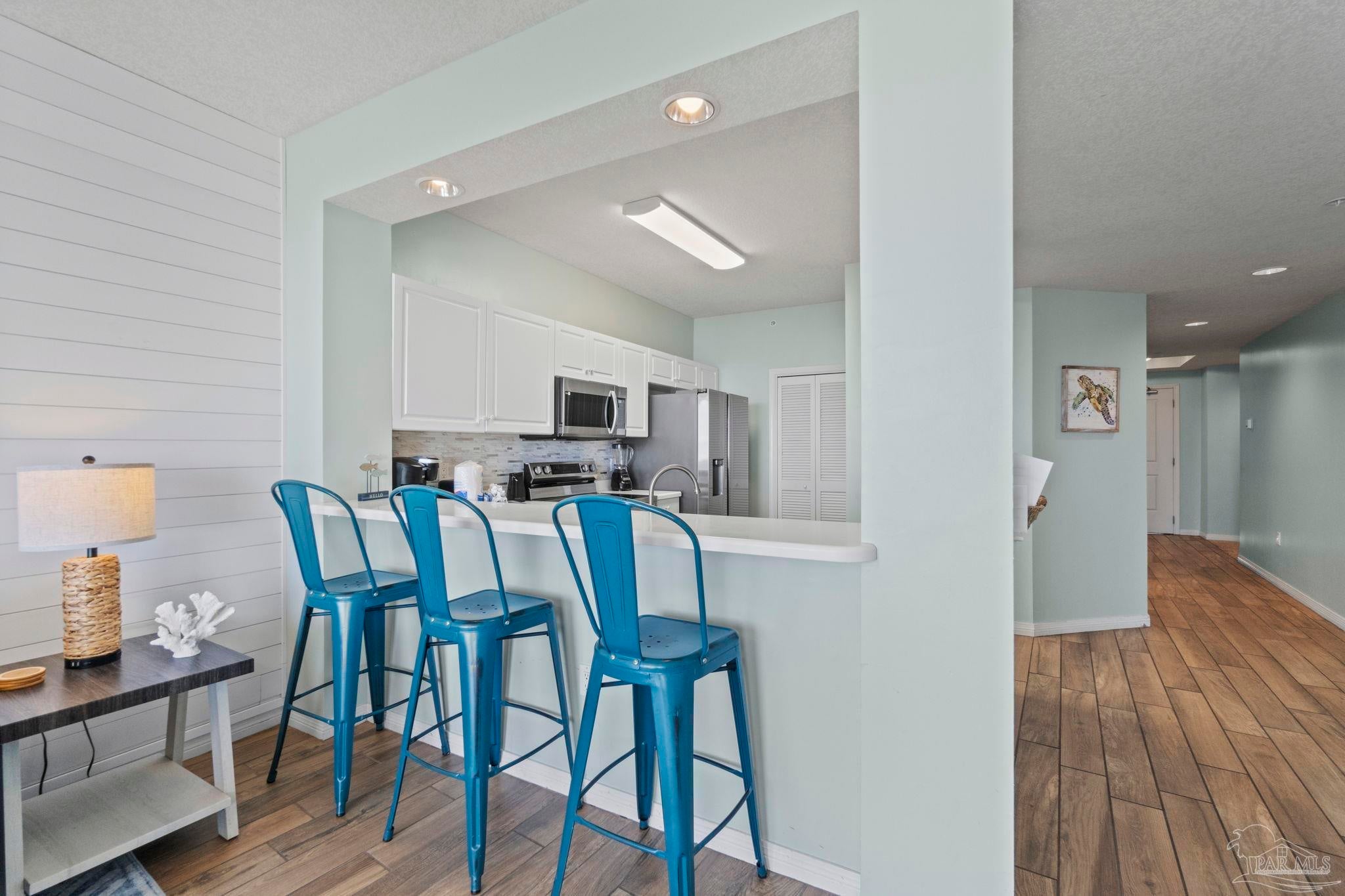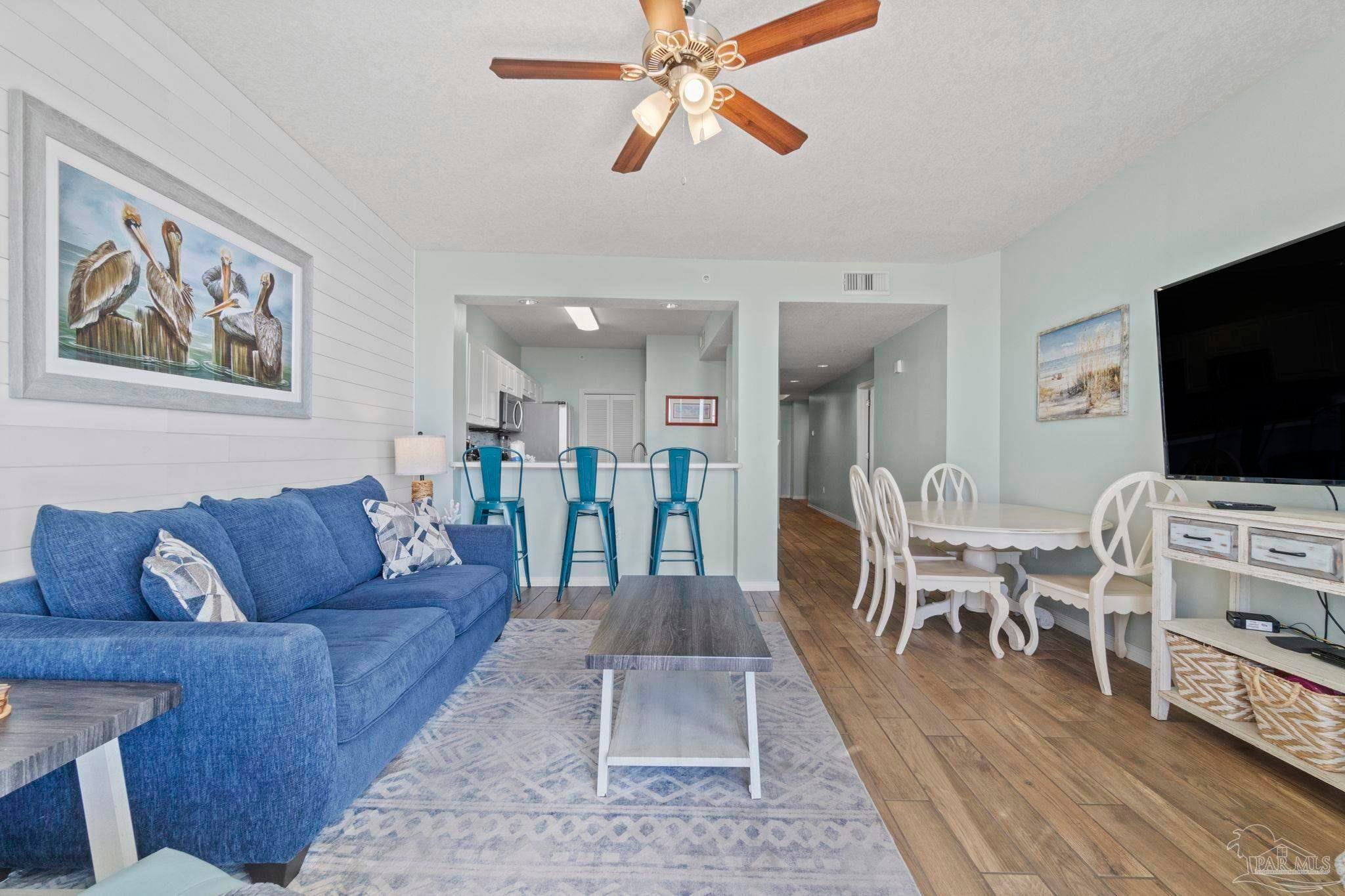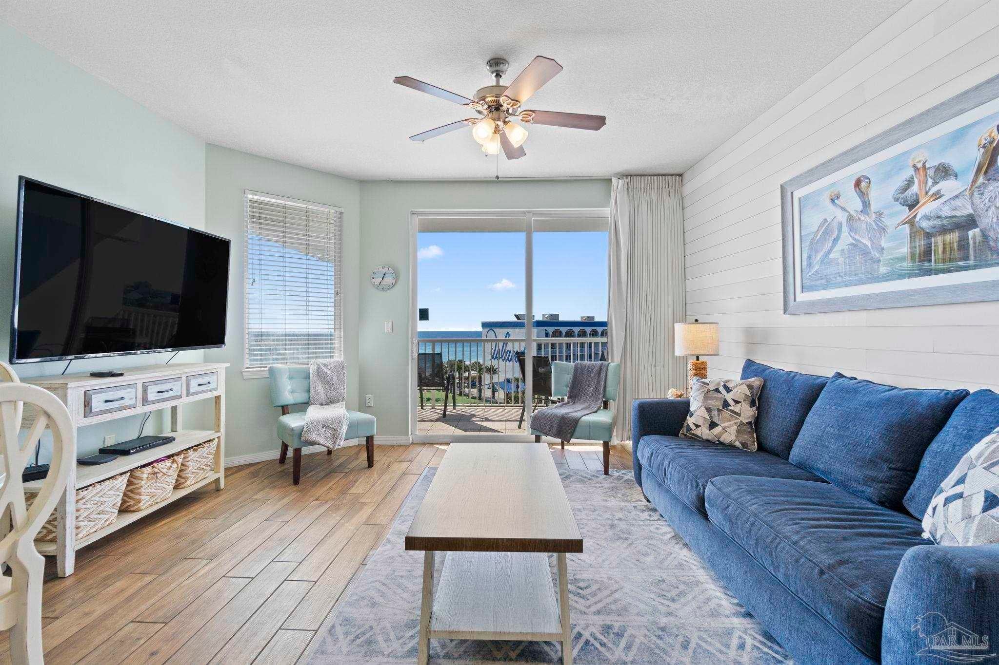 Experience the ultimate beach life with unparalleled Gulf views in this top-floor condo at Destin West. Recently upgraded and offered fully furnished, this stunning property boasts excellent rental potential or makes for the perfect vacation retreat. With 2 spacious bedrooms + bunk room, this condo comfortably accommodates up to eight guests. Freshly painted with new wood-look tile flooring, the interior is beautifully appointed with stylish, modern furnishings. The kitchen is equipped with plenty of storage and counter space, plus a convenient breakfast bar for four. Step outside to the private balcony—your very own personal sanctuary to unwind while soaking in the sights and sounds of the Gulf. Whether you're looking for an investment or a getaway, this condo offers it all!! This fully furnished condo overlooks the Gulf of Mexico, beachfront pool & hot tub, kid's wading pool, fitness center, beach boardwalk and grassy grounds. Destin West's Gulfside Building has easy access to the walkover bridge. The bay-side amenities include the lazy river, zero-entry pool, heated pool with waterfall, and community hot tubs. Enjoy all the amenities included with the HOA: several pools, hot tubs, lazy river, direct beach access, skybridge walkover to Bayside, grills, fitness center & more!