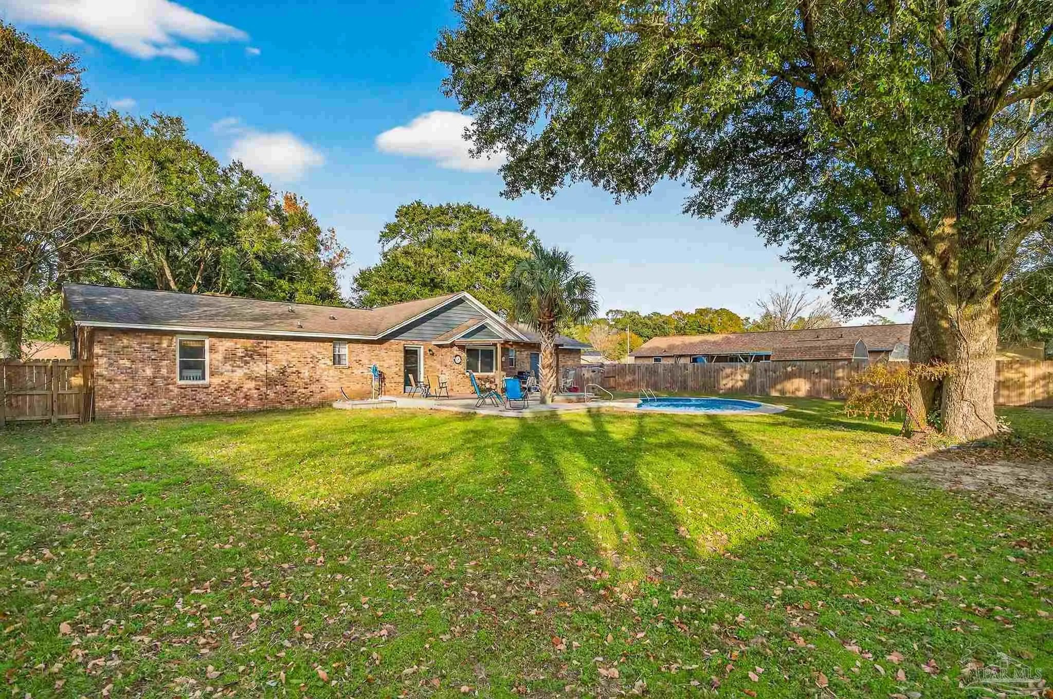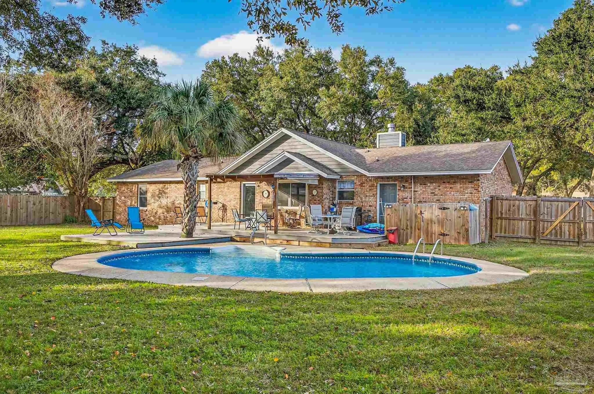 Welcome home ~ to this charming 3-bedroom 2-bath single-family retreat that perfectly blends country living with everyday convenience. Nestled on a spacious lot, this home offers peace, privacy, and room to breathe ~ while keeping you close to shopping, dining, and major amenities. Inside ~ you’ll find a warm and inviting living space ~ highlighted by a beautiful wood burning stone fireplace, a vaulted ceiling complemented by a lovely lighted ceiling fan, and expansive windows that create a sun-filled living room perfect for relaxing or entertaining. Spanish lace textured ceilings and walls, 6-panel doors, chair railing with molding in the dining room, and crown molding and baseboards throughout, add a refined touch. The kitchen is filled with solid wood cupboards, and the breakfast nook offers lovely views of the in-ground pool, making mornings a true delight. The 14’5 x 12’5 primary suite features a double vanity, a private tile clad bath/shower combo, and a large walk-in closet providing ample storage. Every room is thoughtfully designed for comfort and functionality, offering defined spaces for dining, relaxing, and everyday living. Step outside to your own private oasis. Enjoy sunny afternoons in the in-ground pool, host friends on the spacious deck, or simply unwind and take in the peaceful scenery of the expansive back yard. Combining charm, character, and the ideal location, this home offers the best of both worlds ~ and is ready to welcome you ~ home! Updates: New 6 ft wooden privacy fence and gates 2023; Exterior paint 2022; New pool pump and sand filter 2021; New pool liner 2021; Water Heater 2021; New Windows and front door 2018; LV Floor Lumber Liquidators 2018; HVAC 2014; To make your move even easier, the sellers are offering up to $15,000 in Seller Concessions and providing a home warranty for added peace of mind.