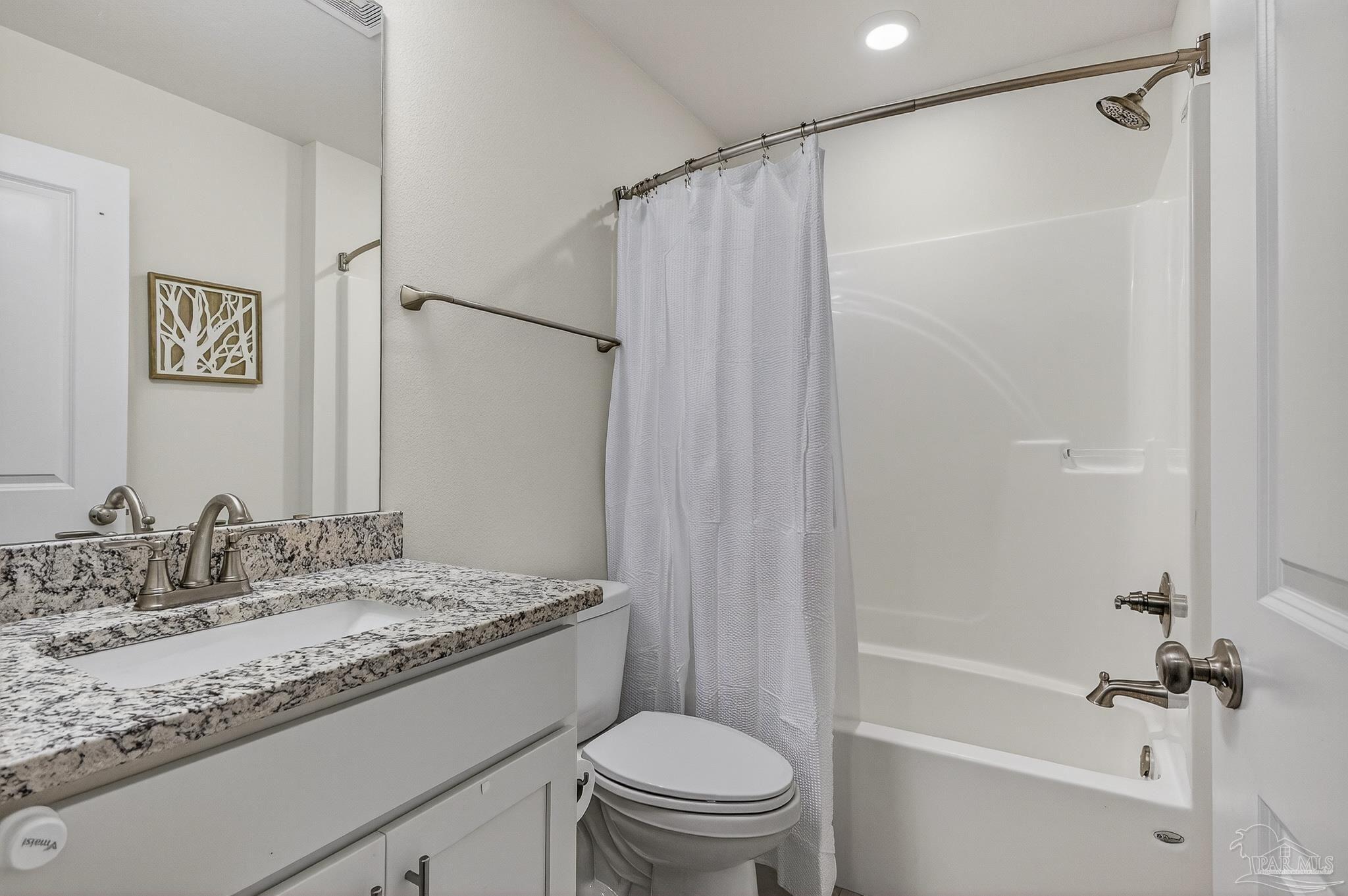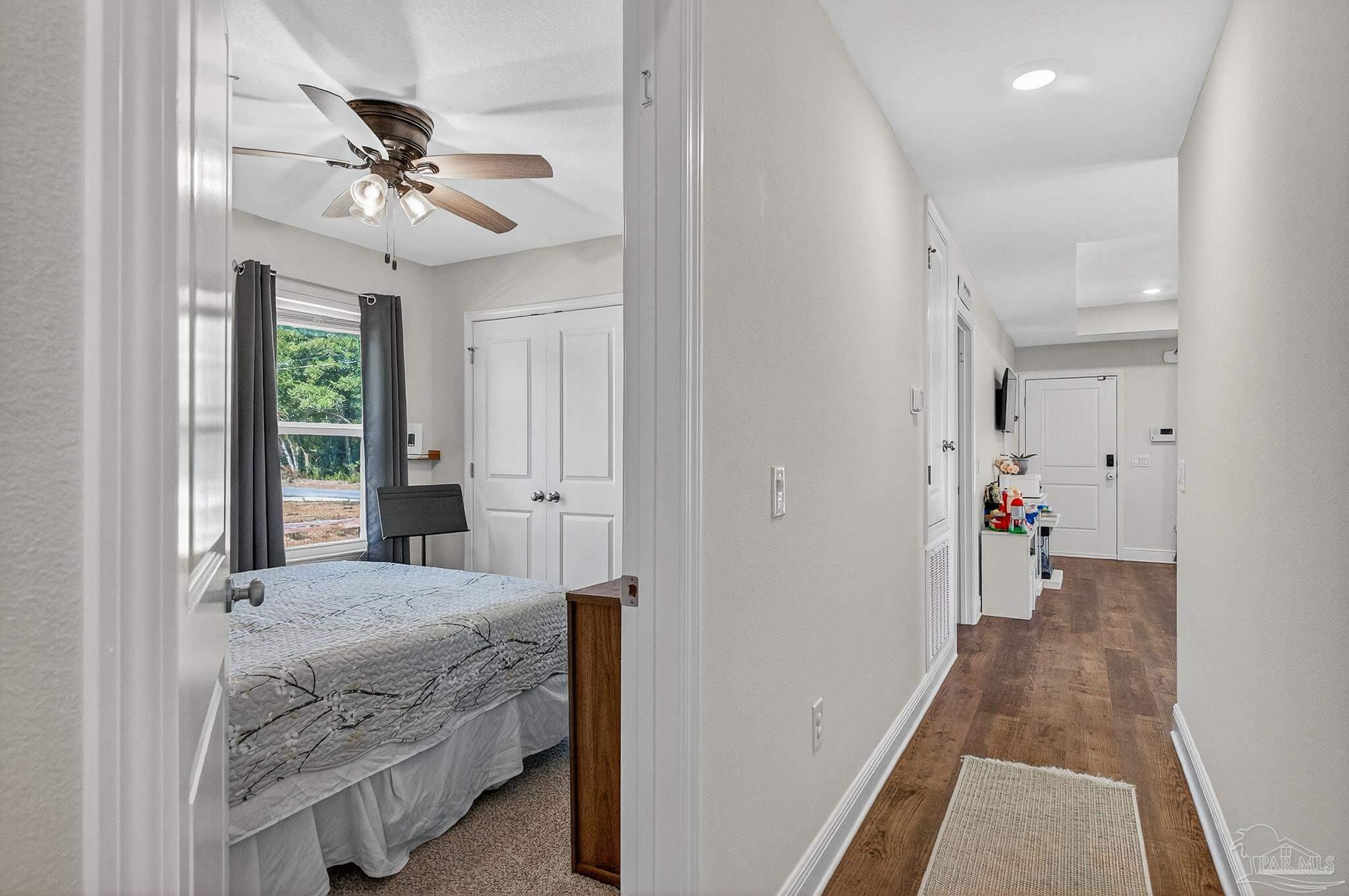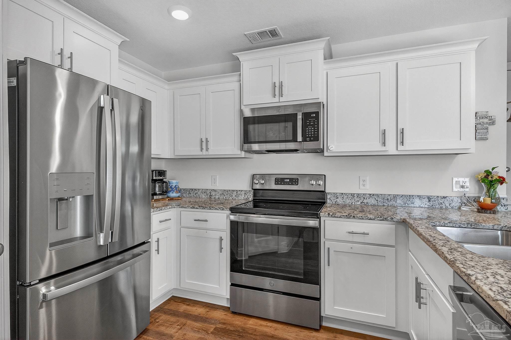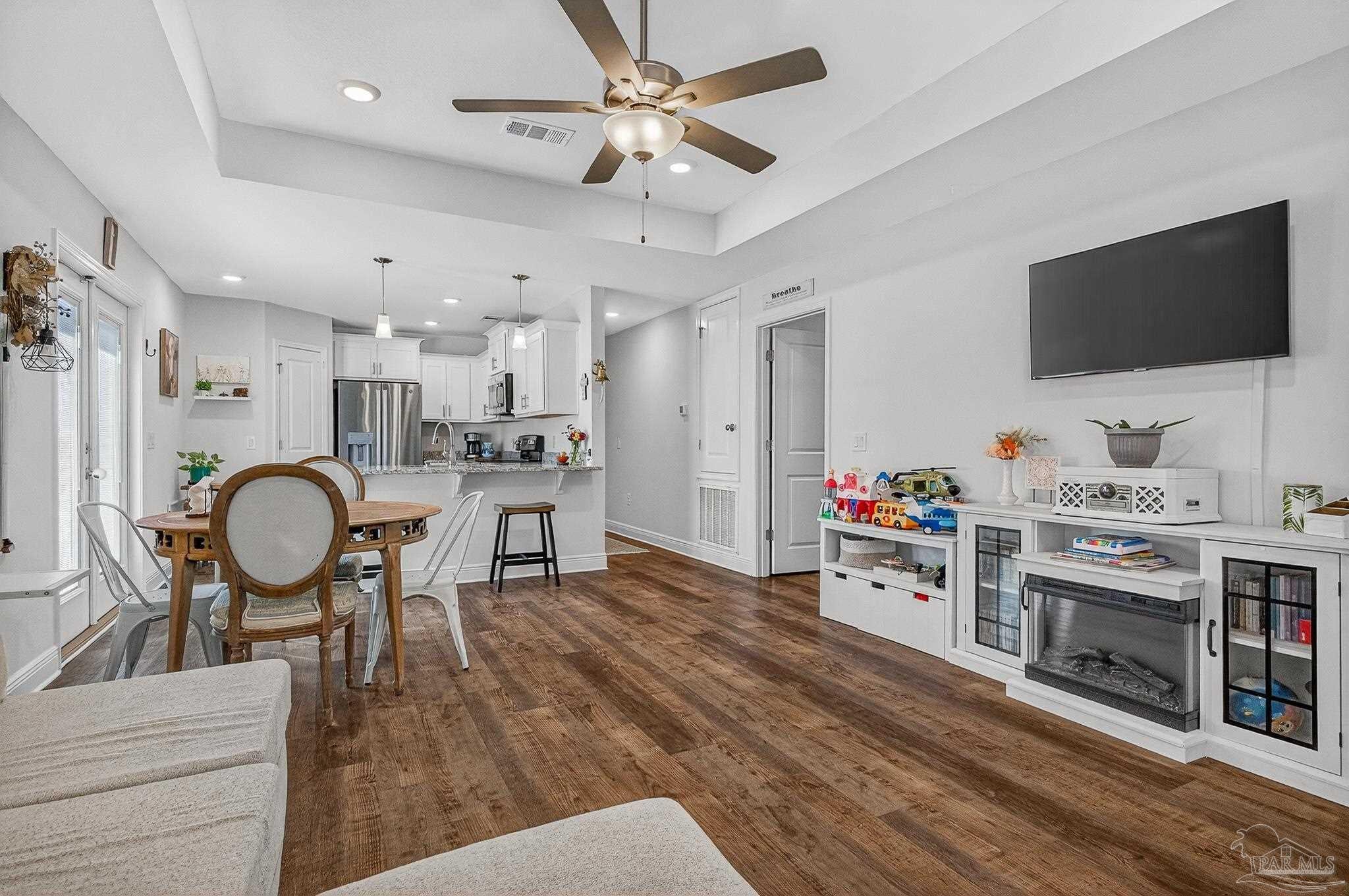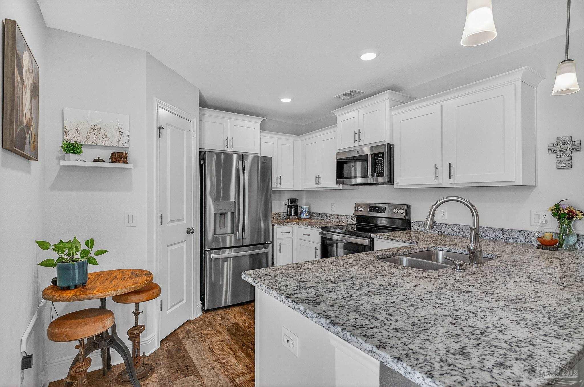 Welcome to this like-new home—just two years old (built 2023) on nearly a half-acre lot in a quiet subdivision. With 3 bedrooms and 2 bathrooms across 1,165 sq. ft. of finished living space, the floor plan is thoughtfully laid out for both comfort and ease. Step inside to an open living room/kitchen/dining area where modern finishes abound: granite countertops, shaker-style cabinets, a walk-in pantry, stainless-steel kitchen appliances, and a convenient breakfast bar. Luxury vinyl plank flooring spans all of the common areas while the bedrooms offer plush carpet for comfort. The master suite enjoys a large walk-in closet and a private bath with granite vanity. Outside, the home sits on a nicely sized 0.46-acre parcel giving you both space and privacy. A recently installed fence encloses a generous portion of the yard — ideal for children, pets, or outdoor entertaining — while beyond the fenced area the lot continues, opening up exciting possibilities: a large garden, play area, or even potential for a pool and outdoor living. This property combines the ease of move-in with the benefits of extra outdoor space seldom found in newer homes. Don’t miss this opportunity for a virtually brand-new home with extra land and flexibility in one of Santa Rosa County’s suburbs.