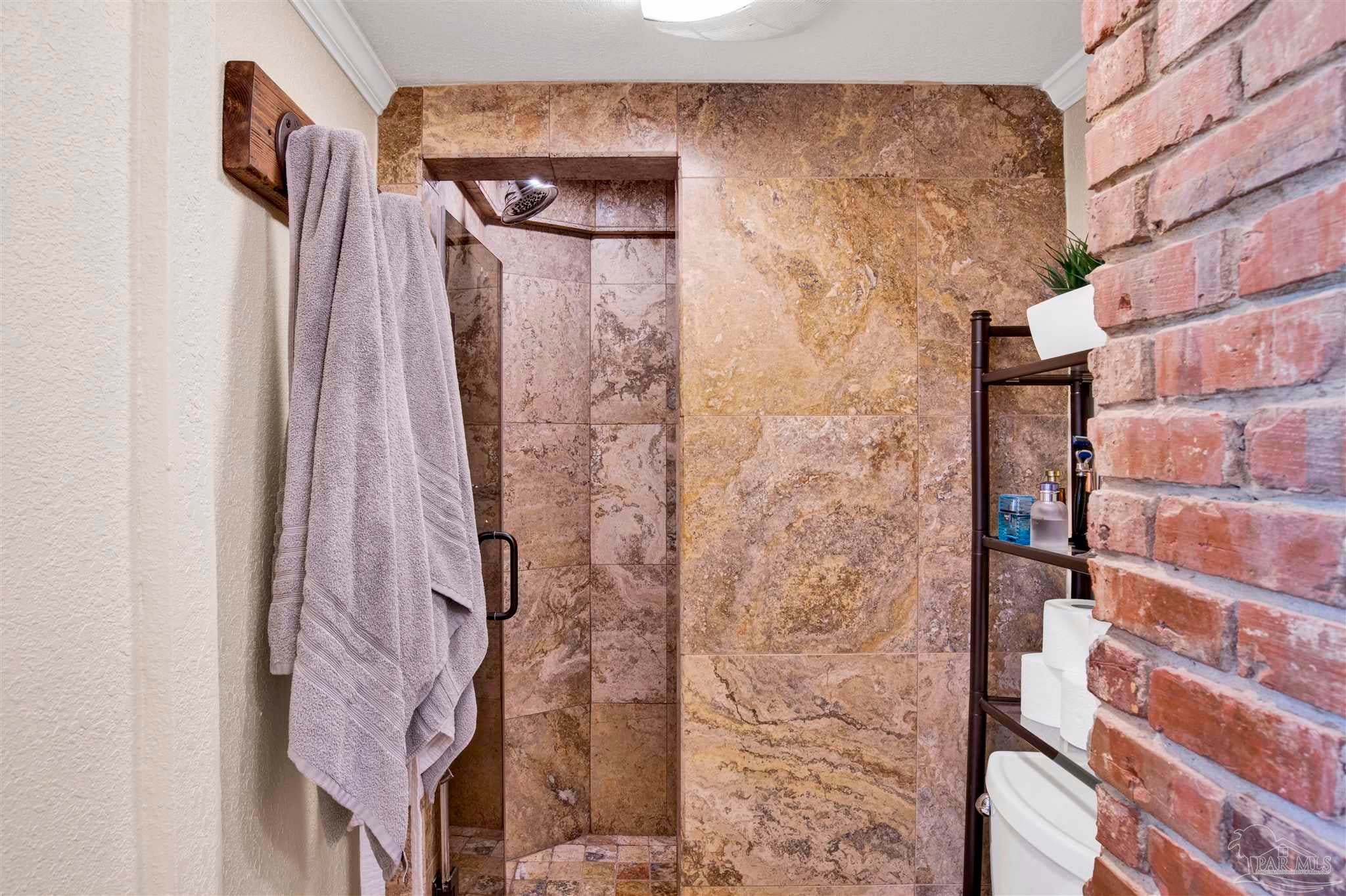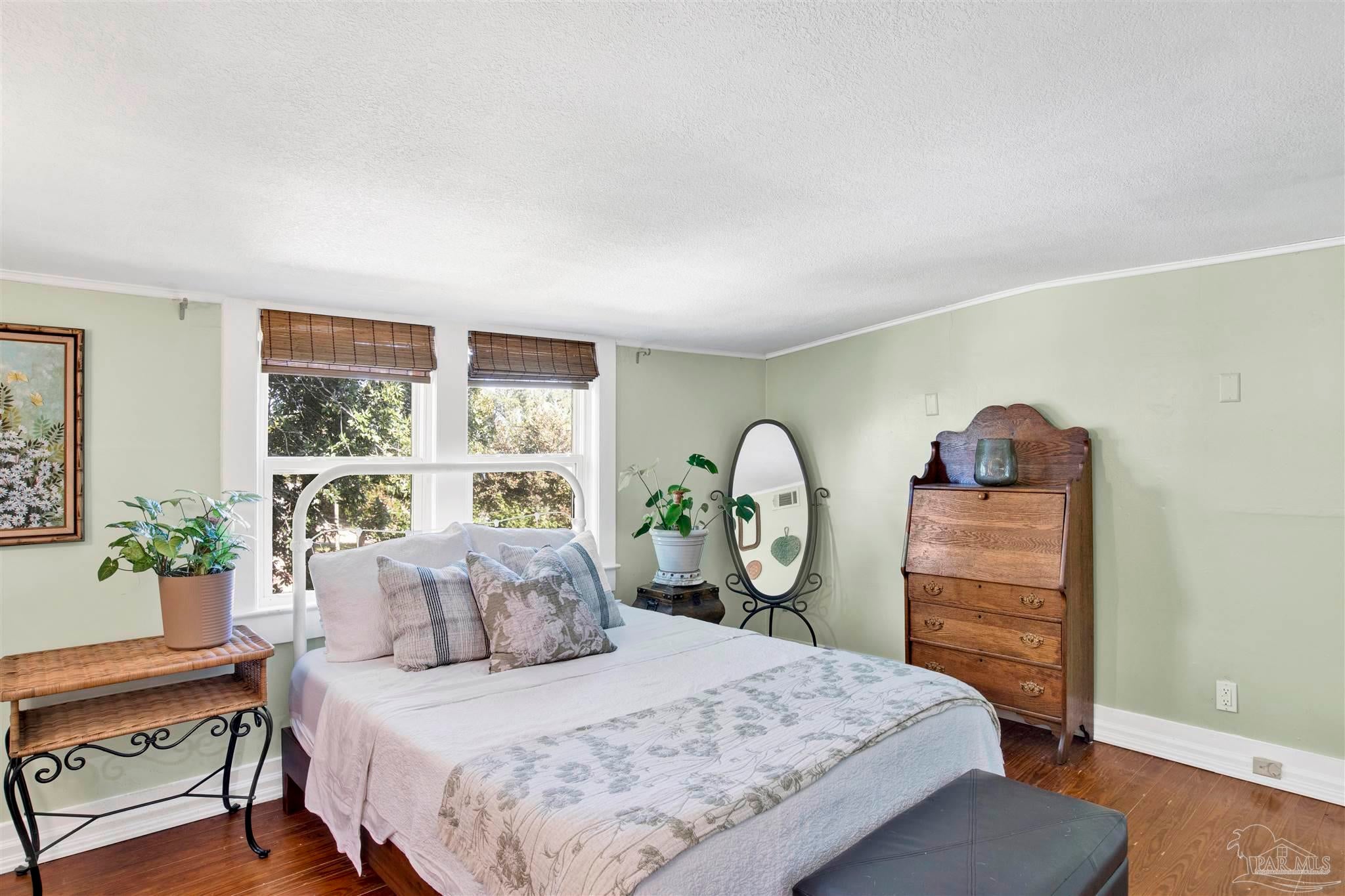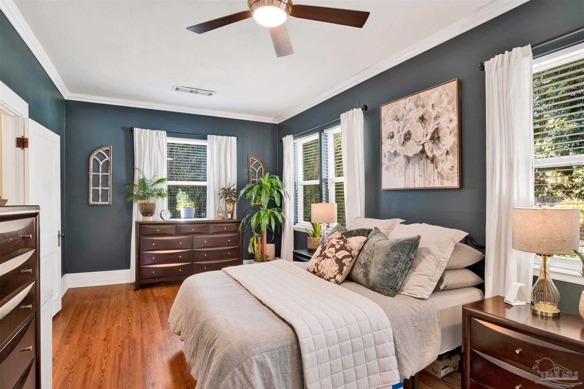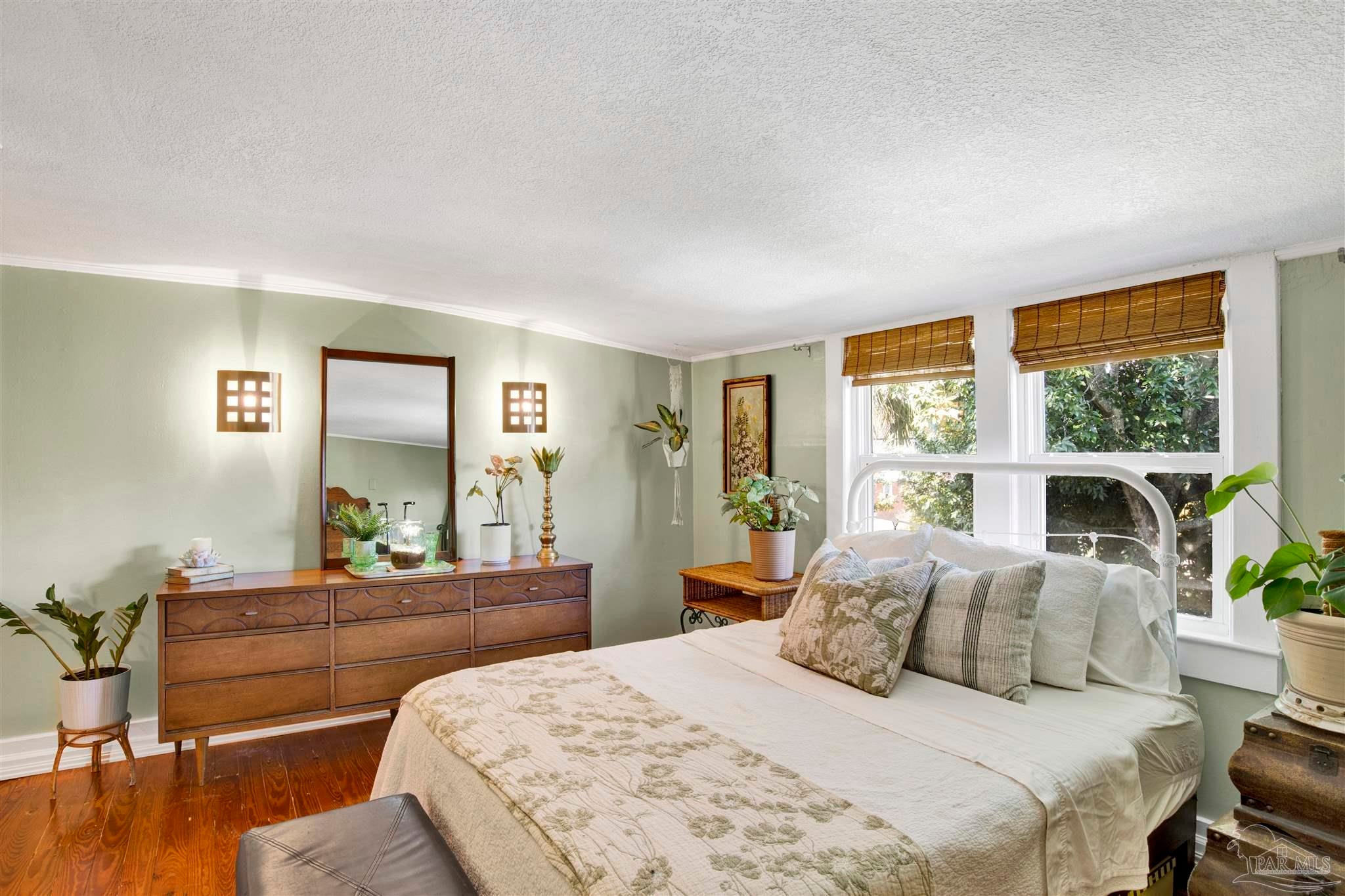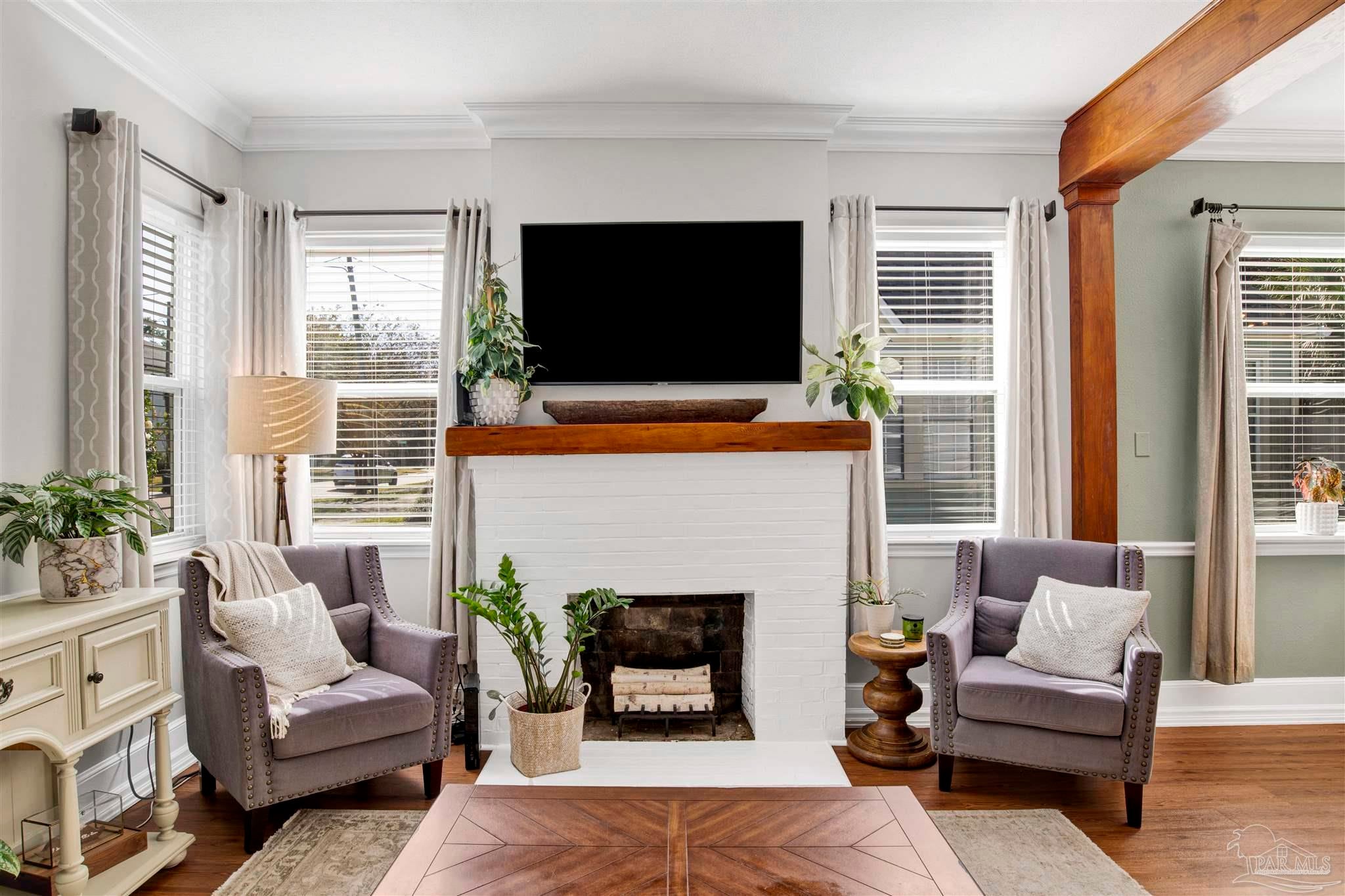 Built in 1928 and thoughtfully updated for modern living, this East Hill cottage blends historic character with contemporary comfort. From the inviting covered front porch, step into a light and bright living room showcasing luxury vinyl plank flooring, high ceilings, built-in bookcase, decorative fireplace, and substantial crown molding—classic architectural elements that define the era. The adjacent dining area offers a built-in bar with wine rack and glass-front cabinets, creating an elegant space for entertaining. The chef’s kitchen is truly exceptional, boasting charming brick flooring, granite counters, a pass-through bar to the dining area, center island, and an array of beautiful cabinetry with specialty drawers. Stainless appliances include an oversized cooktop and an oven with warming drawer. Off the kitchen, obscured-glass French doors lead to the laundry room, where the washer and dryer convey. The primary suite, located on the main level, features a spacious bedroom with two closets—one a walk-in. The primary bath offers travertine flooring, a walk-in shower, and a teak vanity topped with a vessel sink. Also on the main level is a large guest bedroom and a full bath complete with a charming claw-foot tub. Upstairs, beautifully restored original hardwood floors lead to a generous guest bedroom with its own attached half bath—ideal for visitors or a private retreat. Step outside to a privacy-fenced backyard sanctuary, where a large open patio is framed by mature bamboo that softens the landscape and creates a serene, secluded atmosphere. A workshop sits just beyond the single-car carport, along with an additional yard building for extra storage. This thoughtfully updated cottage is the perfect blend of East Hill charm and modern convenience—move-in ready and truly one of a kind.