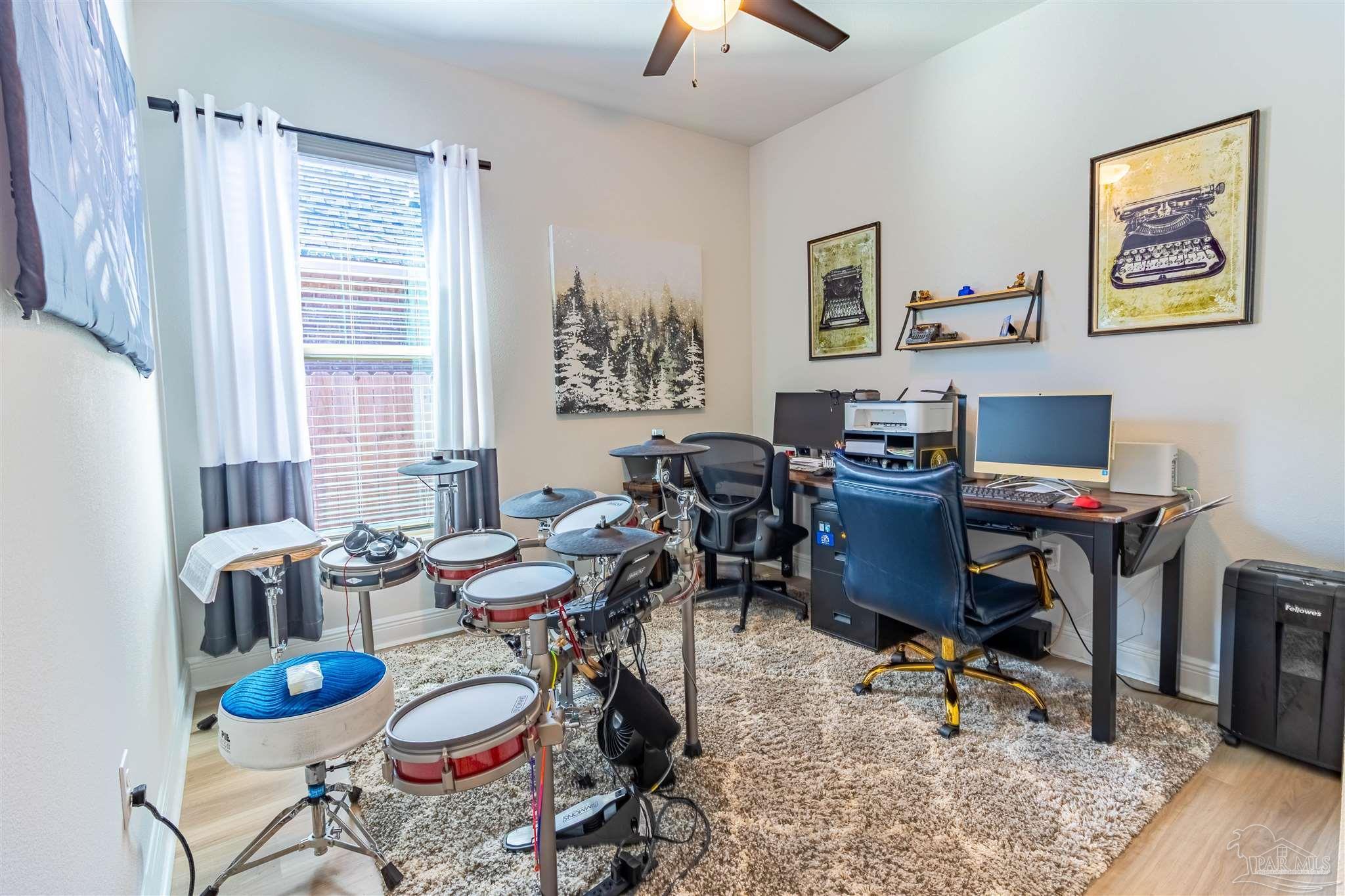 - Baseboards, Ceiling Fan(s), High Ceilings, Recessed Lighting