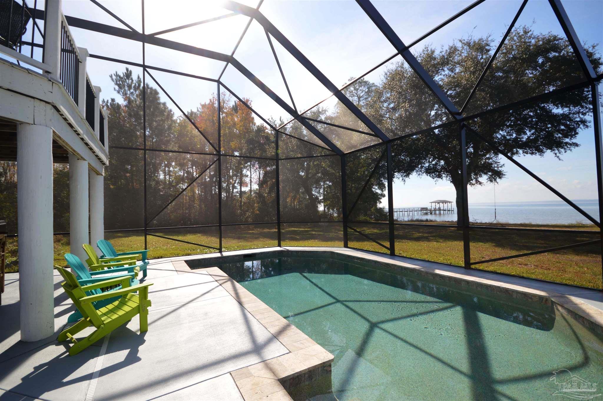 Experience the best of waterfront living with your own piece of paradise overlooking beautiful Escambia Bay in Milton, FL. Conveniently located just 5 minutes from I-10 and only 30 minutes to downtown Pensacola or the area’s pristine beaches, this property offers both serenity and accessibility. Situated on 1.84 acres with 195 feet of water frontage, the home is beautifully landscaped and includes a fully stocked pond. Inside, you’ll find 4 bedrooms, 4 bathrooms, and 3,218 sq. ft. of thoughtfully designed living space. Hardwood floors, travertine, and expansive windows showcase stunning views from nearly every room. The large kitchen and spacious living areas provide the perfect setting for everyday living or entertaining. A formal dining room and a cozy sitting room—ideal for playing guitar with friends and family—add to the home’s charm. For those who work from home, the office offers inspiring water views with a full bath conveniently nearby. Upstairs, the main bedroom features its own private screened-in porch, perfect for enjoying your morning coffee as the sun rises or unwinding with a cocktail at the end of the day. The upper level also includes a mother-in-law suite and two additional bedrooms connected by a Jack-and-Jill bath. Outside, enjoy magnificent sunsets and an enclosed, heated gunite pool for year-round relaxation or entertaining. The property also offers a 2-car garage, generous workspace below, and ample room for your boat or RV. This stunning home is ready to welcome its next owner. Call today to schedule your private tour.