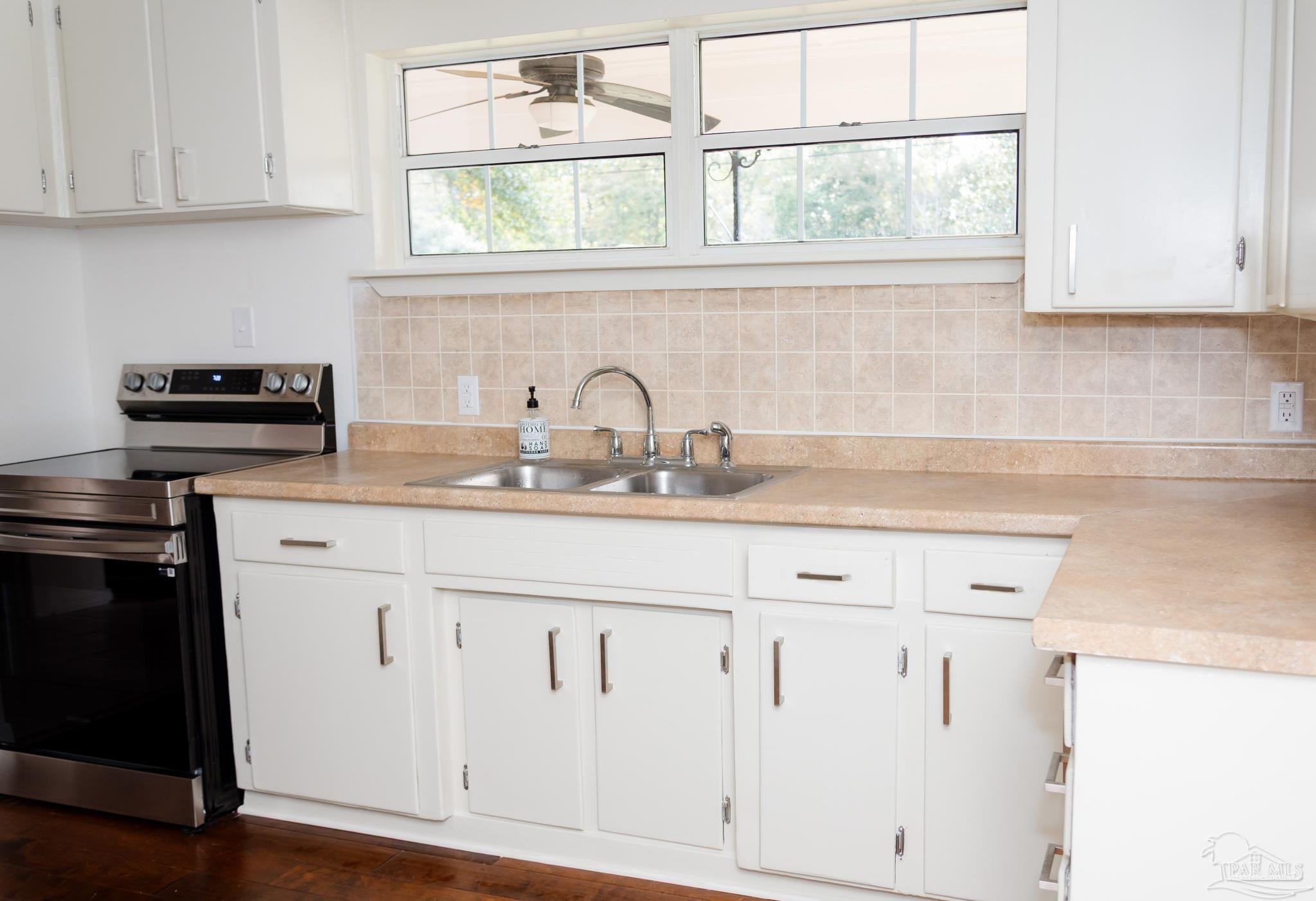 Charming Brick Home with Modern Upgrades in Cantonment, FL. This inviting **all-electric brick home** blends classic character with fresh updates throughout. Featuring **3 spacious bedrooms and 2 full baths**, it offers comfortable living with thoughtful improvements that make it move-in ready. Updates include: **Freshly painted inside and out**, giving the home a crisp, clean look. **New R38 attic insulation and new toilets** ensures energy efficiency and lower utility costs. **New AC unit and water heater** deliver reliable comfort year-round. **Updated fixtures and lighting** bring a modern touch to every room. A brand-new **stainless steel stove/oven** for the kitchen just in time for the holidays. Outdoor features include a **Brand New Roof**, **Carport** for convenient covered parking, attached large **utility/laundry room** with washer and dryer (sold with the home as-is) and a **Backyard storage building** with electricity that adds extra space for tools, hobbies, or seasonal items. Whether you’re looking for your first home or downsizing to something manageable yet stylish, this home offers the perfect balance of **classic appeal and modern efficiency**. Make this your home today!