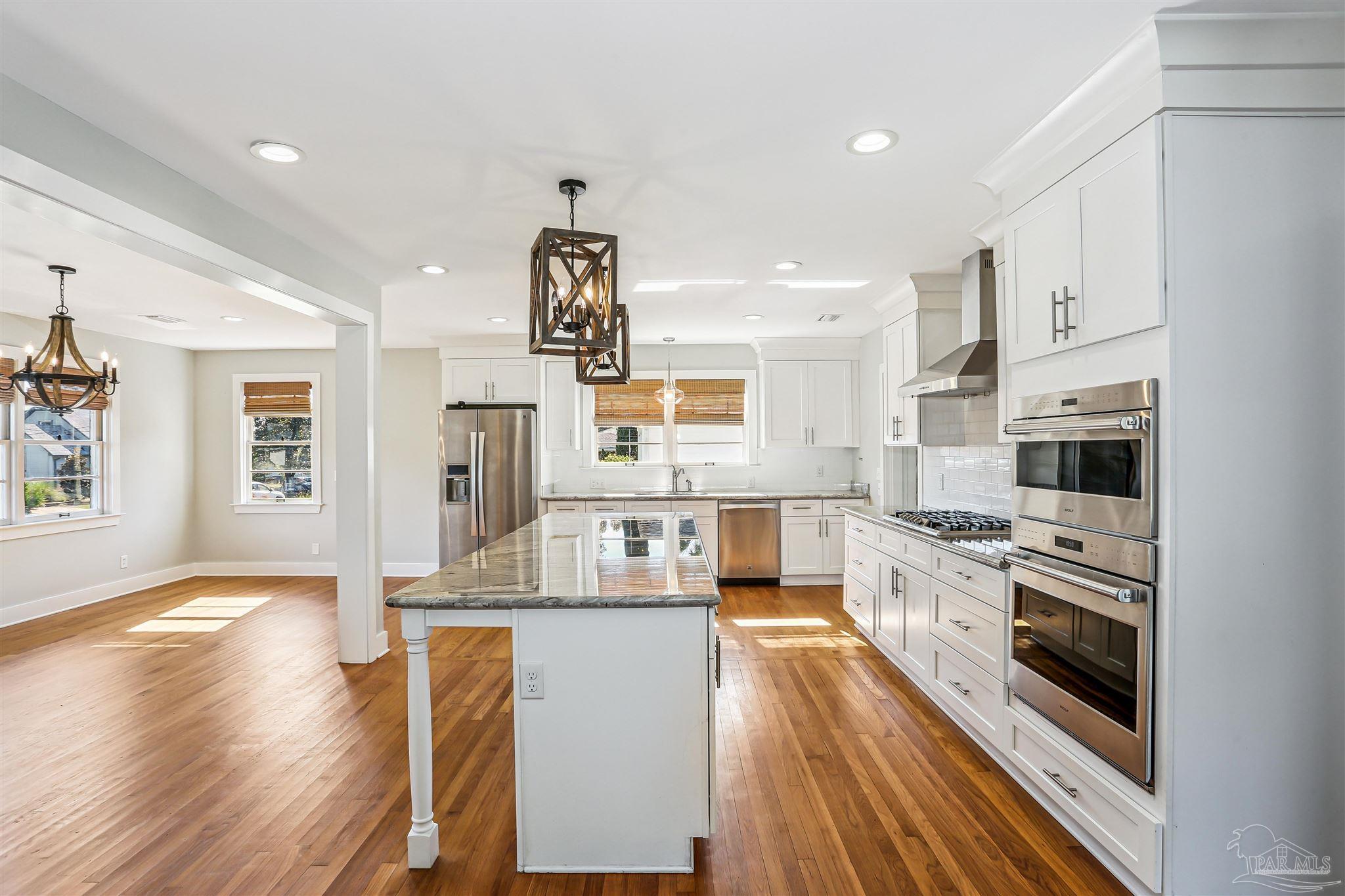 ** Gorgeous, Move-In Ready 4 bedroom, 3 full-bath beauty sits in one of Pensacola’s most beloved neighborhoods - East Hill, just steps from iconic Bayview Park with its public tennis courts, boat launch, dog parks, dog beach, kayaking, paddle boarding, community center, and wide-open green spaces for every kind of fun. Hop over to 12th Ave for your local fix of bakeries, pizza joints, pubs, restaurants, and more—it’s the definition of a walkable (and golf-cart-friendly!) lifestyle. Inside, this home is a perfect blend of classy and cozy. Original white oak floors guide you into an open, airy, fully renovated kitchen boasting a massive center island (bring all the barstools!), gas cooktop, WOLF oven, and WOLF convection microwave, all wrapped in bright shaker style cabinetry and gleaming granite. The kitchen flows seamlessly to the spacious dining area and welcoming living room, complete with a wood-burning fireplace—because ambiance matters. Need room to spread out? You’ve got it—two living areas, including a generous den that opens directly to the pool. The split 4th bedroom (with walk-in closet and bath) makes an ideal guest suite, teen space, or home office. The laundry room is fully equipped with LG front loading washer/dryer set, extra fridge, and tons of storage. Step outside and fall in love with your private resort: a 5.5-ft deep gunite pool with sun shelf (hello, in-pool chaise loungers!), stone paver surround, open patio, and a large fenced yard perfect for gatherings. The pool features an ozone generator, and comes with its own robotic cleaner (Dolphin Liberty 300). Practical perks? You bet: • 2025 Whole-house generator • Sprinkler system • Floored attic with headroom • Oversized 1-car garage with opener • Completely remodeled bathrooms • Tons of storage throughout. This home has a natural flow that feels tailor-made for entertaining and everyday living. Ready for its next chapter—will it be yours?