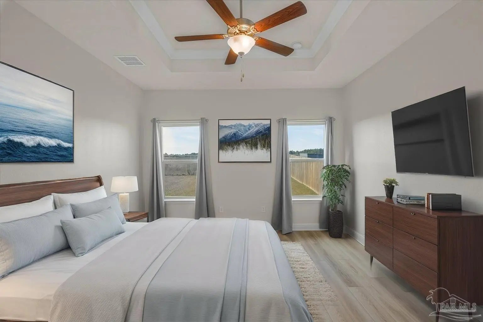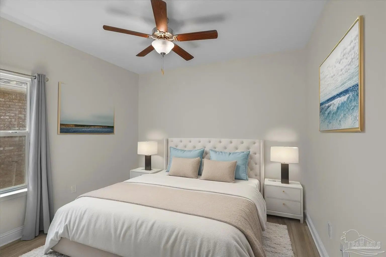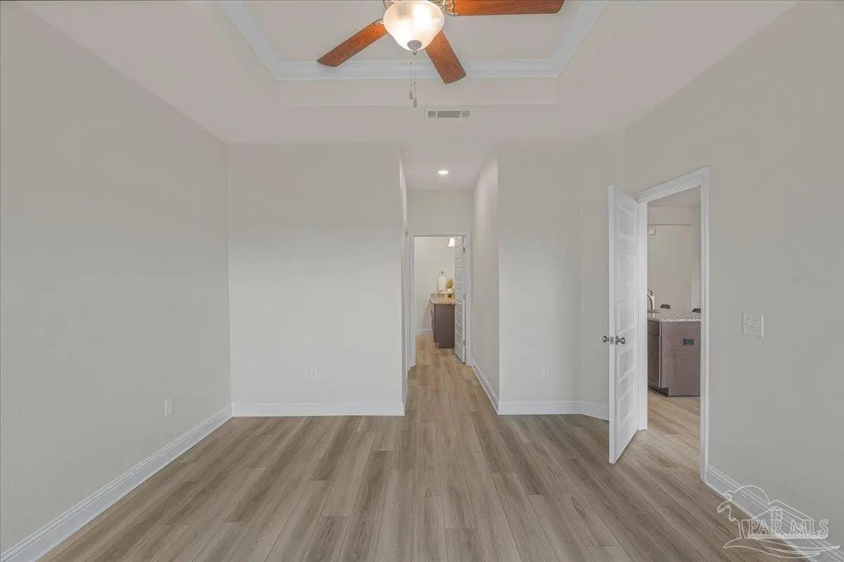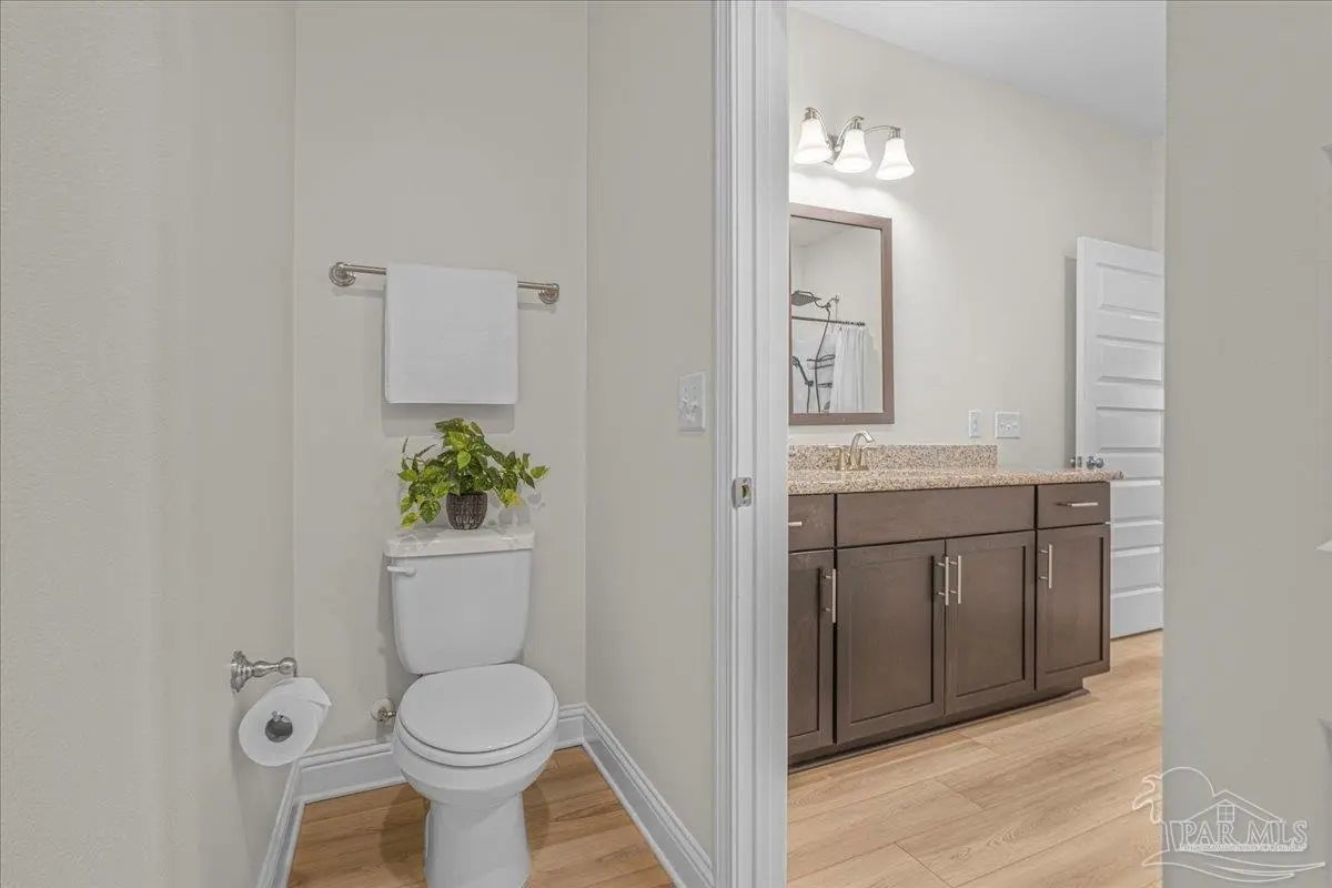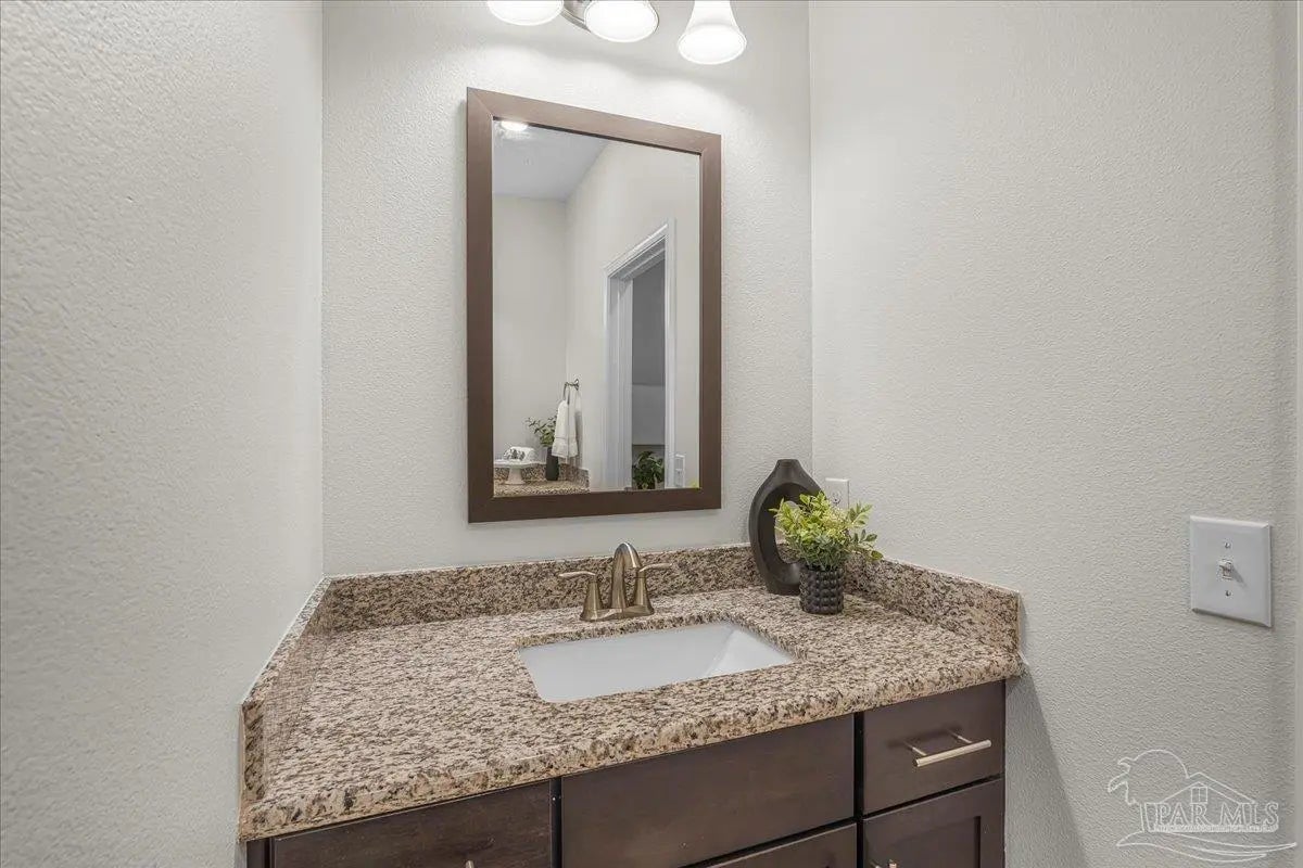 Fully fenced back yard, in ground sprinkler system, rain gutters, granite countertops throughout, LVP throughout, ceiling fans throughout, all appliances including refrigerator, washer and dryer & drapes. This home offers the perfect blend of style, convenience, and community in the highly sought-after Bentley Oaks neighborhood, complete with sidewalks throughout, a pickleball court, and a beautiful community park. This all-brick home sits on a peaceful lot with no neighbors behind you, offering privacy and tranquility just minutes from I-10, providing an easy commute to local bases, downtown Pensacola, and the beach. Step inside the popular Juniper floor plan, a thoughtfully designed 3-bedroom, 2-bath layout that feels spacious and inviting. The open-concept kitchen is the heart of the home, featuring real birch wood shaker-style cabinets with soft-close drawers, granite countertops, a large prep island, stainless steel appliances, and a built-in microwave. The breakfast nook flows seamlessly to the covered patio, perfect for morning coffee or evening entertaining. The primary suite is a private retreat with tray ceilings, a ceiling fan, and a deluxe bathroom offering a large walk-in shower, framed mirrors, LED lighting, and a spacious walk-in closet. Durable luxury LPV flooring extends through the main living areas and bedrooms. NO CARPET IN THIS HOME. Built with quality craftsmanship, this home includes a two car garage, 30-year architectural shingles, energy-efficient double-pane vinyl windows, and storm shutter protection for peace of mind. Enjoy low-maintenance living in one of the area’s most desirable communities — Bentley Oaks — where elegance, comfort, and convenience come together.