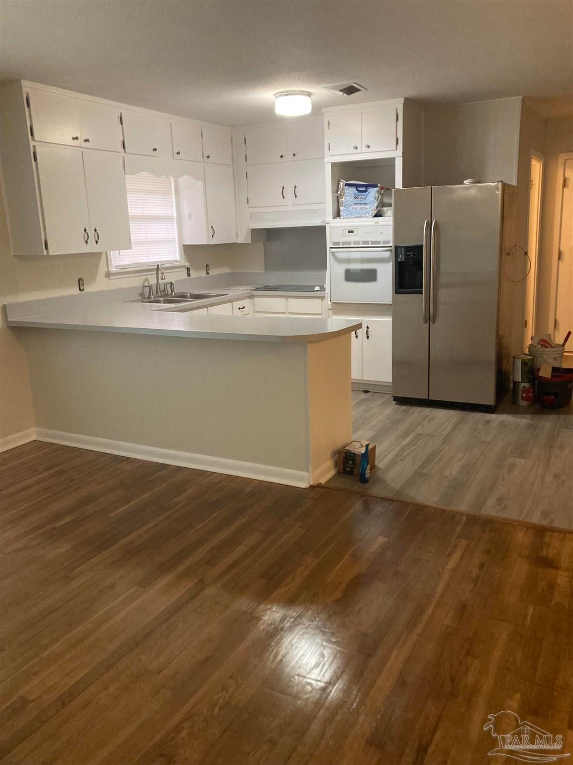 A Roomy place to call home. Bedrooms all have hardwood floors, Kitchen, Bathrooms and laundry room have tile. There is some carpet in the small living room. There is a side-by-side refrigerator with ice maker. A living room could be used as a fourth bedroom. Oversized 2 car garage. RV/BOAT cover.