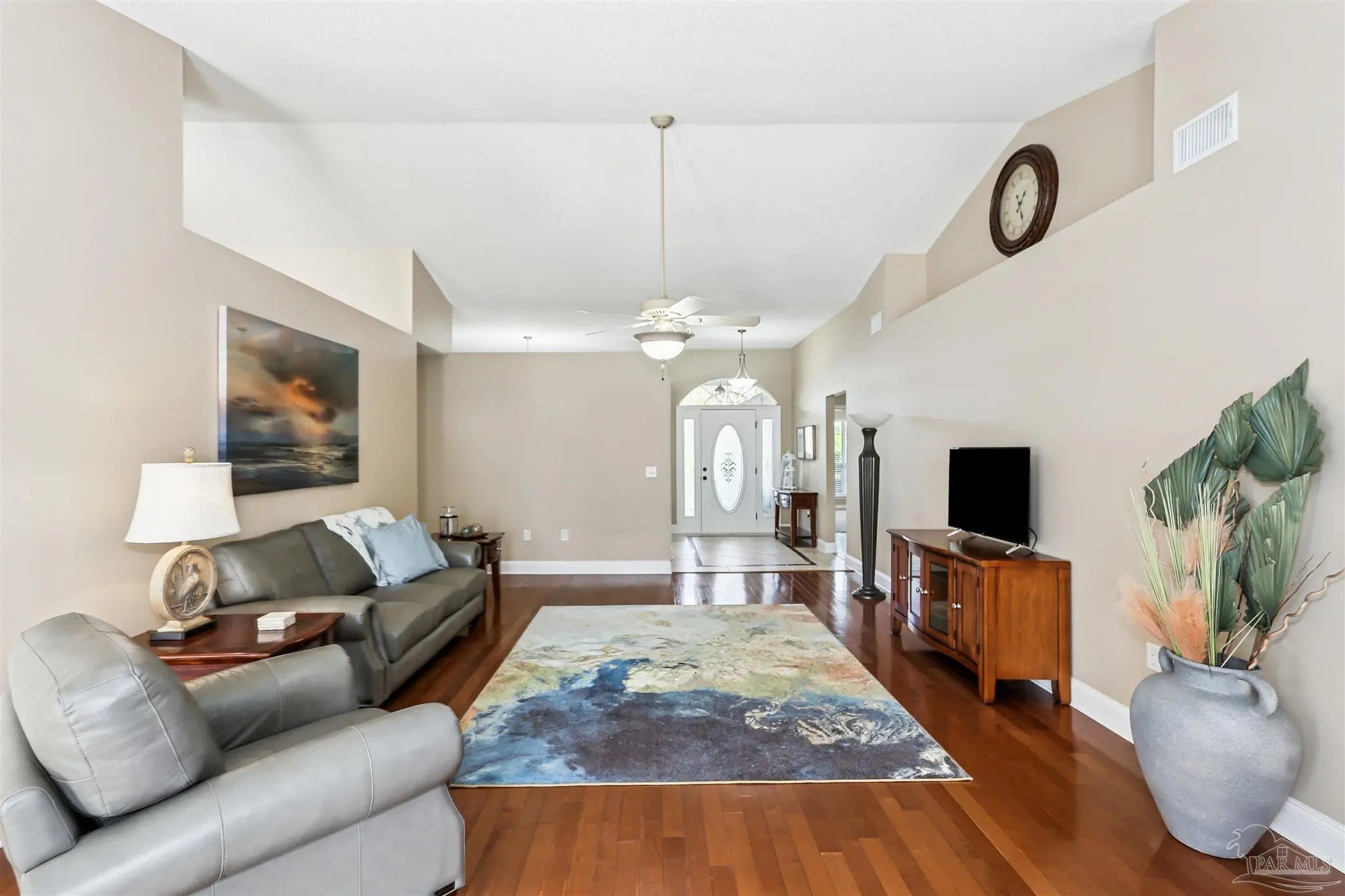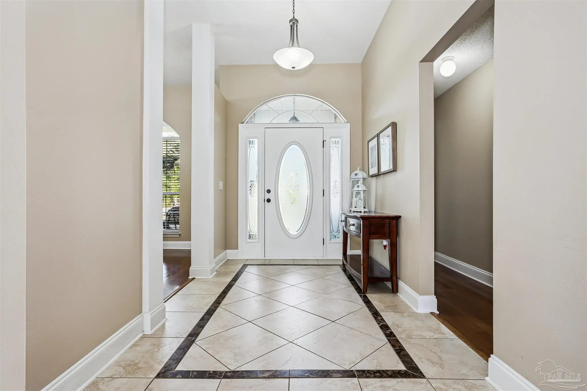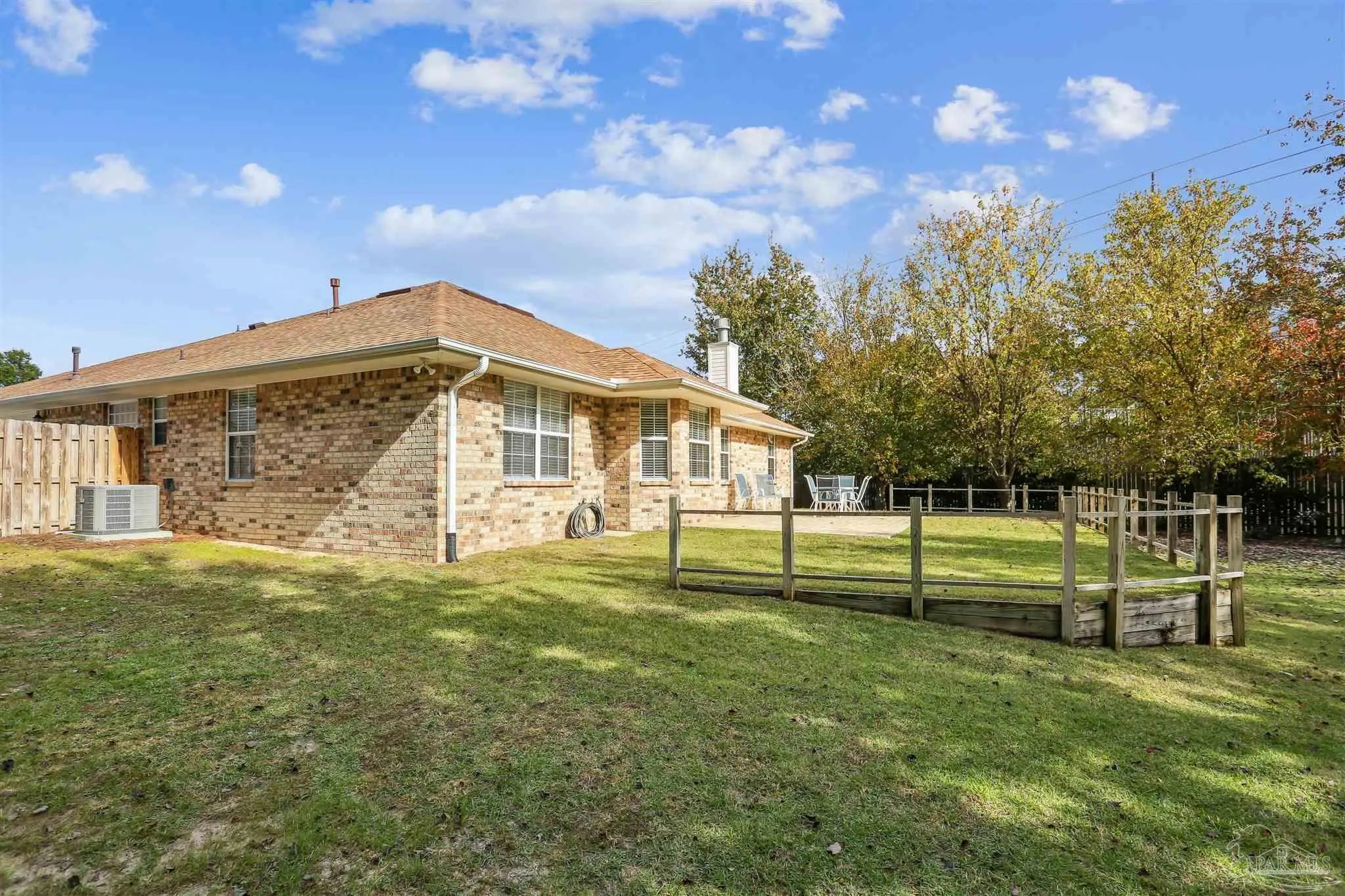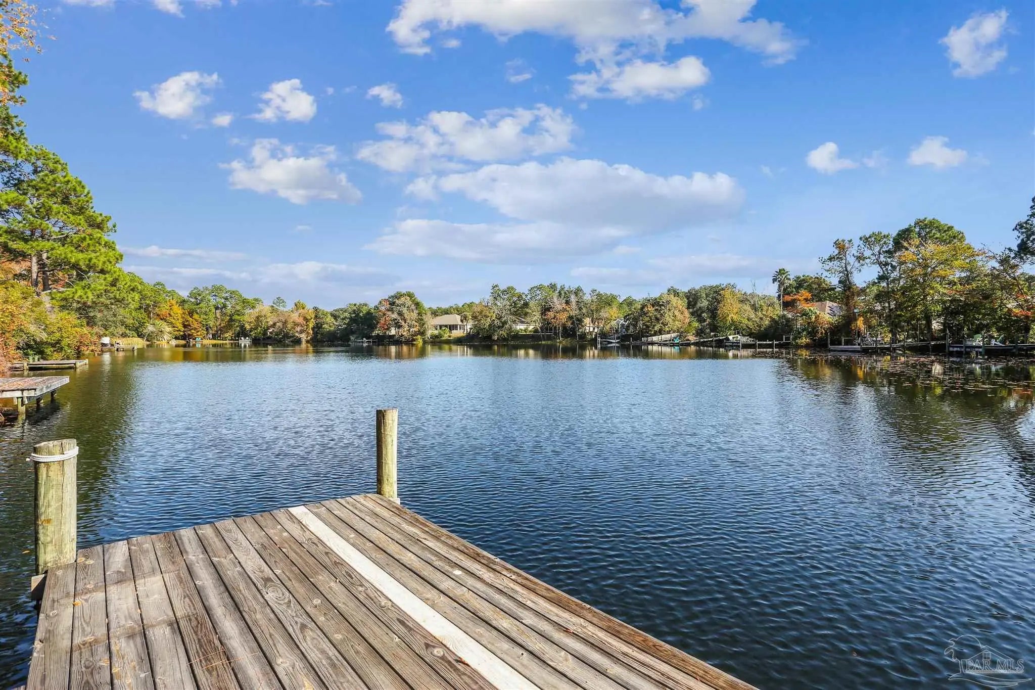 Located just outside west gate at NAS!! Great opportunity for investor!! This beautifully designed one-story residence sits on a gorgeous, fully landscaped nearly 1/2 acre lot on a cul de sac. As you enter the home you are welcomed by a large foyer with travertine floors. The expansive living room and dining room have beautiful engineered hard wood floors. On cool evenings you can cozy up to a gas fireplace. Kitchen is a cooks dream with silestone counter tops and stainless steel appliances. The home features a highly sought-after split floor plan, providing ultimate comfort and privacy. The spacious main bedroom is thoughtfully situated on one side of the home, while three additional bedrooms and a full bath are located on the opposite side. Home offers a large inside laundry room and side entry garage. This property also boasts significant recent upgrades for peace of mind, including a new HVAC system in 2017, a roof replaced in 2021, hot water 2015. Fresh paint and hardware throughout. Minutes to the back gate of NAS Pensacola, Downtown Pensacola and beaches. Great subdivision with picnic and playground area on the lake.