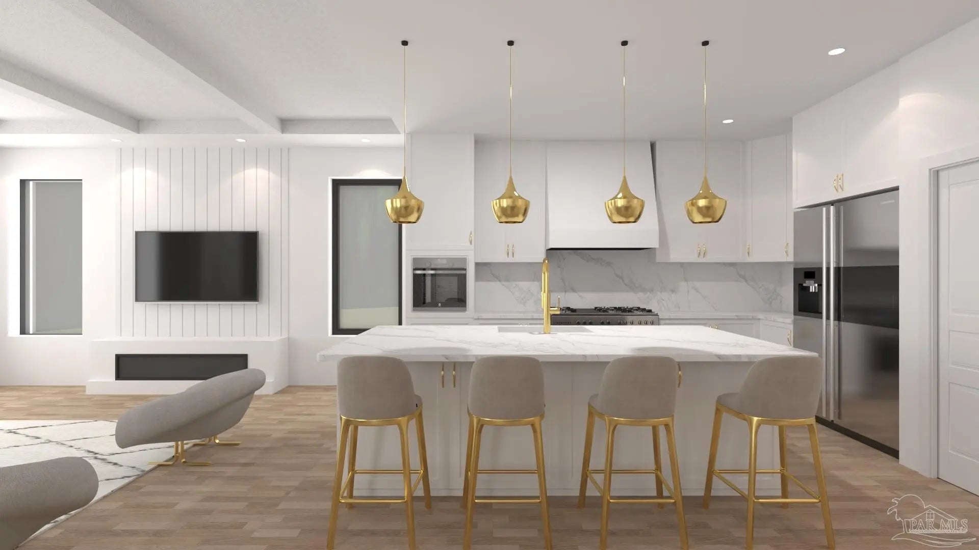 Stunning new-construction insulated concrete form (ICF) waterfront residence offering breathtaking views of the bay and Perdido Key. This custom single-level home combines luxury, comfort, and unmatched structural integrity, crafted for those who want the very best in coastal living. Step inside to find elevated ceilings, 8 foot doors, and an airy, open layout designed to maximize natural light and capture panoramic water views through expansive picture windows spanning the back of the home. This home is premium in every sense. The gourmet kitchen features a spacious layout centered around a premium 48" range and oversized refrigerator, perfect for entertaining. This thoughtfully designed custom floor plan includes three private bedrooms, each with its own ensuite bath, plus a versatile study/bonus room ideal for a home office, media space, or guest overflow. The primary suite is a true waterfront retreat and boasts a split his-and-hers bath and closet layout for convenience and privacy. Specifically designed for outdoor living with a large covered porch with cozy fireplace overlooking the water, enjoy resort-style amenities in your own backyard with a heated pool and spillover hot tub all enclosed by lanai. Boating enthusiasts will appreciate the private deep water boat slip, offering convenient access to the Intracoastal, Bay, and Gulf. Additional features include a spacious three-car garage, premium ICF construction for superior energy efficiency and storm resilience, and meticulous attention to detail throughout. This is a rare chance to own a spectacular waterfront masterpiece where luxury meets durability. Act now to secure this extraordinary home during the construction phase. Buyers who move quickly will have the opportunity to select certain finishes and personalize the space to their tastes. * All photos are renderings and are for illustrative purposes only. Final finishes, materials, and details are subject to change at the builder’s discretion. *