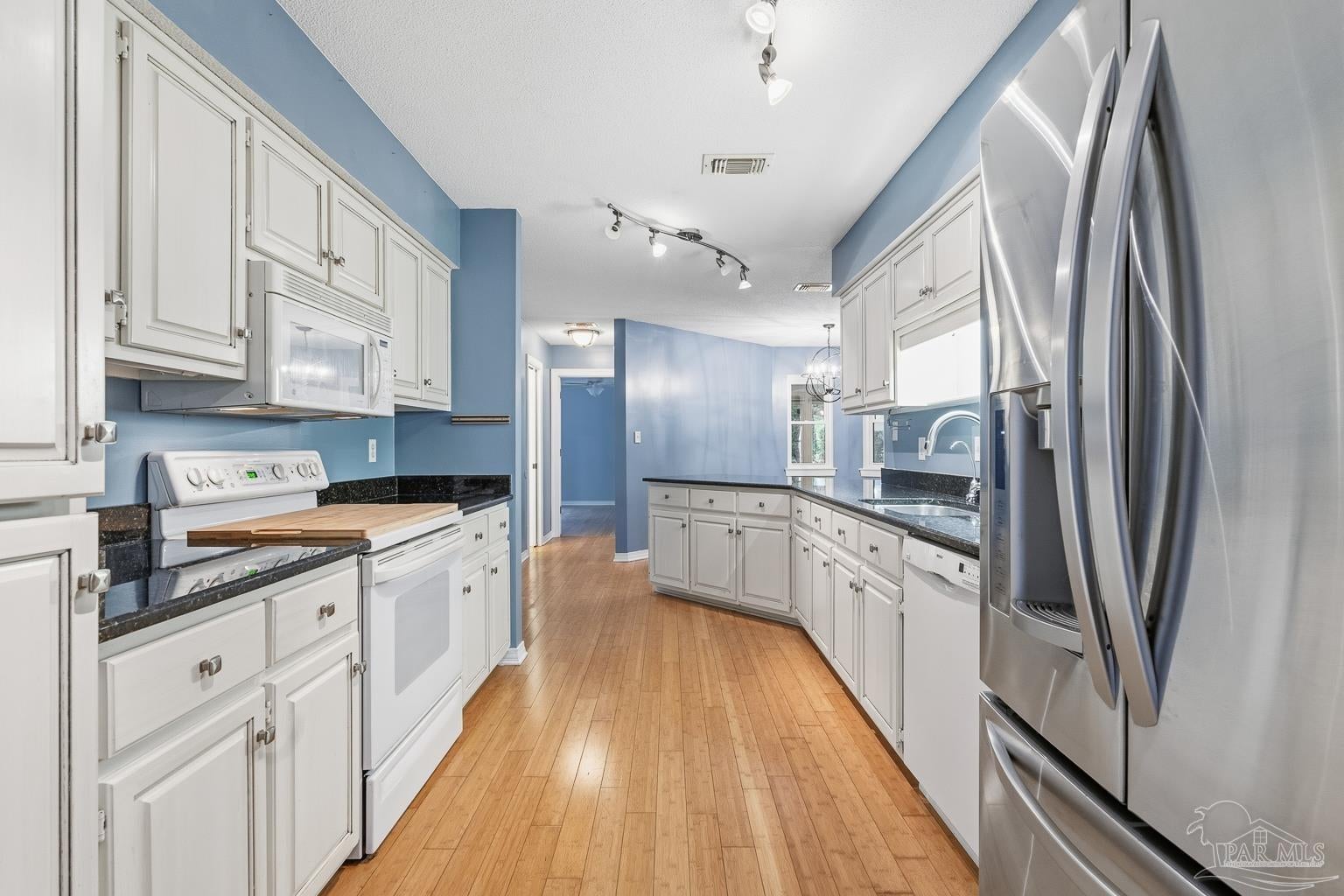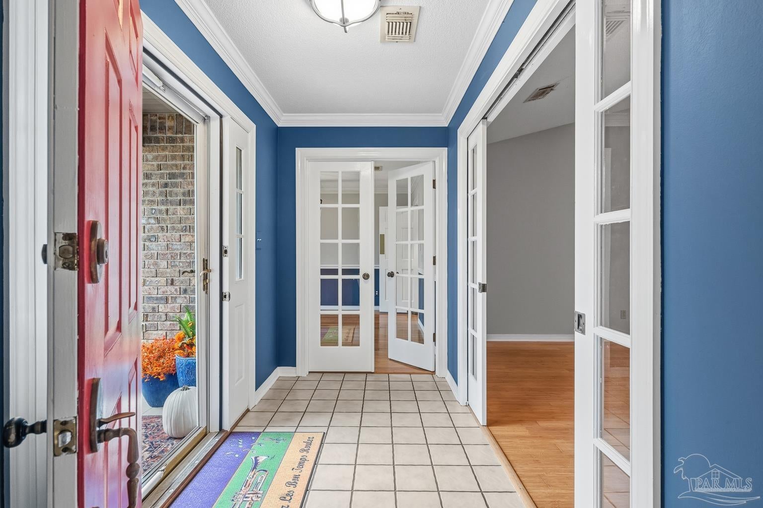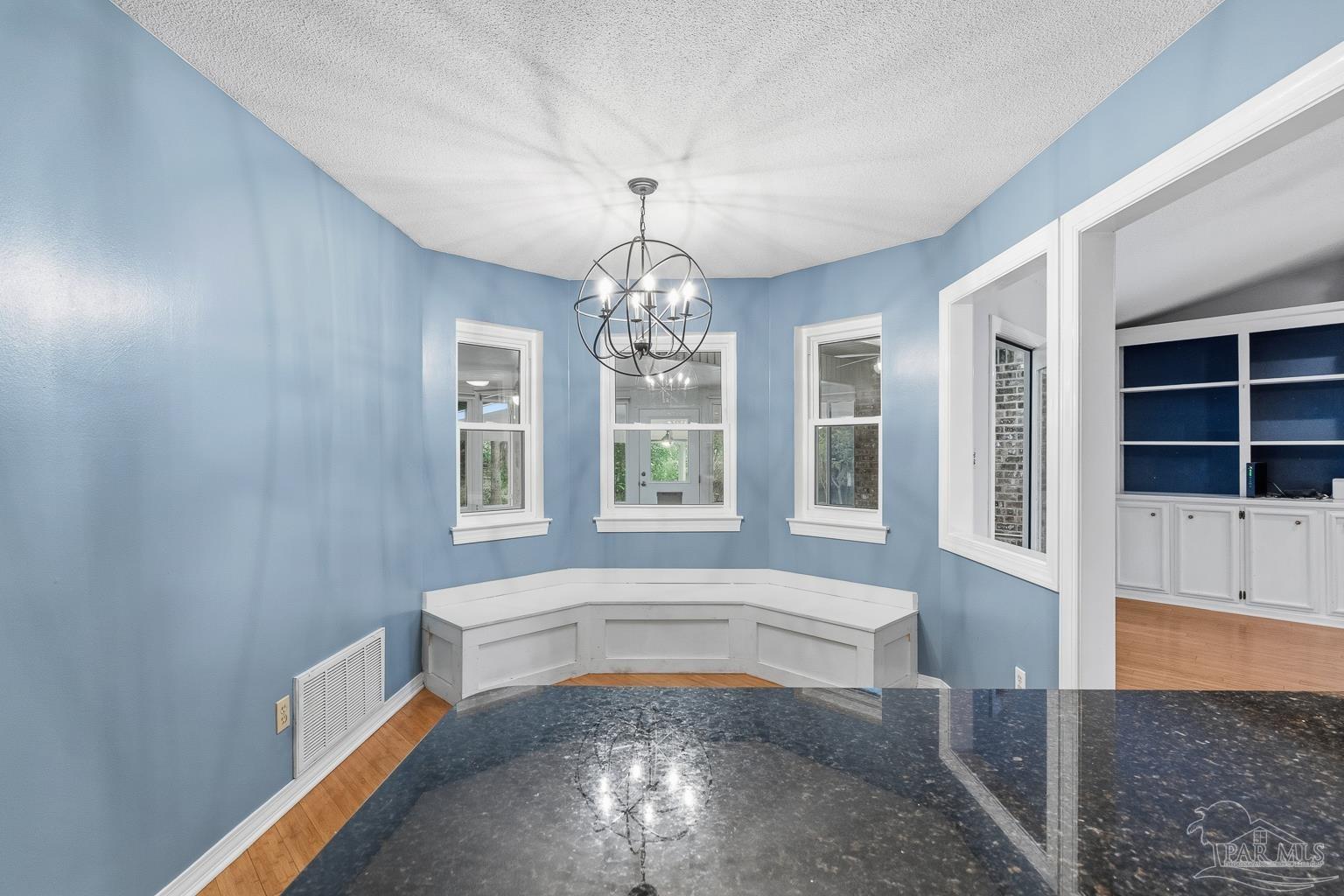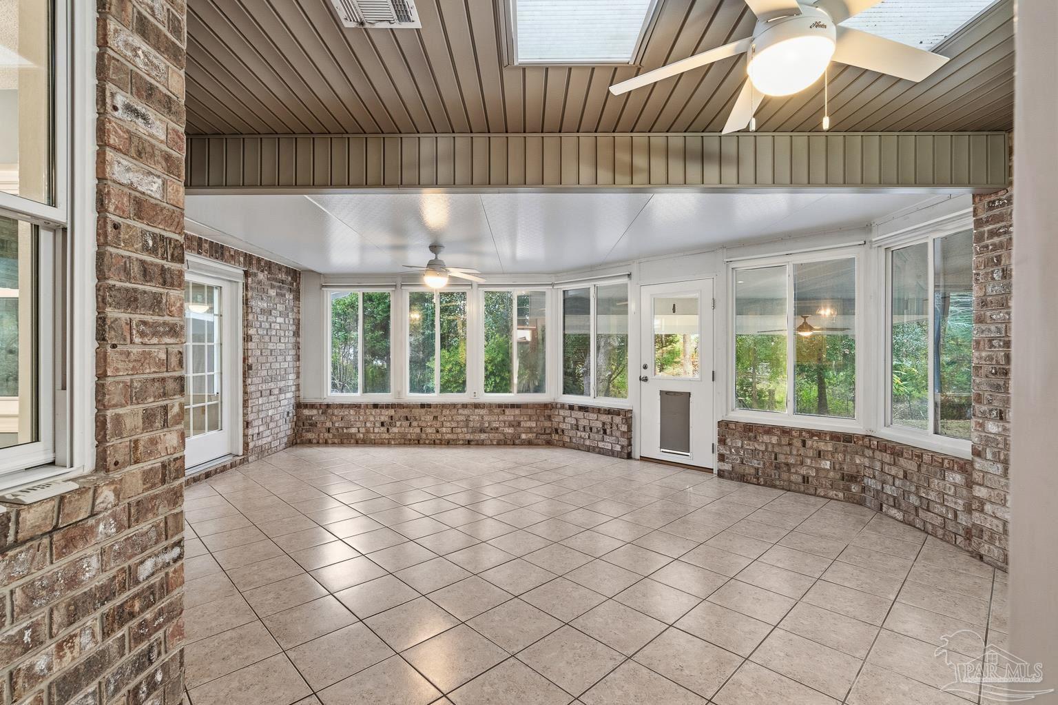 **OPEN HOUSE, SATURDAY, DECEMBER 6, 1:00 PM- 3:00 PM ** This well-maintained, 2,300 sq ft home offers 4 bedrooms and 2.5 baths, perfectly situated on a serene, small lake in Tiger Point. The true highlight is the superb enclosed sunroom, seamlessly integrated with the main HVAC system, featuring brilliant skylights for year-round comfort and enjoyment. Step outside to the peaceful, covered patio for serene outdoor living. Inside, the chef's kitchen boasts spacious granite countertops and a charming breakfast nook with a built-in banquette. The split floor plan showcases elegant bamboo and tile flooring throughout the main areas, with carpeting in the bedrooms. The inviting living room features an electric fireplace flanked by custom built-in shelving. Enjoy peace of mind with a new roof, new water heater, and fresh interior paint. All of this is located just minutes from shopping, restaurants, and the Tiger Point Country Club.