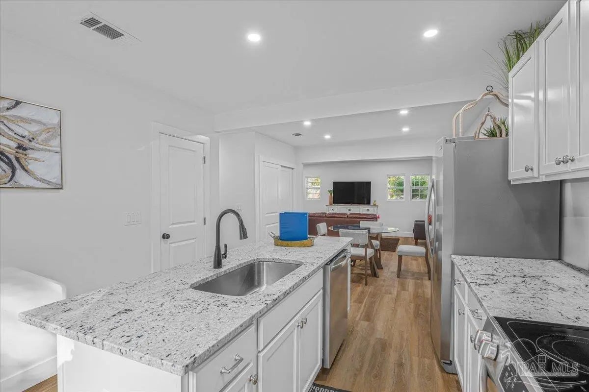 Amazing New Price! Welcome to this fully remodeled 4-bedroom, 3-bath home—centrally located in the Prime of Pensacola, redesigned top to bottom for modern living. Every major component has been updated: NEW ROOF, new HVAC, brand-new electrical, plumbing, trim, doors, and high-end finishes throughout. Low maintenance for years to come. With an endless opportunity for use, this one stands out and has it all! Perfectly tucked between Cordova Park and Downtown Pensacola, with dining, shopping, hospitals, Pensacola Airport, and Pensacola Beach all within quick access. Inside, the split floor plan offers an open, comfortable flow with professional designer colors, recessed lighting, and brand-new LVP flooring throughout. The home feels good from the moment you walk in. The chef’s kitchen has been completely updated with GRANITE countertops, Stainless Steel Appliances, beautiful new cabinetry, large island, and an open connection to the dining area—ideal for daily living or hosting. All bedrooms have been upgraded with stylish, lighted ceiling fans and new hardware, while all three full baths have been fully remodeled with tile showers, tile backsplash, quartz vanities, new fixtures, new mirrors, and chic lighting that elevates the entire space. A circular driveway plus a long carport provide generous parking for family or guests with quick in and out accessibility. Out back, you’ll find a nice-sized yard that’s fully privacy fenced, making it perfect for kids, pets, and outdoor fun. The back deck offers a great spot for grilling or relaxing in your own private space. Homes with this level of craftsmanship and value rarely hit the market. Schedule your private showing today and experience the difference.