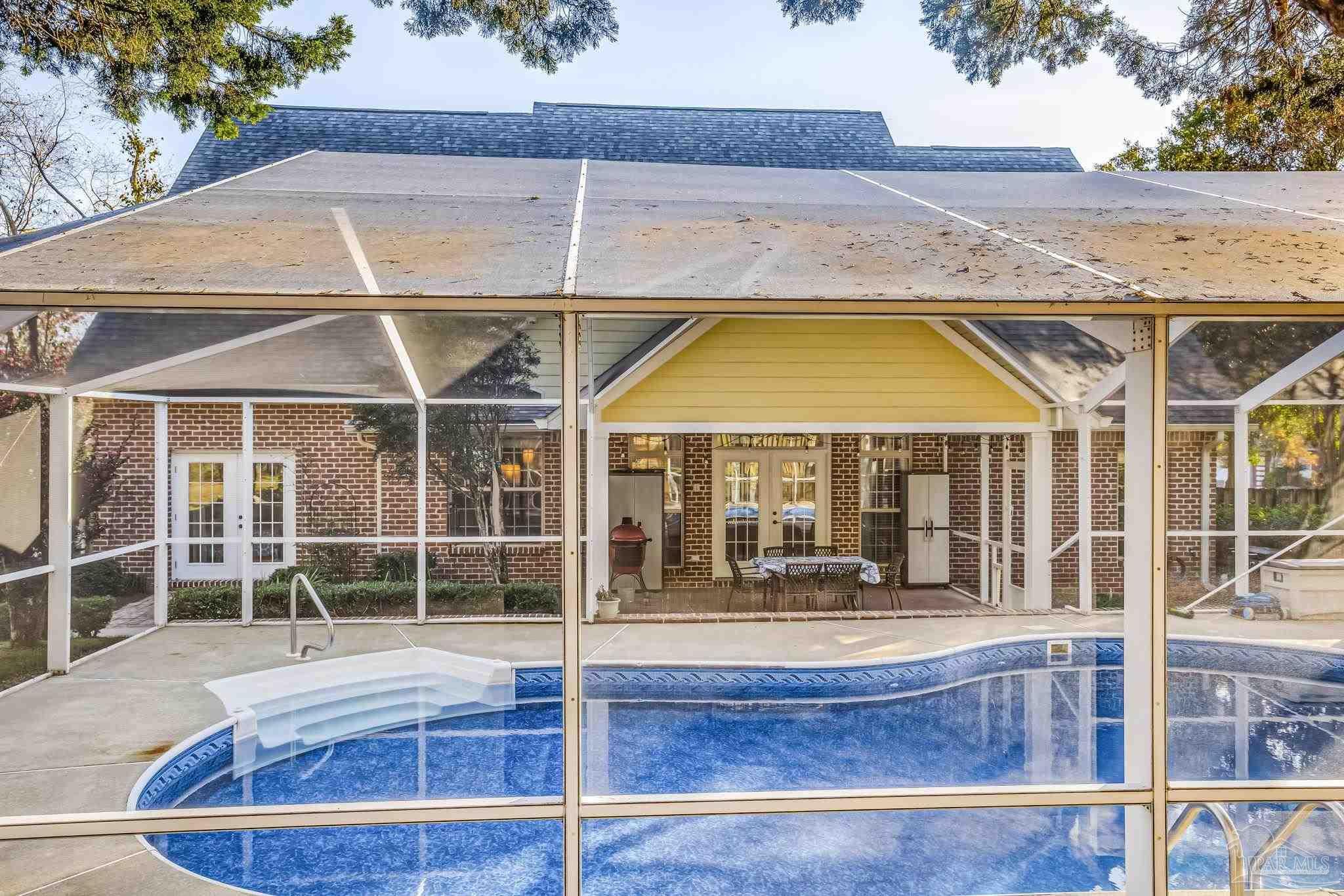 Welcome to this stunning KW Homes custom-built residence in the sought-after Brookside Hills subdivision. Designed with both comfort and functionality in mind, this 4-bedroom, 3-bathroom home showcases exceptional craftsmanship, including crown moulding upstairs and downstairs, 10' ceilings on the main level, and 9' ceilings upstairs. The main level features a spacious primary suite, along with a guest bedroom and full bathroom, offering convenience for guests or multigenerational living. Entering from the double-car garage, a thoughtful mudroom provides backpack hooks, shoe storage, a craft area, and easy access to the butler’s pantry. The separate laundry room, complete with a sink, adds practicality and convenience. A dedicated office with built-in bookcases creates an ideal workspace. Upstairs, you’ll find two additional bedrooms, a full bathroom, and a generously sized bonus room above the garage—perfect for a playroom, media room, or hobby space. With four attic access points, the home offers exceptional additional storage opportunities. Outdoor living shines with a beautiful inground saltwater pool featuring a new vinyl liner and a covered pool area for extended seasonal enjoyment. A covered patio overlooks the pool and the spacious backyard, making it an excellent setting for entertaining and everyday relaxation. Fine details such as the mosaic tile inlay in the foyer highlight the home’s custom craftsmanship and timeless appeal. This exceptional home offers space, style, and a fantastic outdoor oasis—perfectly situated in a welcoming neighborhood.