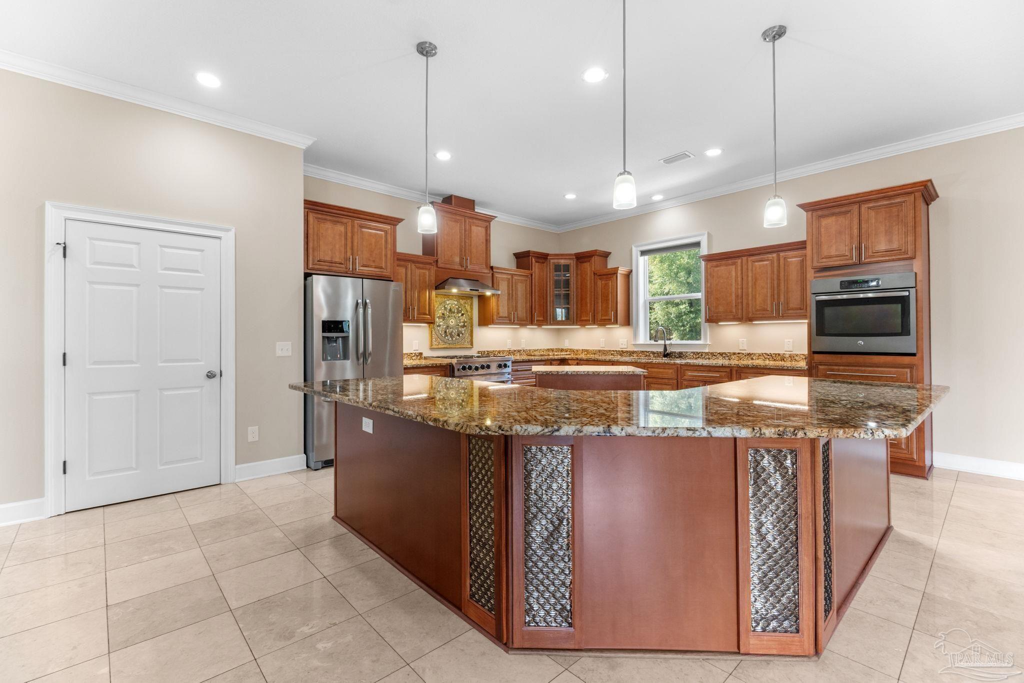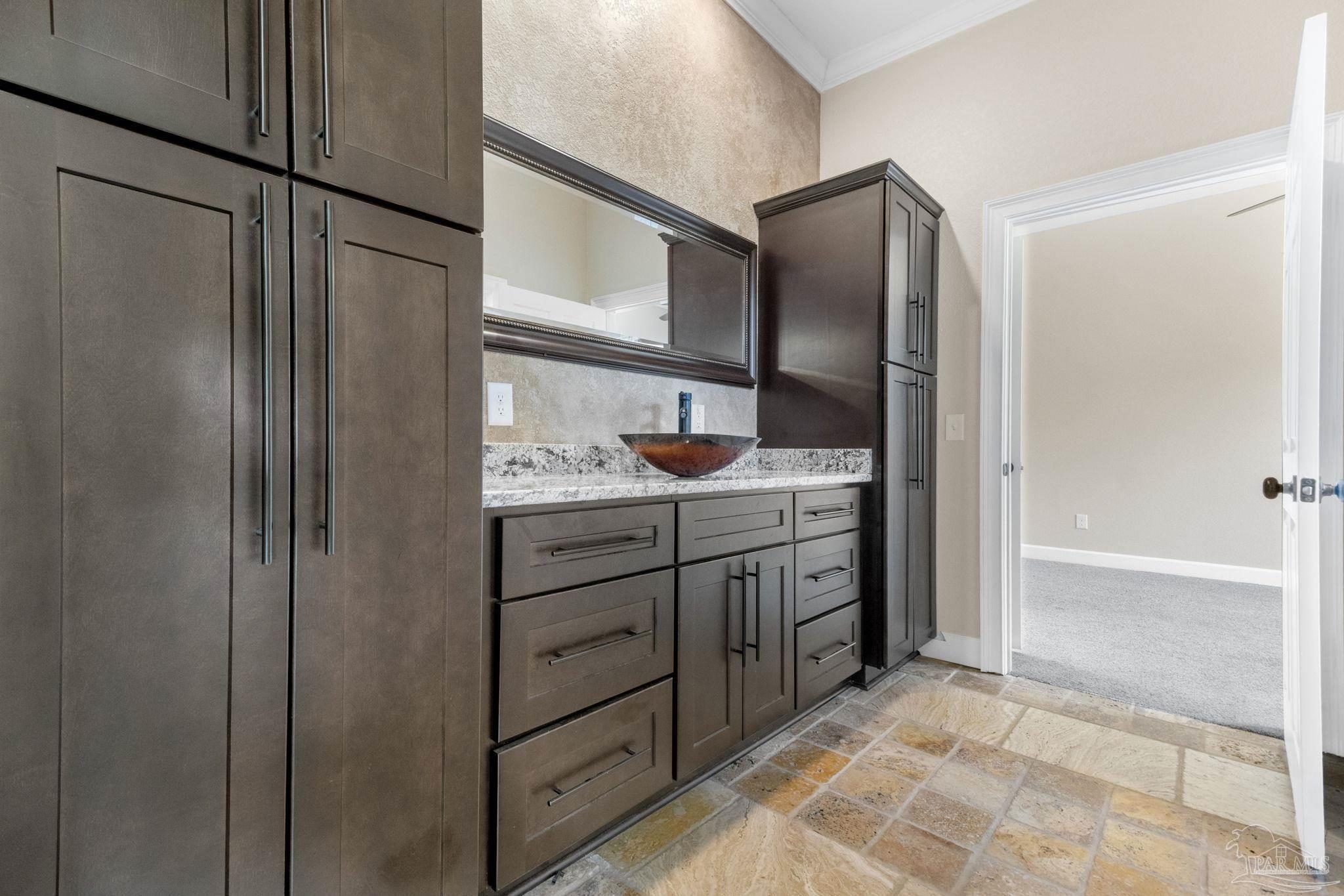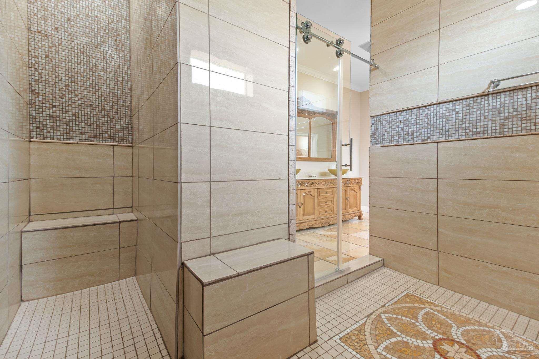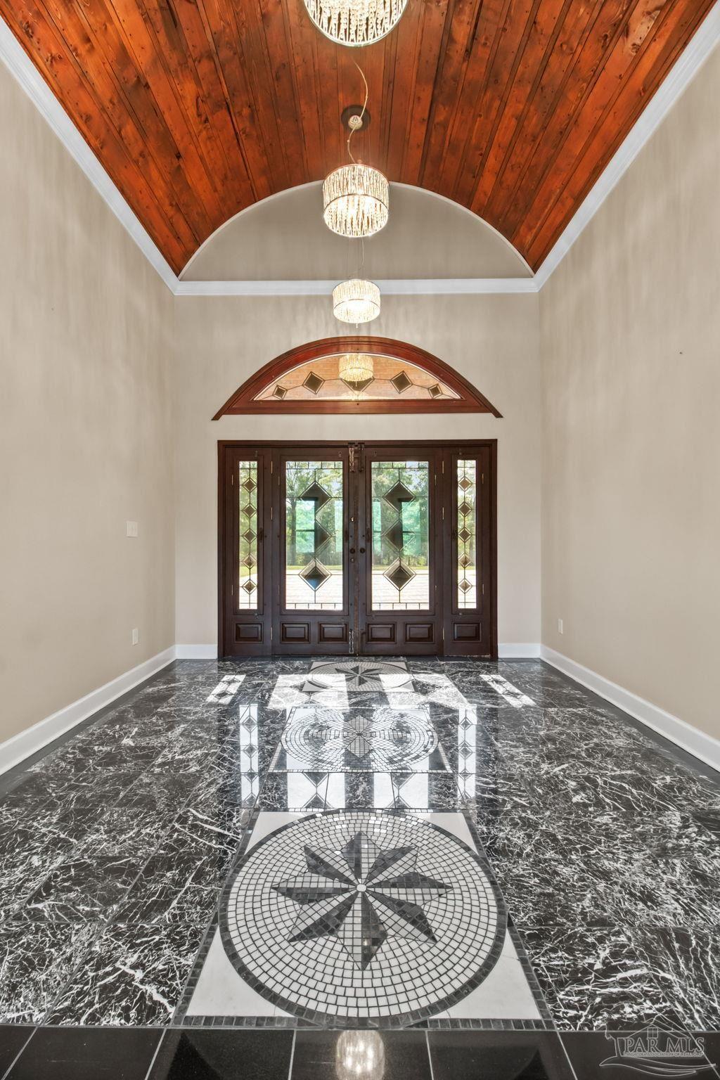 Discover refined living on this over-five-acre estate, featuring two residences and a private-entry guest cottage/studio ideal for extended stays, multi-generational living, or creative use. A travertine and sandstone courtyard welcomes you to the primary 4,499-sq-ft home, introduced by a hand-crafted, double front door. Inside, a grand foyer sets the tone with a custom barrel ceiling, mosaic tile, and crystal chandeliers. Marble floors and wood columns lead to an elegant formal living room with a coffered ceiling and wood-framed bay windows. The formal dining room features engineered wood flooring, a tray ceiling, and 6" crown molding. The main gourmet kitchen is a chef’s dream with soft-close maple cabinetry, exotic Bengal granite, an island, recessed and pendant lighting, and a lighted eat-in breakfast bar. A Blue Star gas range and double ovens complete the space. Hallways span four feet wide, trimmed in crown molding with detailed door and window casings. The expansive primary suite is a retreat of its own, complete with its own private kitchen, sitting area, office, and oversized walk-in closet. The luxurious bath showcases an 8-person custom travertine shower with mosaic inlay, dual benches, rain and jet heads, and back-lit onyx. A stainless steel clawfoot tub, waterfall faucet, and Turkish bowl vanities add spa-level elegance. Connected by a breezeway, the 24x24 guest cottage/studio includes its own entrance, travertine and carpet flooring, washer/dryer hookup, stainless stove, granite surfaces, and a bath with marble shower, single vanity, and closet. The second residence—a charming 1,566-sq-ft, 3-bed/2-bath home—offers brick flooring, a formal dining room with brick accents, a full kitchen with hickory cabinetry and marble countertops, and a generous utility closet. With so much this exceptional property has to offer, one must simply see it to believe it. Opportunities like this are rare. Claim your private viewing of this remarkable estate today.