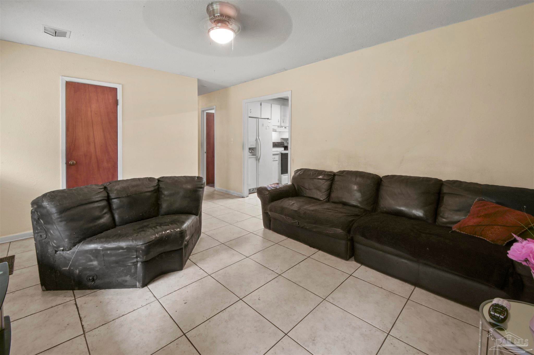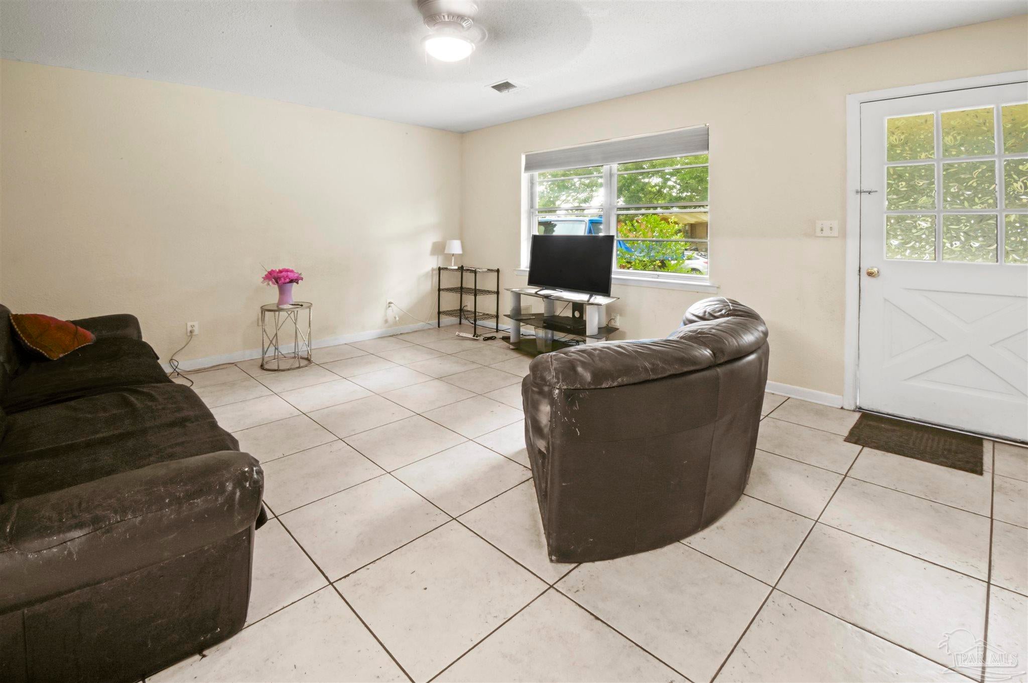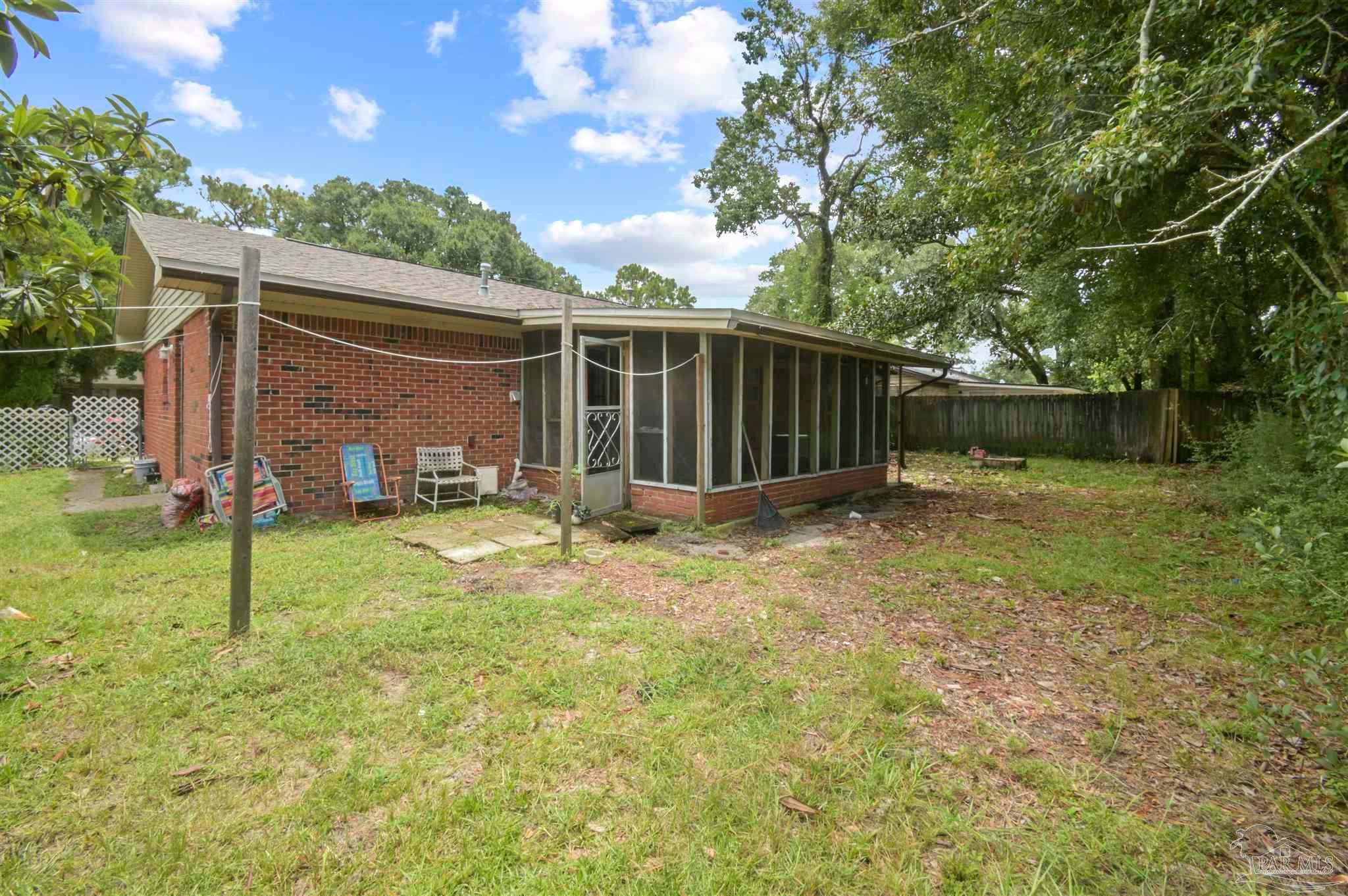 DIAMOND IN THE ROUGH! 3 bed/2 bath brick home WITH A GARAGE - perfect for investors to fix and flip, or for a handy homeowner to have instant equity. Big ticket items are taken care of - Roof 2023, Water Heater 2018, and HVAC 2019 - cosmetic work only! Don't let the size fool you, this home makes perfect use of every square foot! Stepping inside you are immediately welcomed to the living room, perfectly sized for large families or entertaining guests. Continuing on to the kitchen there's an abundance of storage and room for a dining table overlooking the screened patio. Notice Tile/LVP flooring - NO CARPET THROUGHOUT! The two guest bedrooms can both accommodate a queen bed and share a bathroom in the hallway with an updated vanity. The master bedroom can fit a king bed and has a private en-suite bathroom with a walk-in shower. The crown jewel of this property is the SCREENED PATIO, perfect for enjoying a cup of coffee in the morning without the famous Florida wildlife bothering you! The spacious yard is fully fenced and perfect for whatever projects you have in mind. The Corrydale neighborhood is very popular being located directly next door to Naval Hospital Pensacola and within close proximity to downtown and the sugar white beaches of Perdido Key and Pensacola Beach.