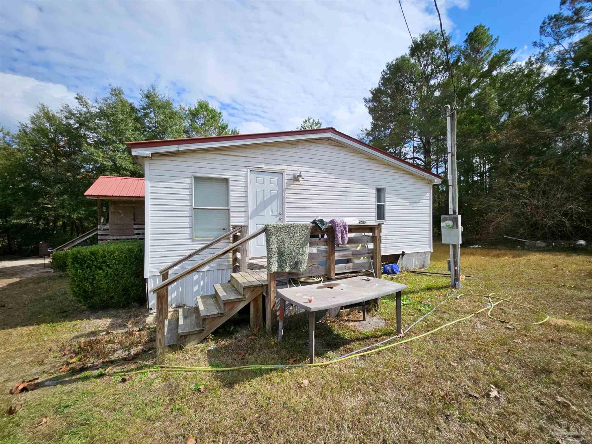 CALLING ALL INVESTORS! 3 bedroom, 2 bath manufactured home on 0.22 acre lot in DeFuniak Springs. Diamond in the rough just waiting for you to make it shine. Home has a great split bedroom layout with open concept living/kitchen/dining and luxury vinyl plank flooring throughout. Kitchen has been updated with white cabinets, newer laminate countertops, and stainless steel appliances. Large walk-in laundry room off kitchen has access to side porch and backyard. Primary bedroom has spacious en-suite bath with double vanity and newer tub/shower combo. 0.22 acre lot is mostly cleared with plenty of space in both front and back yard. This property is distressed and in need of some TLC, but would make a great investment!