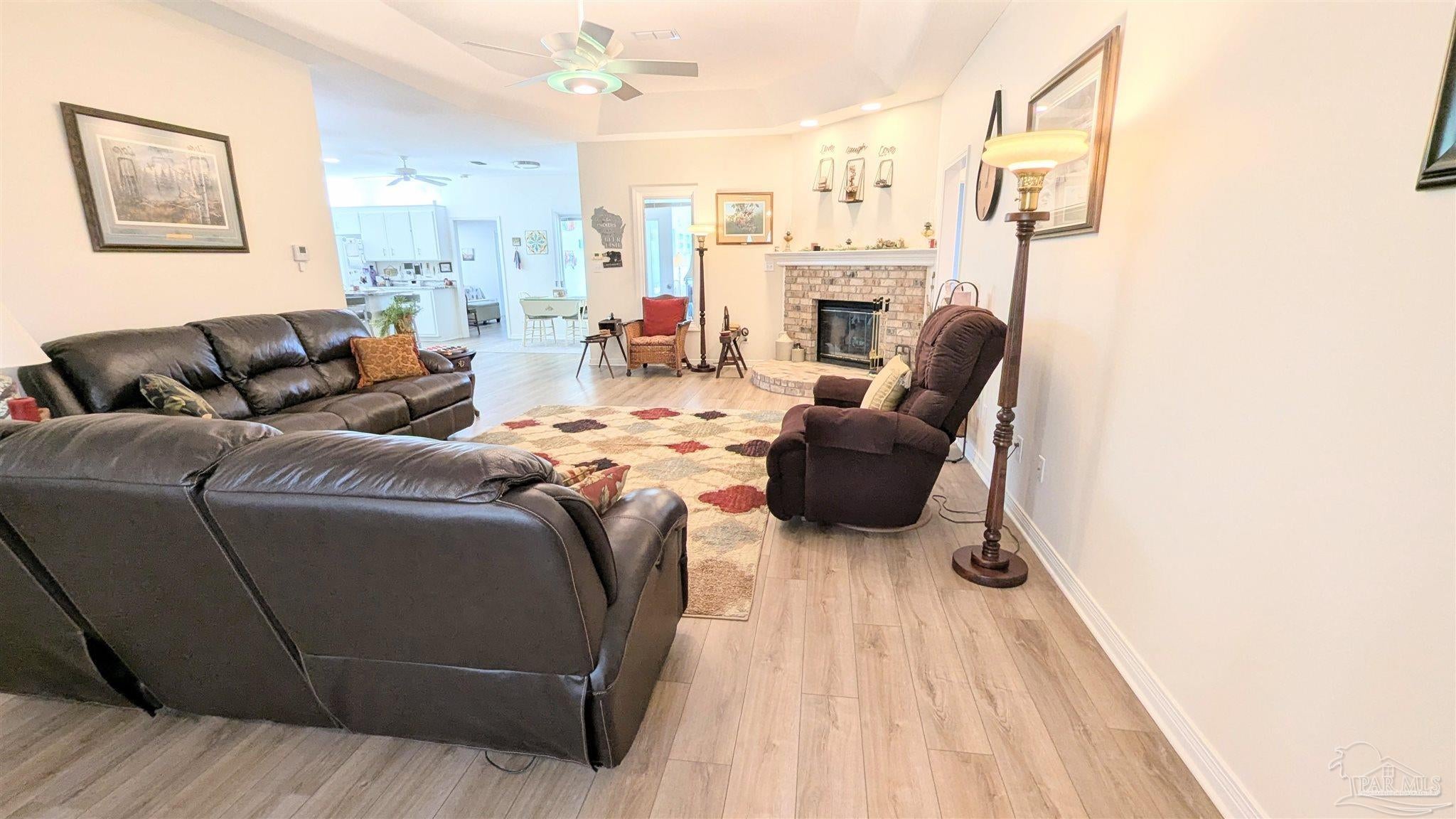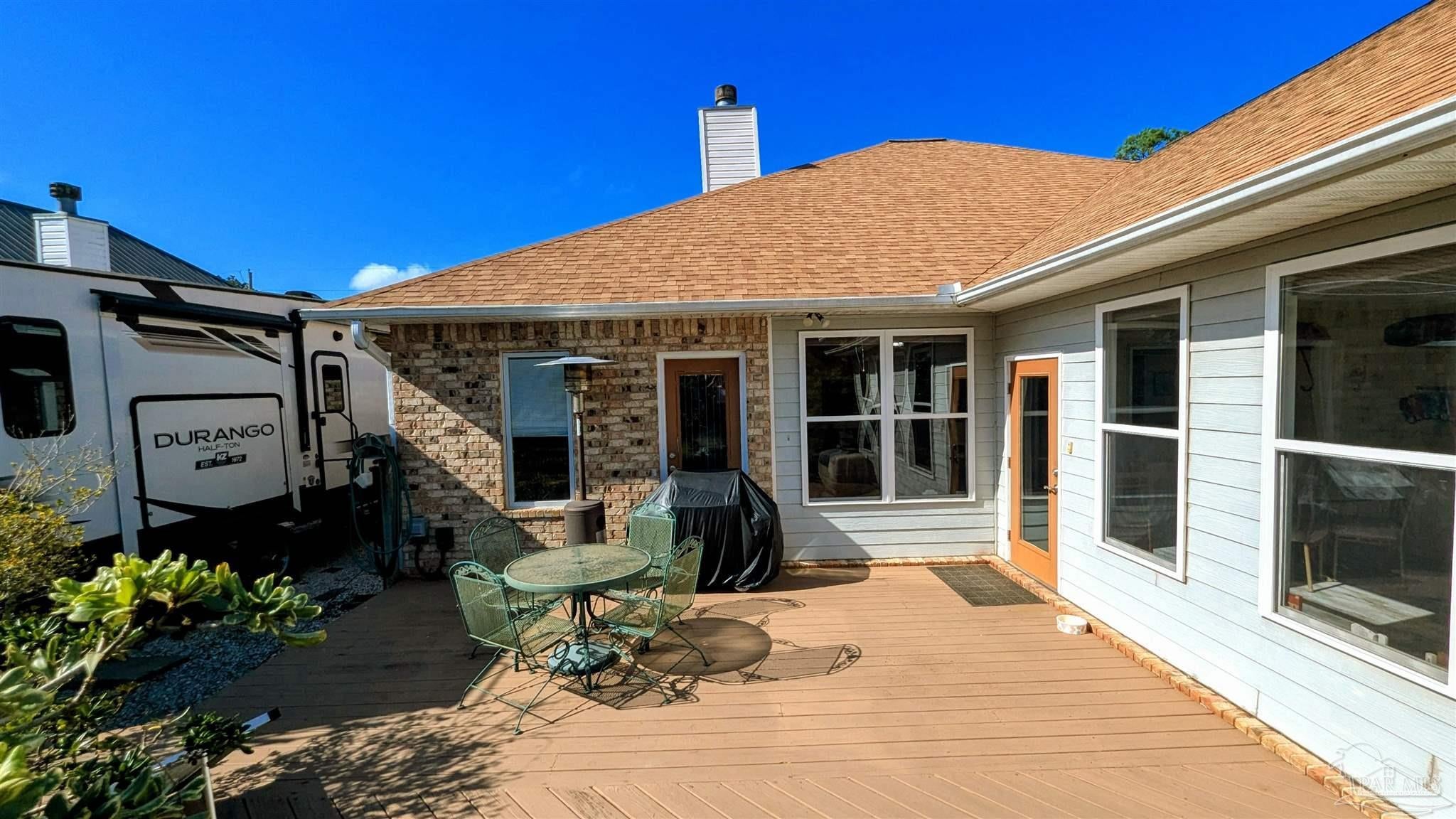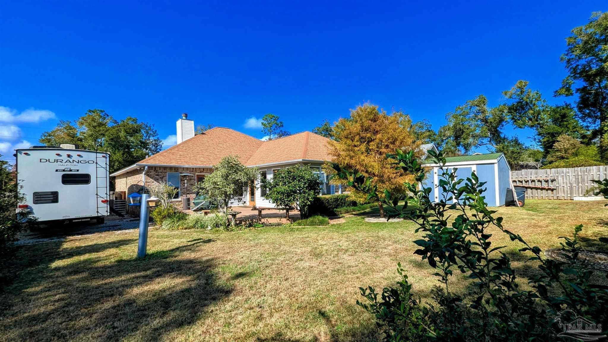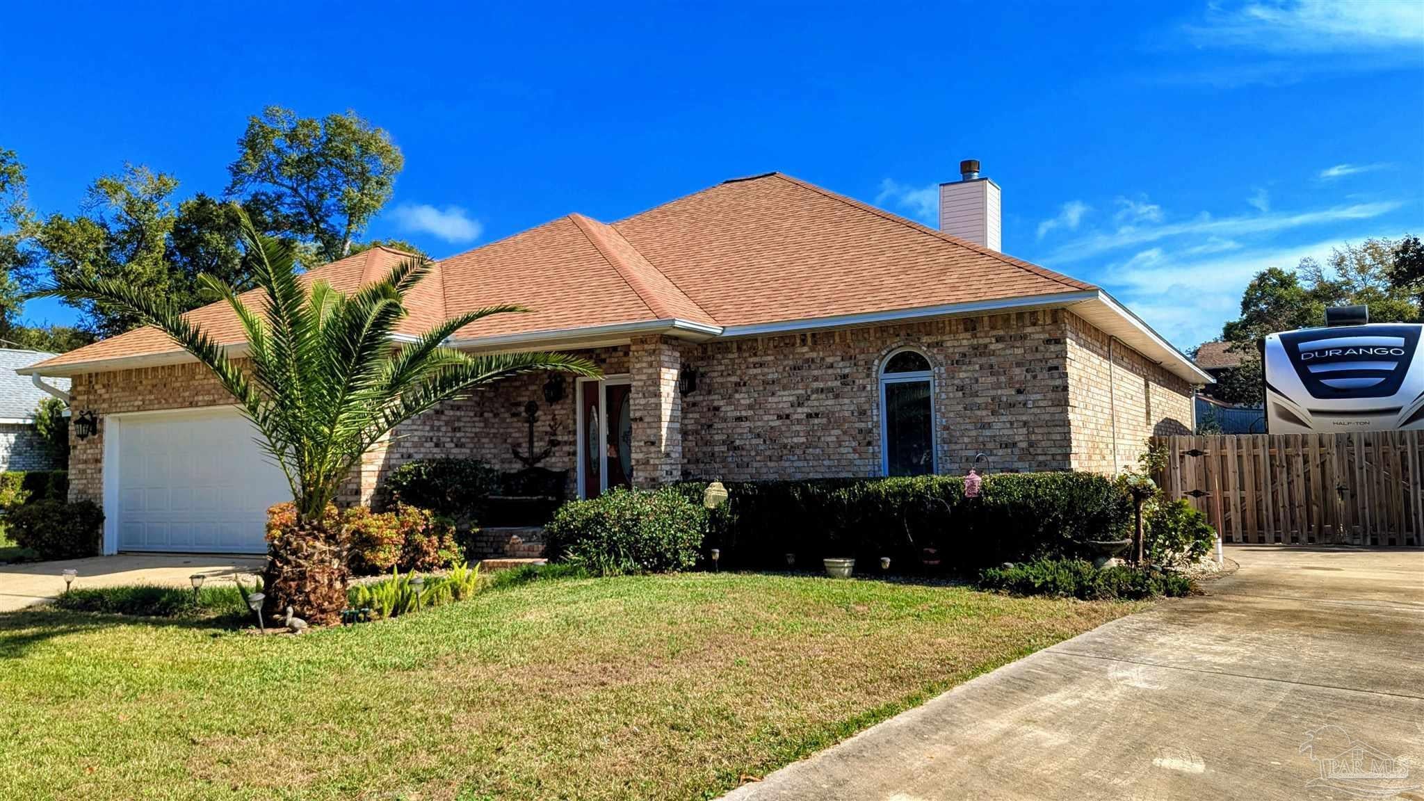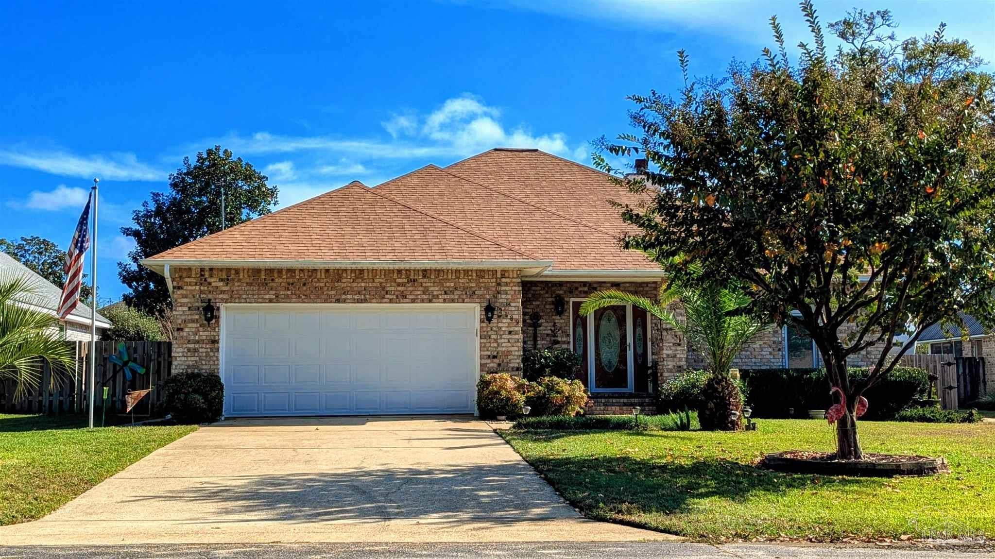 Stunning 3-bedroom, 2-bath Brick Beauty, where elegance meets excitement at every turn! The expansive open floor plan, soaring 9-ft ceilings, & luxurious vinyl flooring flows seamlessly throughout, setting the stage for a spectacular living experience. The extraordinary kitchen, features gleaming granite countertops, state-of-the-art appliances, & a magnificent center island & an abundance of exquisite cabinetry! Whether hosting special dinners or grand celebrations, the separate dining room is great for entertaining. The massive living room, highlighted by dramatic tray ceilings & a cozy wood-burning fireplace, creating a warm & inviting atmosphere. For year-round bliss, the expansive sunroom offers endless moments of relaxation while overlooking the beautiful fenced-in yard. Retreat to your oasis in the primary suite, complete with an opulent ensuite bath featuring a double sink vanity, lavish granite countertops, a spa-like tiled walk-in shower, & a colossal walk-in closet. Two additional spacious bedrooms & a stylish second full bath enhance this extraordinary residence. You'll say "WOW!" the moment you walk in the door! The excitement continues outdoors! Entertain on the expansive back deck, where you can enjoy the vibrant foliage, all effortlessly maintained by your own irrigation well. Need extra outdoor space & RV parking? We've got that too with the 12x10 shed/workshop AND a 50-amp RV hookup!! Living in the Spanish Cove subdivision means activities are right at your fingertips! This vibrant golf cart community offers 24-hour security, an outdoor pool overlooking Perdido Bay, a clubhouse, bay access, a fishing pier, beach area, & tennis/pickleball courts! Plus, you’re just minutes from a public boat launch, the stunning Gulf beaches, & a variety of shopping & dining!! Don’t miss your chance to claim this remarkable home—it’s more than just a house; it’s a lifestyle! Call to schedule your showing TODAY! Buyer to verify all information during due diligence.