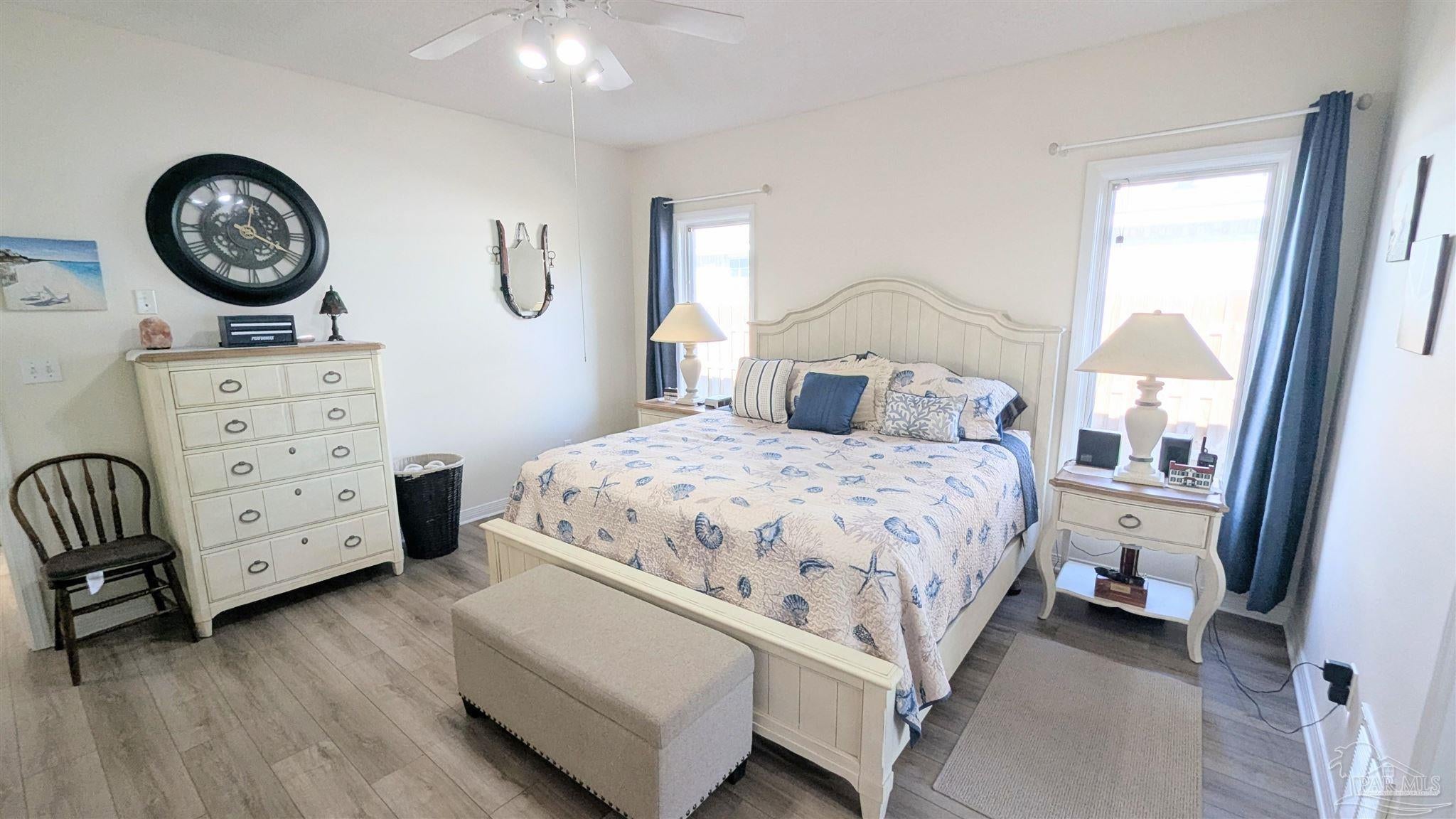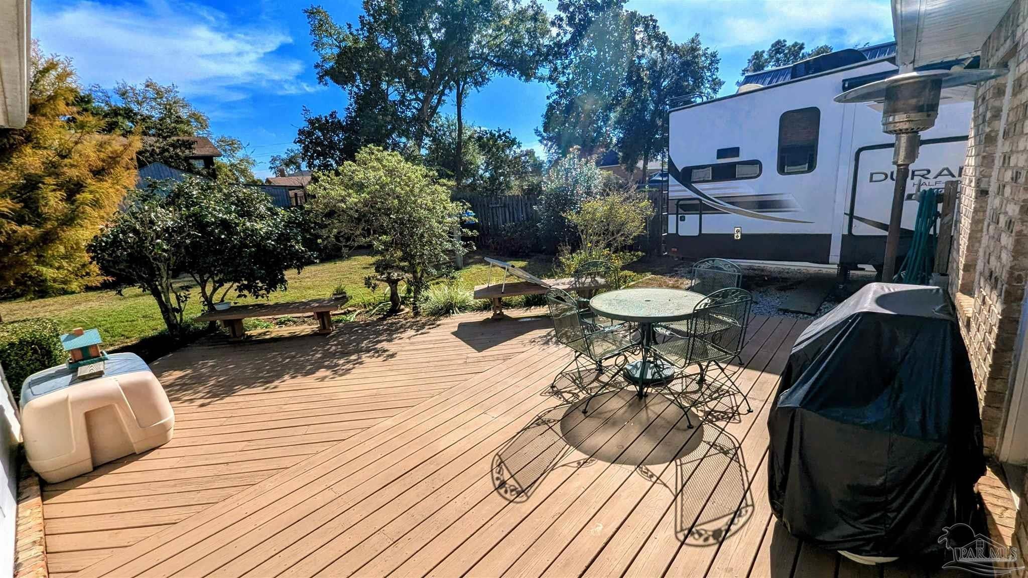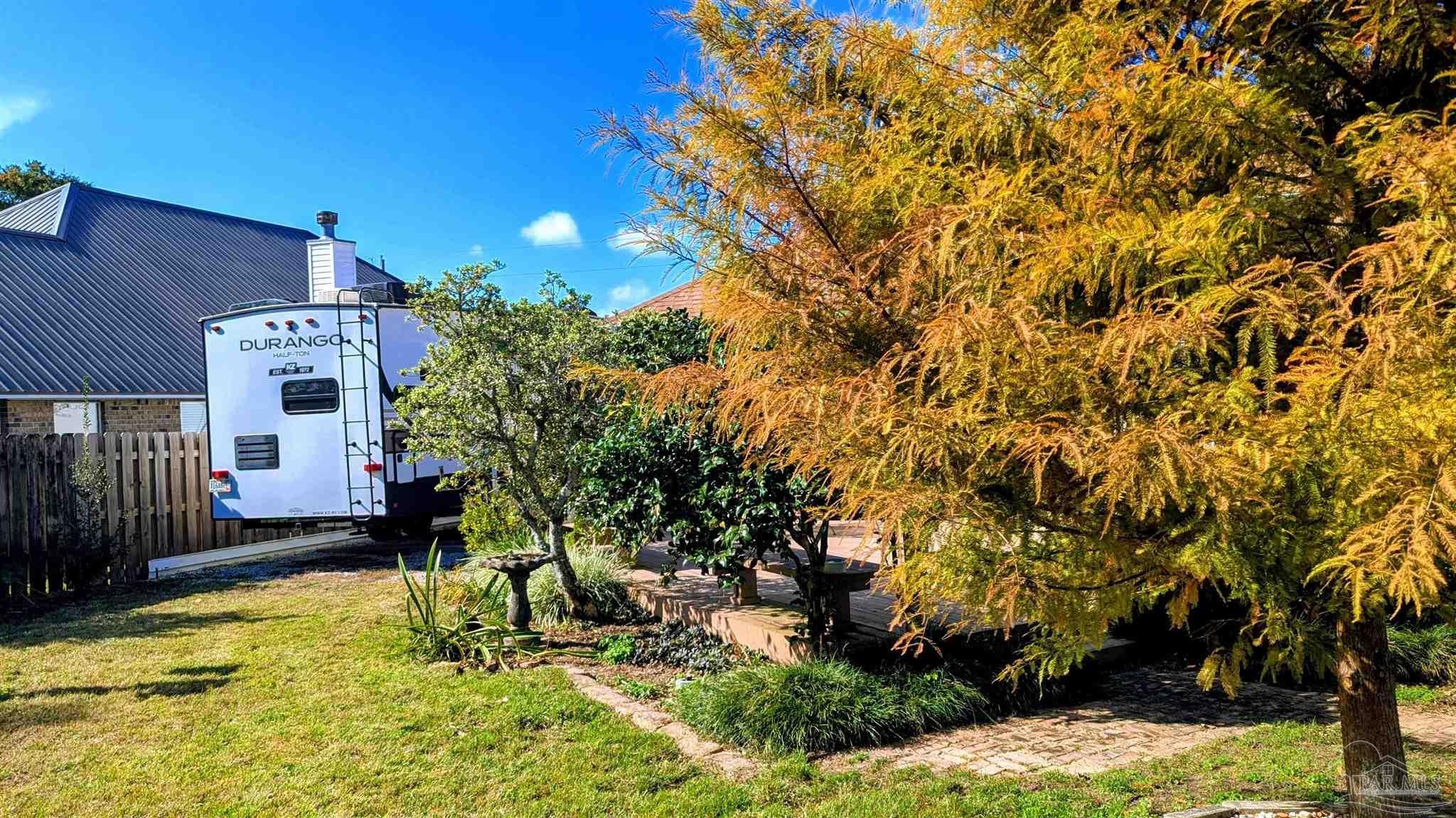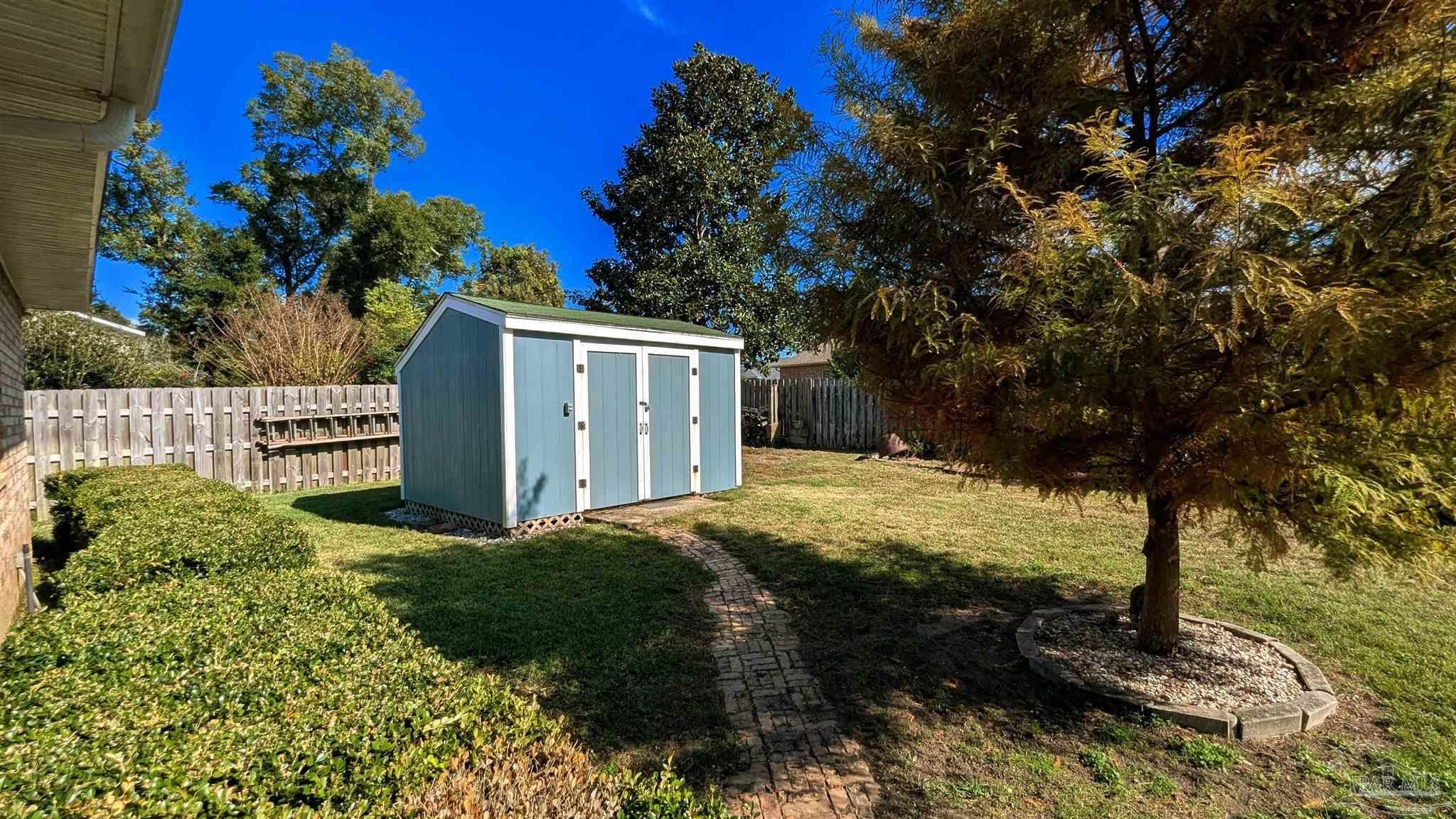 Stunning 3-bedroom, 2-bath Brick Beauty, where elegance meets excitement at every turn! The expansive open floor plan, soaring 9-ft ceilings, & luxurious vinyl flooring flows seamlessly throughout, setting the stage for a spectacular living experience. The extraordinary kitchen, features gleaming granite countertops, state-of-the-art appliances, & a magnificent center island & an abundance of exquisite cabinetry! Whether hosting special dinners or grand celebrations, the separate dining room is great for entertaining. The massive living room, highlighted by dramatic tray ceilings & a cozy wood-burning fireplace, creating a warm & inviting atmosphere. For year-round bliss, the expansive sunroom offers endless moments of relaxation while overlooking the beautiful fenced-in yard. Retreat to your oasis in the primary suite, complete with an opulent ensuite bath featuring a double sink vanity, lavish granite countertops, a spa-like tiled walk-in shower, & a colossal walk-in closet. Two additional spacious bedrooms & a stylish second full bath enhance this extraordinary residence. You'll say "WOW!" the moment you walk in the door! The excitement continues outdoors! Entertain on the expansive back deck, where you can enjoy the vibrant foliage, all effortlessly maintained by your own irrigation well. Need extra outdoor space & RV parking? We've got that too with the 12x10 shed/workshop AND a 50-amp RV hookup!! Living in the Spanish Cove subdivision means activities are right at your fingertips! This vibrant golf cart community offers 24-hour security, an outdoor pool overlooking Perdido Bay, a clubhouse, bay access, a fishing pier, beach area, & tennis/pickleball courts! Plus, you’re just minutes from a public boat launch, the stunning Gulf beaches, & a variety of shopping & dining!! Don’t miss your chance to claim this remarkable home—it’s more than just a house; it’s a lifestyle! Call to schedule your showing TODAY! Buyer to verify all information during due diligence.