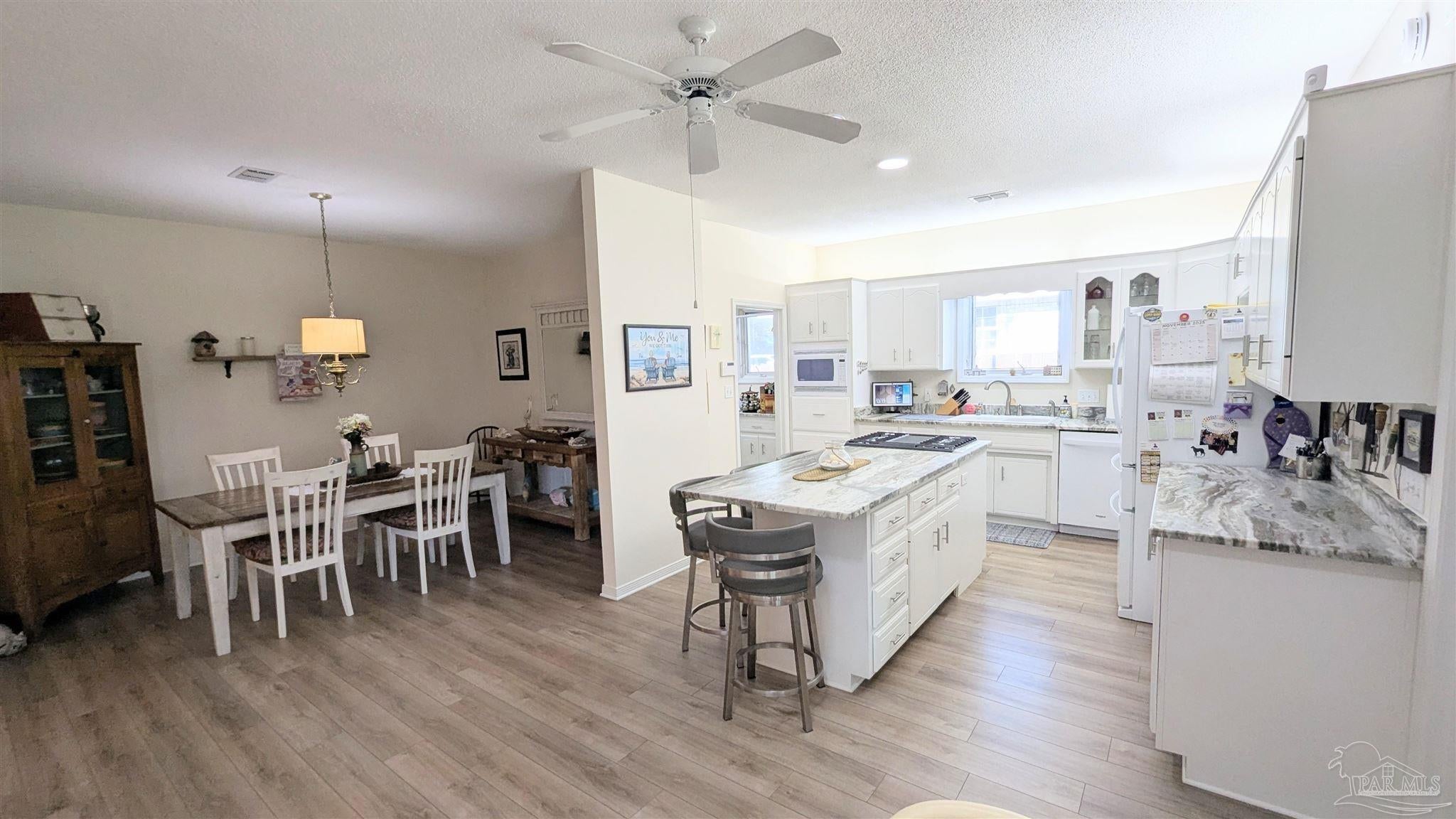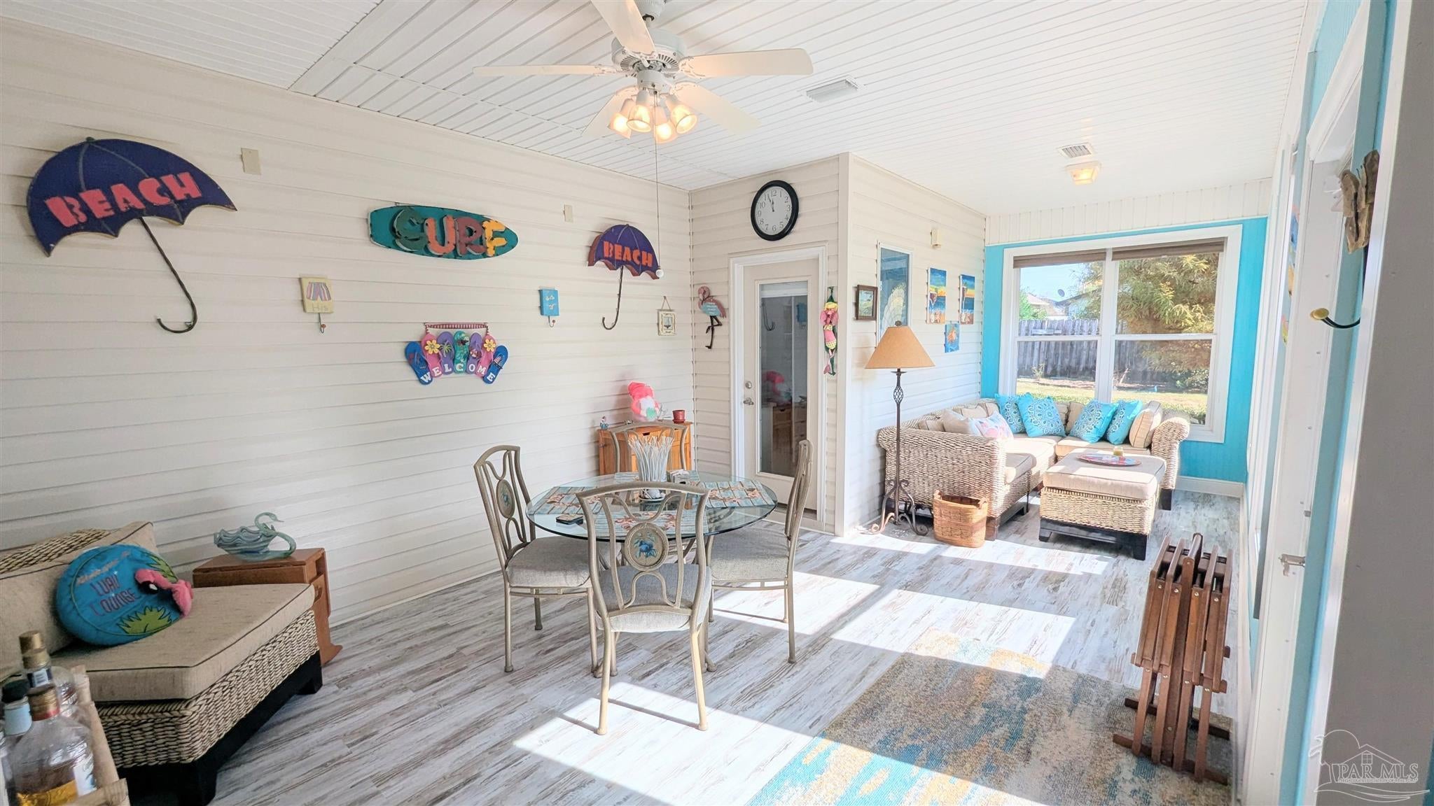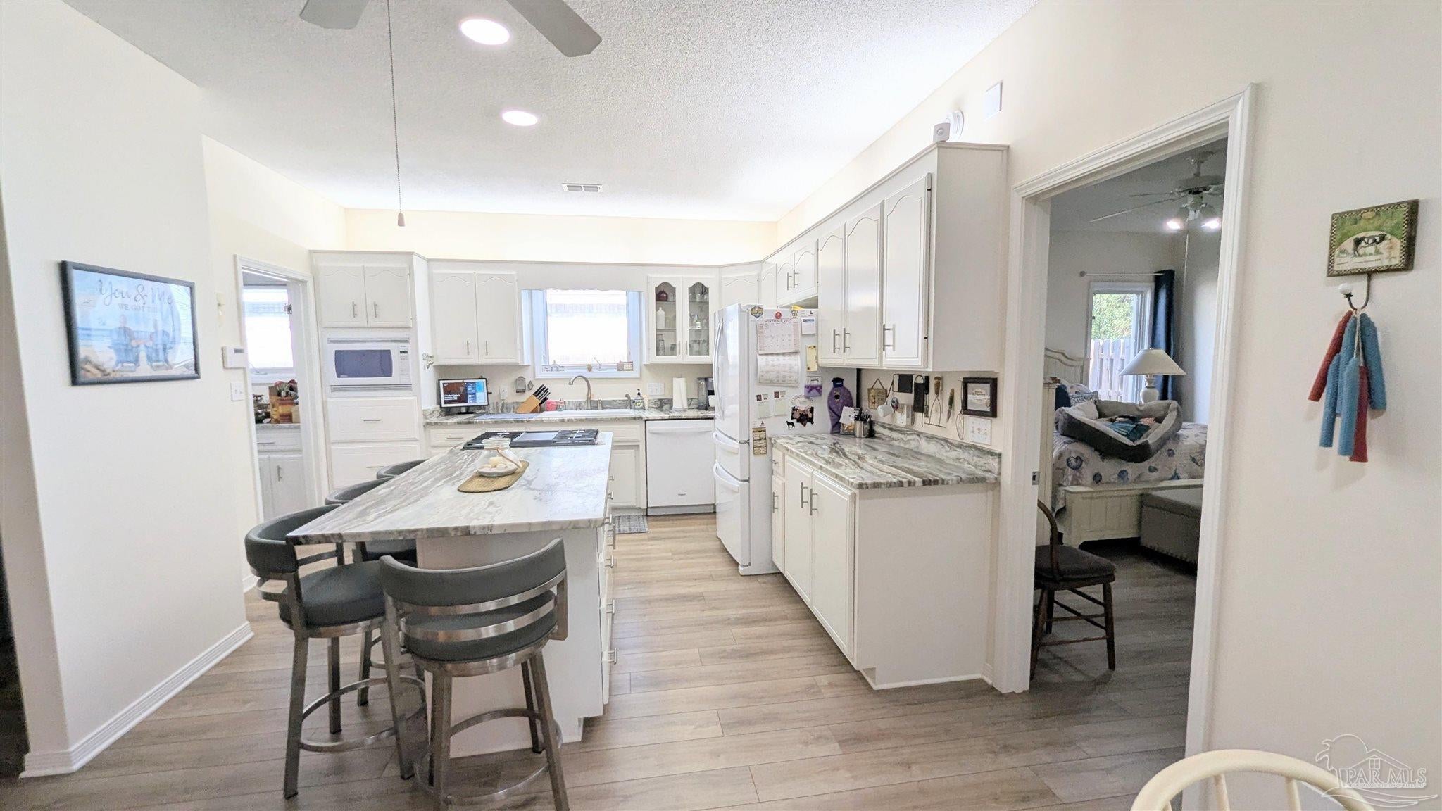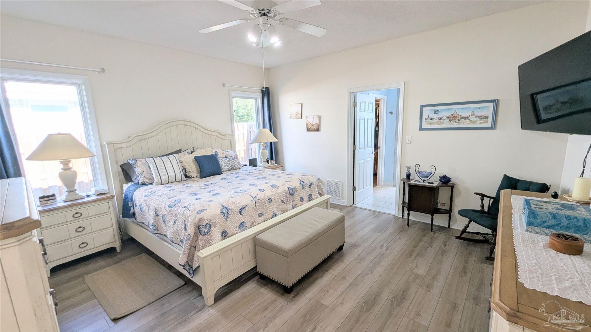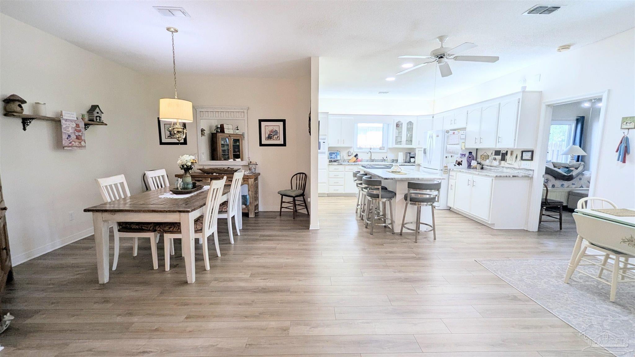 Stunning 3-bedroom, 2-bath Brick Beauty, where elegance meets excitement at every turn! The expansive open floor plan, soaring 9-ft ceilings, & luxurious vinyl flooring flows seamlessly throughout, setting the stage for a spectacular living experience. The extraordinary kitchen, features gleaming granite countertops, state-of-the-art appliances, & a magnificent center island & an abundance of exquisite cabinetry! Whether hosting special dinners or grand celebrations, the separate dining room is great for entertaining. The massive living room, highlighted by dramatic tray ceilings & a cozy wood-burning fireplace, creating a warm & inviting atmosphere. For year-round bliss, the expansive sunroom offers endless moments of relaxation while overlooking the beautiful fenced-in yard. Retreat to your oasis in the primary suite, complete with an opulent ensuite bath featuring a double sink vanity, lavish granite countertops, a spa-like tiled walk-in shower, & a colossal walk-in closet. Two additional spacious bedrooms & a stylish second full bath enhance this extraordinary residence. You'll say "WOW!" the moment you walk in the door! The excitement continues outdoors! Entertain on the expansive back deck, where you can enjoy the vibrant foliage, all effortlessly maintained by your own irrigation well. Need extra outdoor space & RV parking? We've got that too with the 12x10 shed/workshop AND a 50-amp RV hookup!! Living in the Spanish Cove subdivision means activities are right at your fingertips! This vibrant golf cart community offers 24-hour security, an outdoor pool overlooking Perdido Bay, a clubhouse, bay access, a fishing pier, beach area, & tennis/pickleball courts! Plus, you’re just minutes from a public boat launch, the stunning Gulf beaches, & a variety of shopping & dining!! Don’t miss your chance to claim this remarkable home—it’s more than just a house; it’s a lifestyle! Call to schedule your showing TODAY! Buyer to verify all information during due diligence.