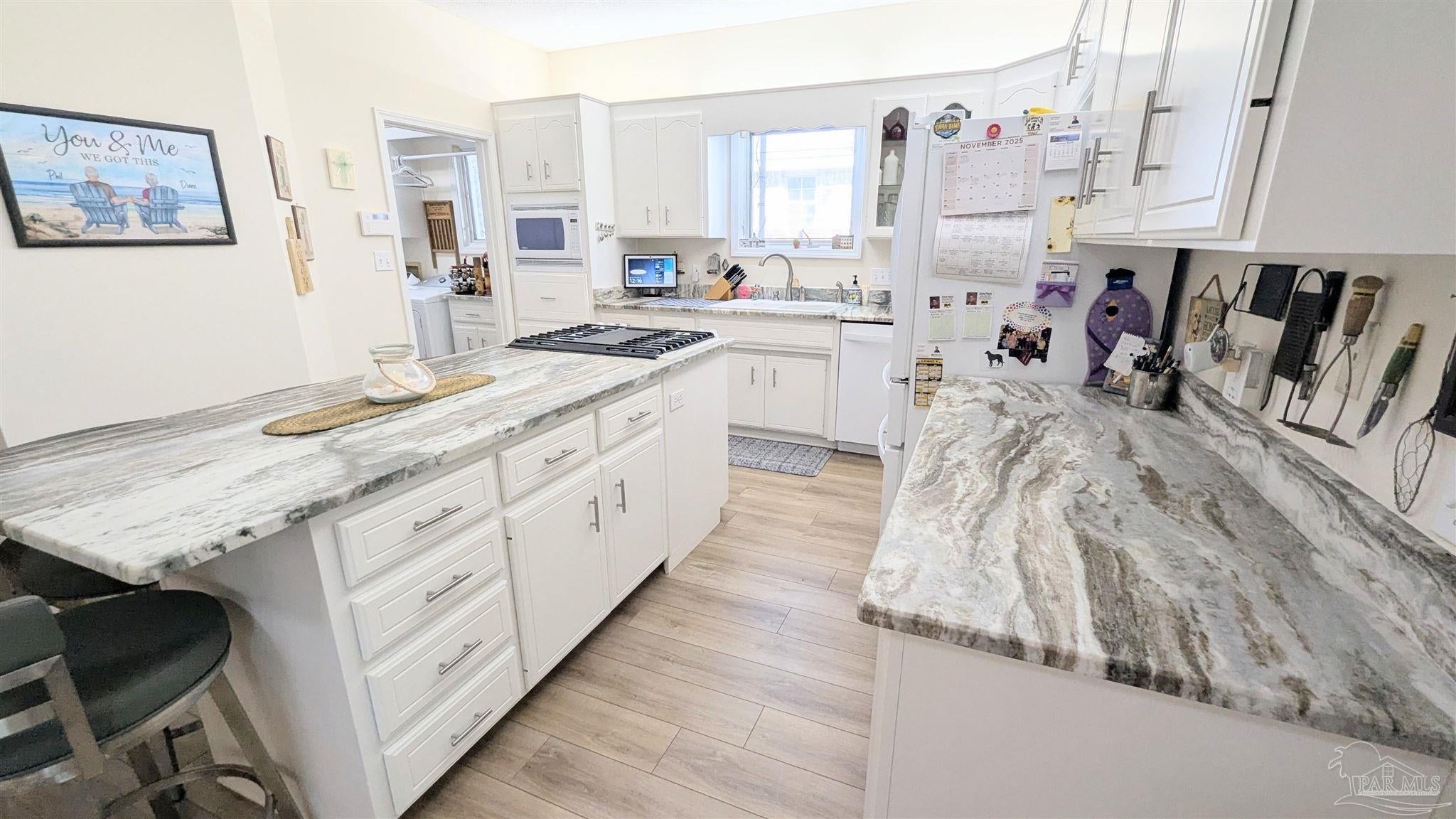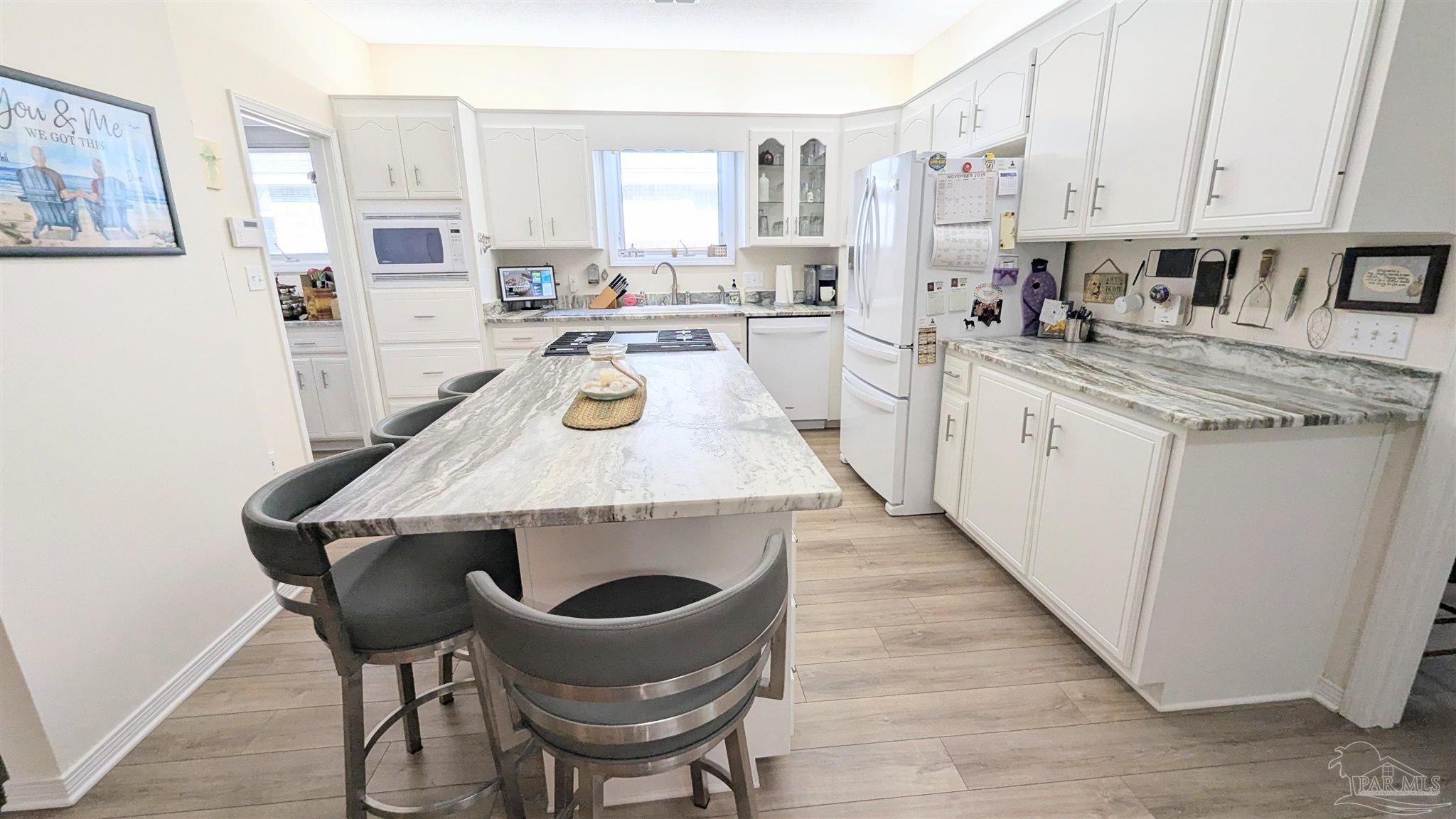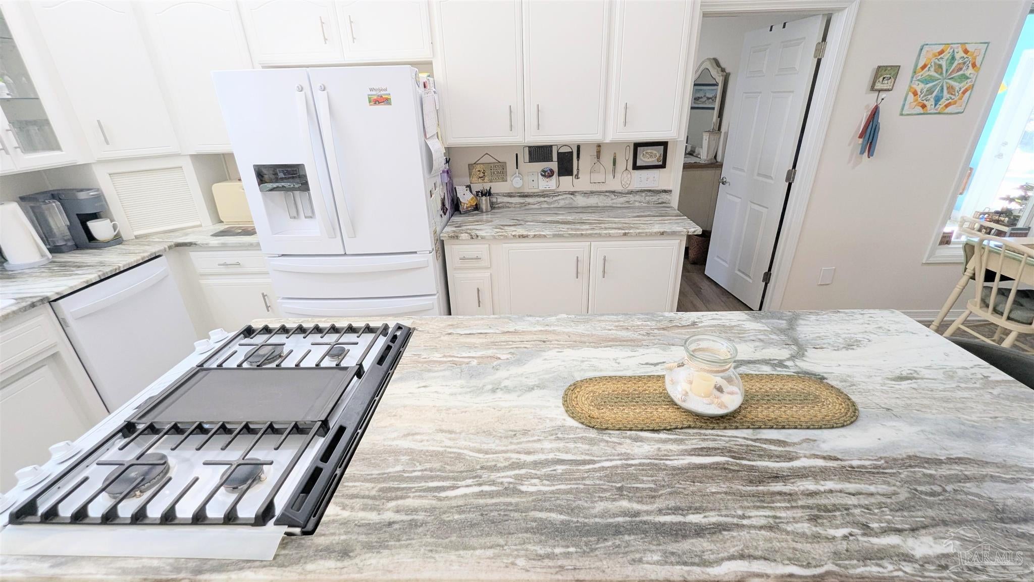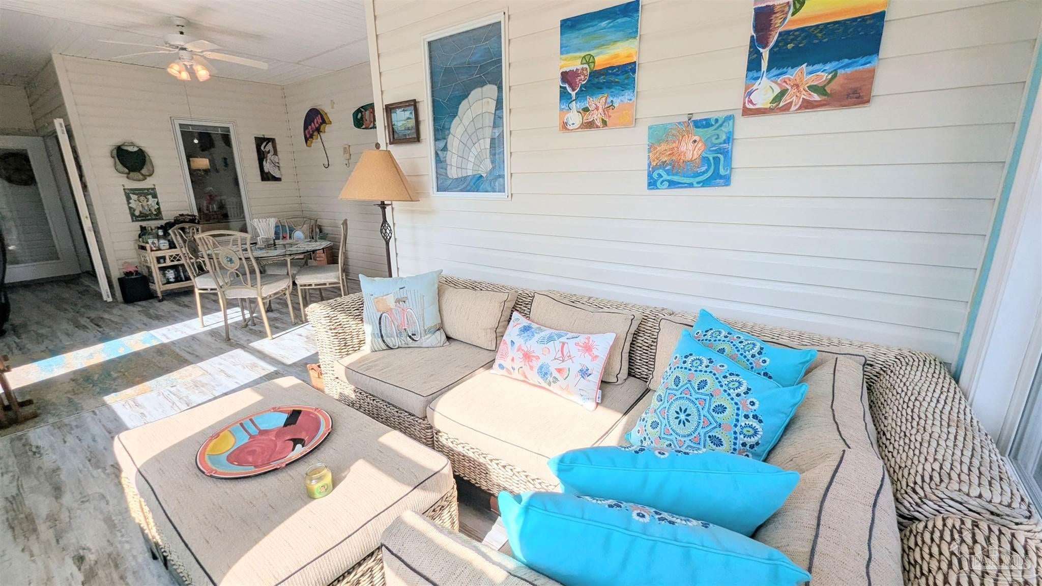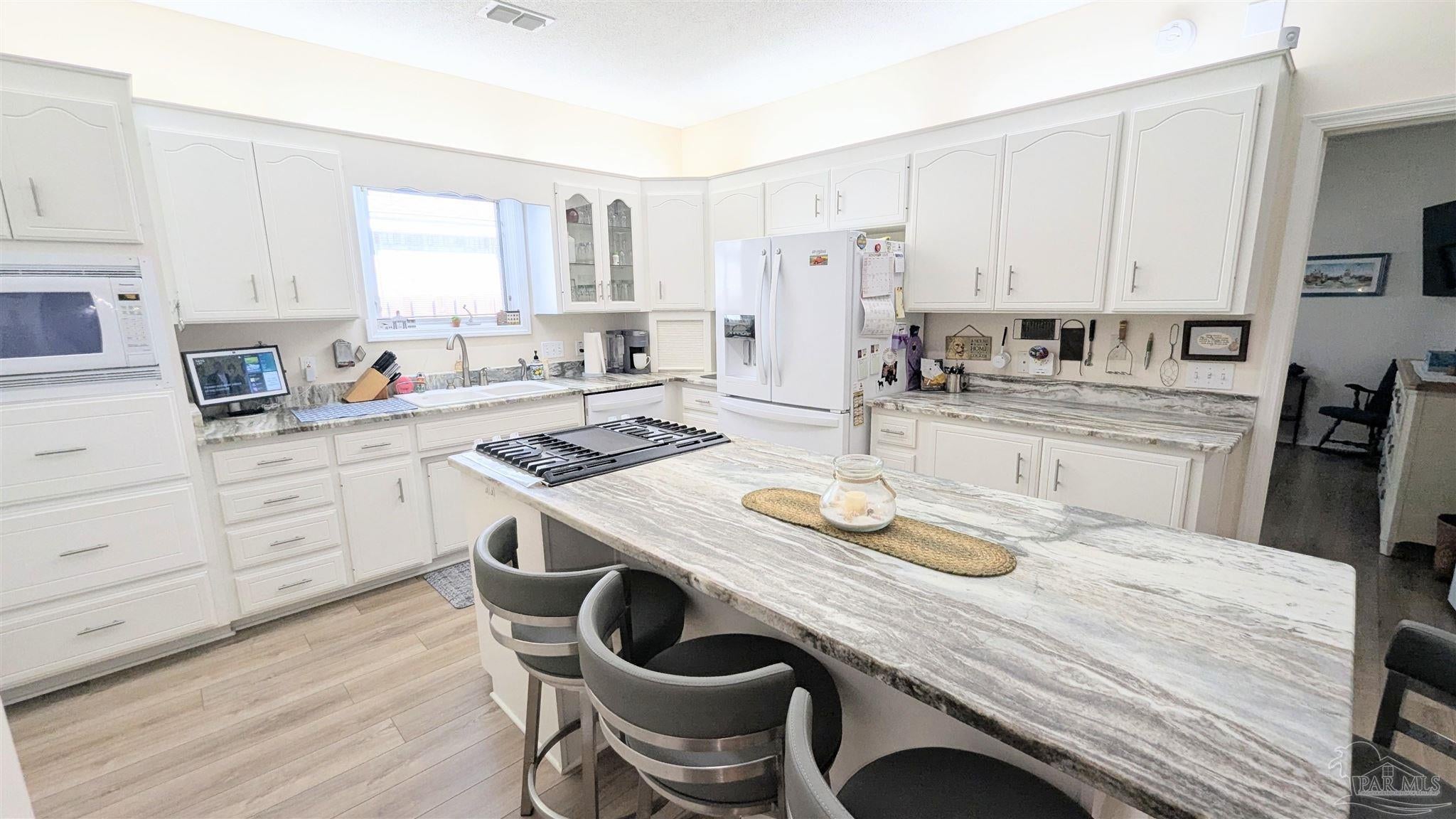 Stunning 3-bedroom, 2-bath Brick Beauty, where elegance meets excitement at every turn! The expansive open floor plan, soaring 9-ft ceilings, & luxurious vinyl flooring flows seamlessly throughout, setting the stage for a spectacular living experience. The extraordinary kitchen, features gleaming granite countertops, state-of-the-art appliances, & a magnificent center island & an abundance of exquisite cabinetry! Whether hosting special dinners or grand celebrations, the separate dining room is great for entertaining. The massive living room, highlighted by dramatic tray ceilings & a cozy wood-burning fireplace, creating a warm & inviting atmosphere. For year-round bliss, the expansive sunroom offers endless moments of relaxation while overlooking the beautiful fenced-in yard. Retreat to your oasis in the primary suite, complete with an opulent ensuite bath featuring a double sink vanity, lavish granite countertops, a spa-like tiled walk-in shower, & a colossal walk-in closet. Two additional spacious bedrooms & a stylish second full bath enhance this extraordinary residence. You'll say "WOW!" the moment you walk in the door! The excitement continues outdoors! Entertain on the expansive back deck, where you can enjoy the vibrant foliage, all effortlessly maintained by your own irrigation well. Need extra outdoor space & RV parking? We've got that too with the 12x10 shed/workshop AND a 50-amp RV hookup!! Living in the Spanish Cove subdivision means activities are right at your fingertips! This vibrant golf cart community offers 24-hour security, an outdoor pool overlooking Perdido Bay, a clubhouse, bay access, a fishing pier, beach area, & tennis/pickleball courts! Plus, you’re just minutes from a public boat launch, the stunning Gulf beaches, & a variety of shopping & dining!! Don’t miss your chance to claim this remarkable home—it’s more than just a house; it’s a lifestyle! Call to schedule your showing TODAY! Buyer to verify all information during due diligence.