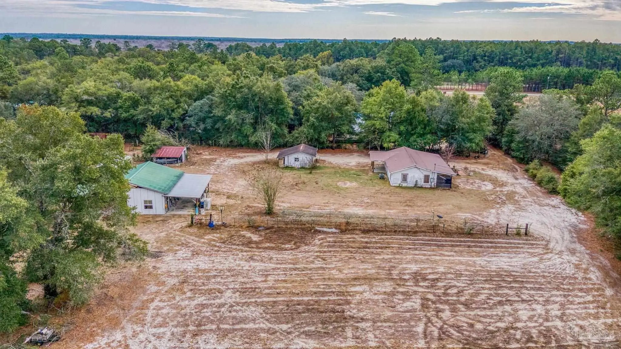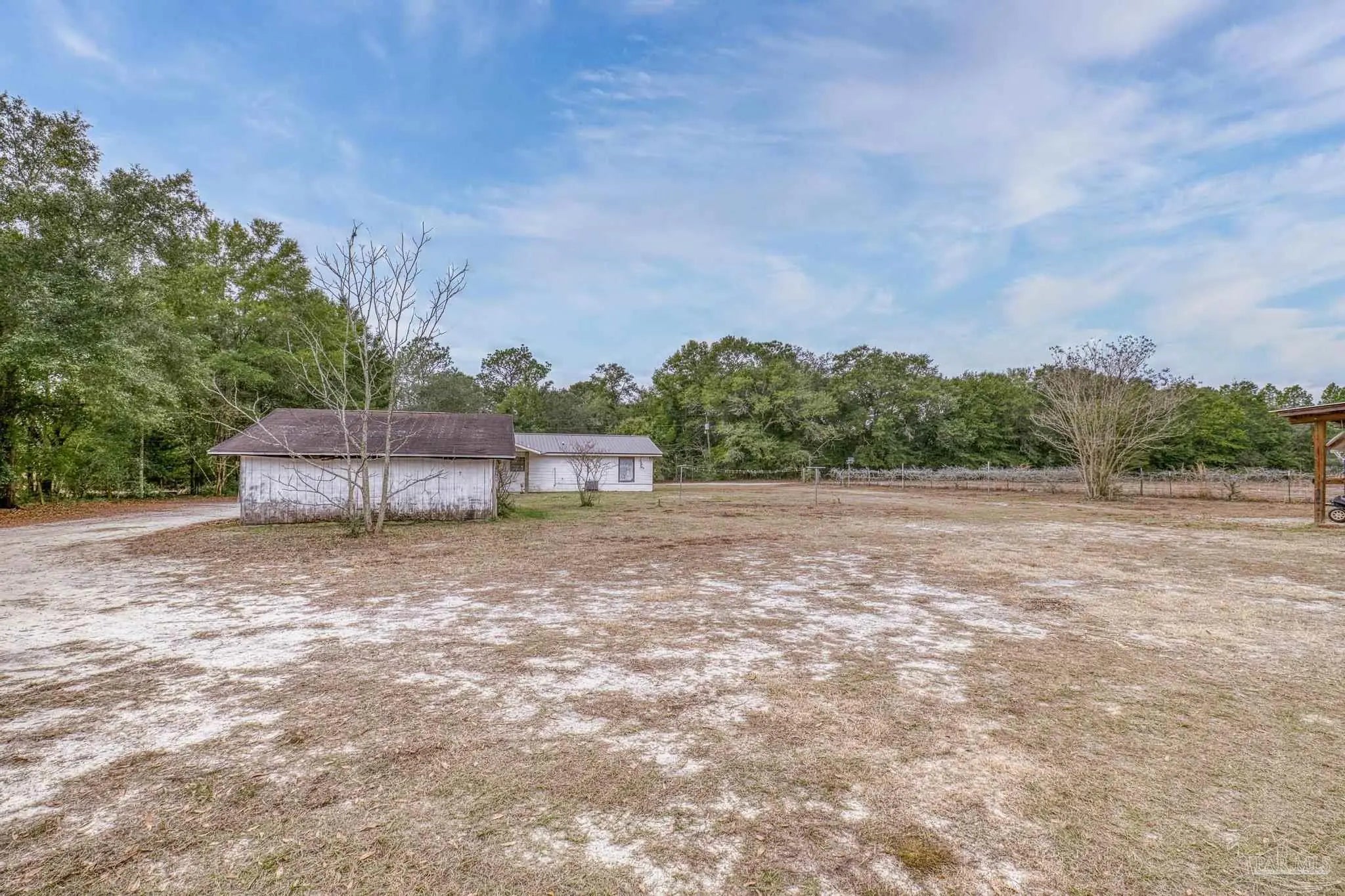Discover the privacy, freedom, and possibilities of owning over 11 acres across two adjoining parcels in the peaceful rural countryside of Milton. Whether you're dreaming of a place to bring all your toys, planning to build your future home, or simply wanting room to spread out, this property delivers the outdoor lifestyle that is hard to find. The property features a small home that offers immediate living space, allowing you time to design and build a larger residence if desired. It’s an ideal setup for anyone wanting acreage now and expansion later. The wooded acreage offers natural privacy and abundant wildlife, with deer frequently spotted, making it an excellent setting for hunters and nature enthusiasts. The home is a 2-bedroom with a study and 1 bathroom, and while it needs some TLC, it includes key updates: a 2020 metal roof and a 2018 Rheem HVAC system. The property also features a private well, a major advantage for large parcels. A large pole barn provides ample storage for boats, ATVs, RVs, trailers, equipment, or tools. You’ll also enjoy a variety of fruit trees—peach, plum, fig, lemon, banana, and orange, along with a beautiful row of muscadine vines. Both parcels are located in Flood Zone X, the lowest-risk flood zone, no flood insurance required, and NO HOA. Enjoy rural living while staying close to Santa Rosa County’s top outdoor destinations. Spend your weekends tubing or kayaking the Blackwater River, zip-lining at Adventures Unlimited, visiting events at Southern Raceway, or relaxing on the sugar-white sands of Navarre Beach. Shopping, dining, schools, and Santa Rosa Medical Center are also within a reasonable drive, offering the perfect blend of privacy and convenience. If you’ve been searching for acreage, privacy, and a true country lifestyle, this unique two-parcel property is the perfect fit.
