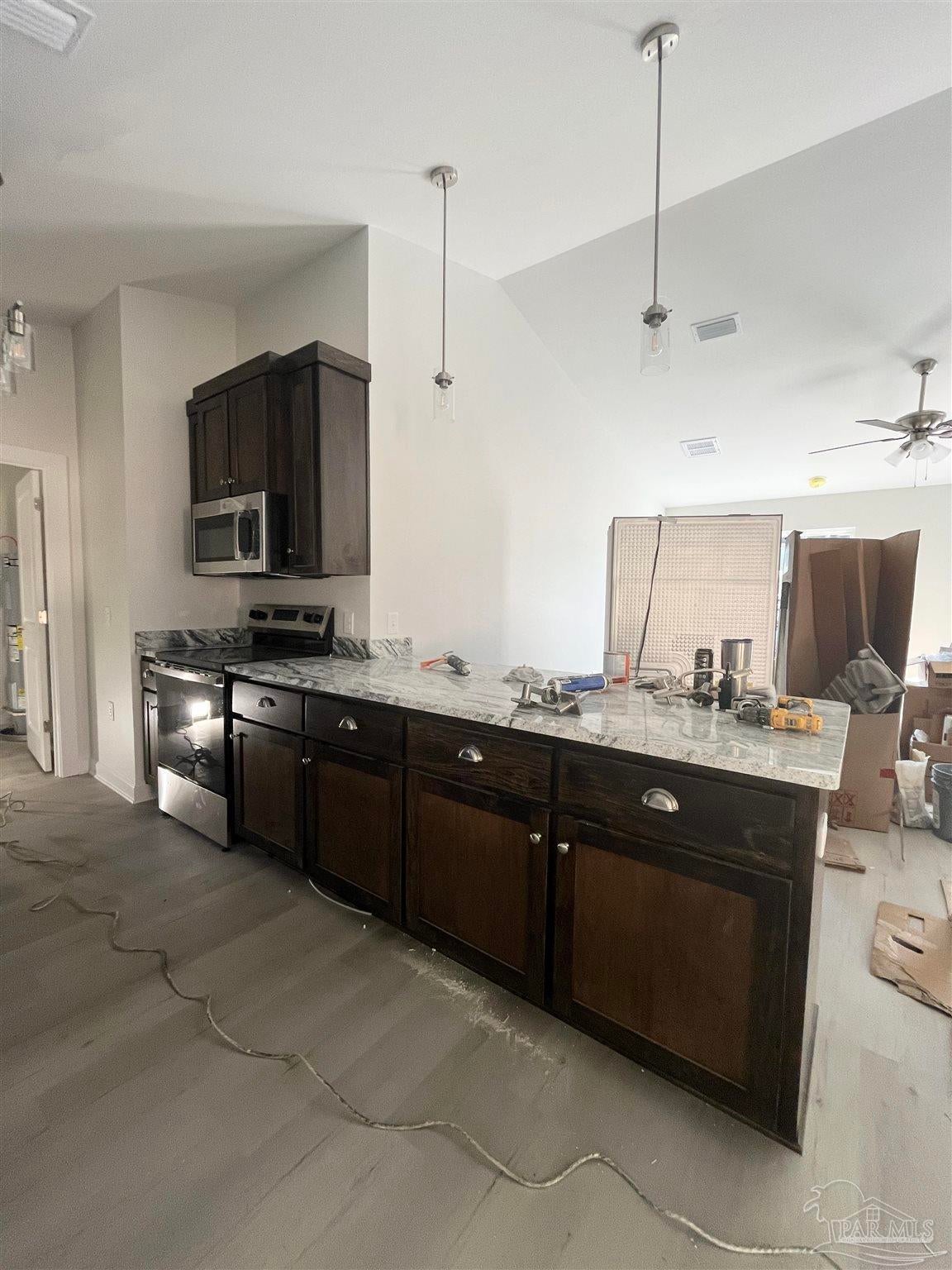 - Baseboards, Cathedral Ceiling(s), Ceiling Fan(s), High Ceilings, Vaulted Ceiling(s)