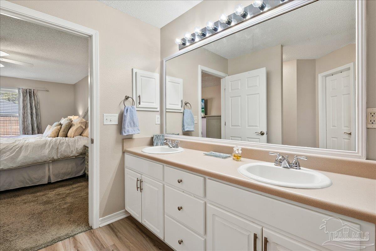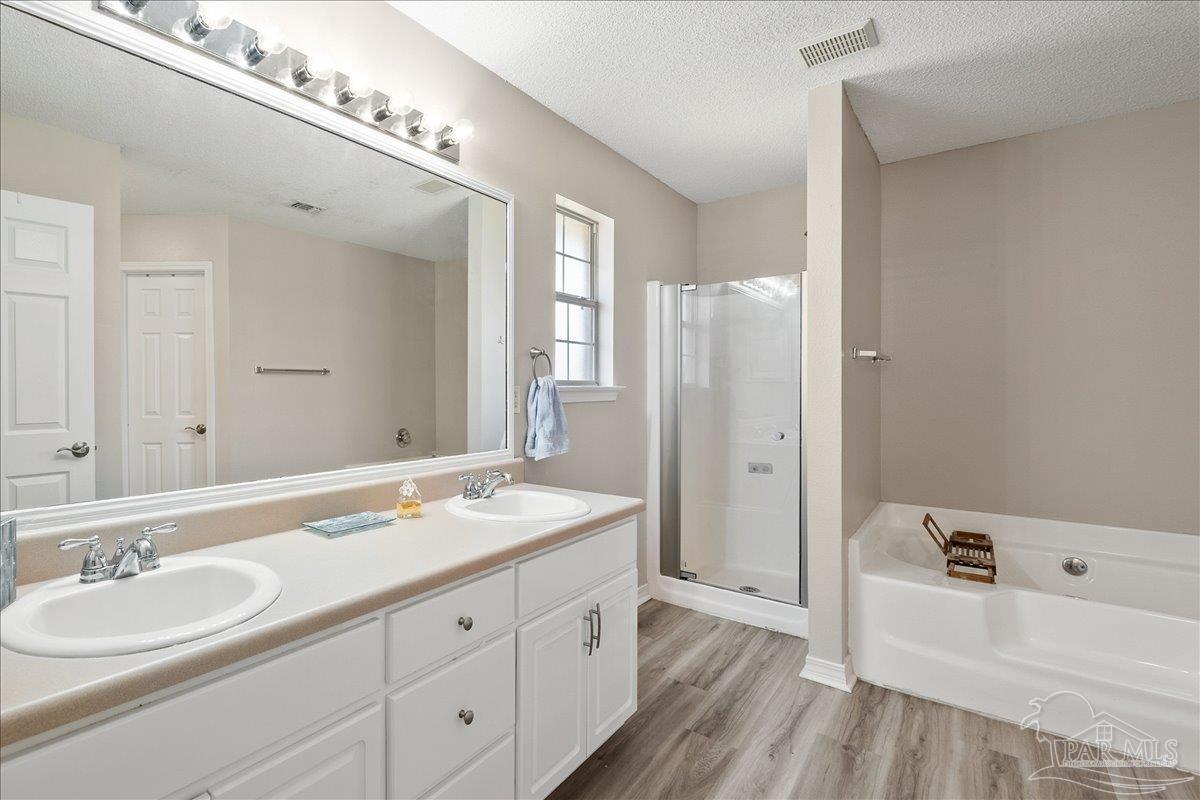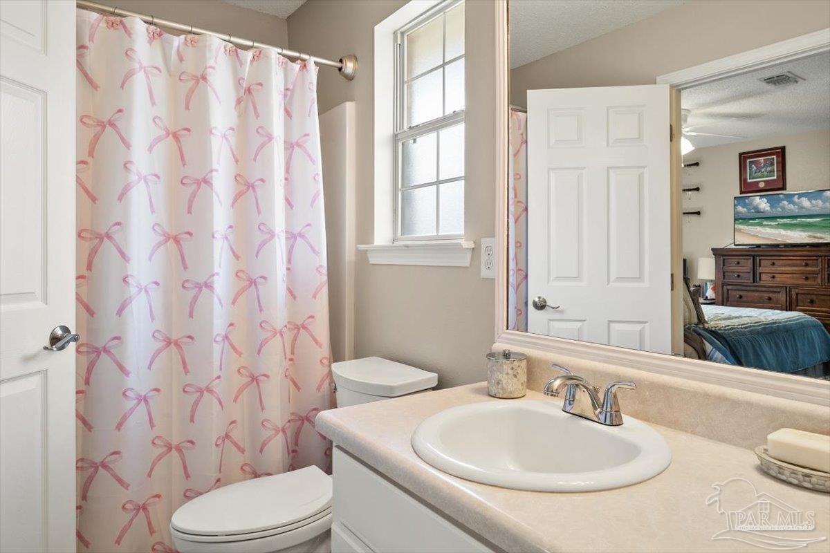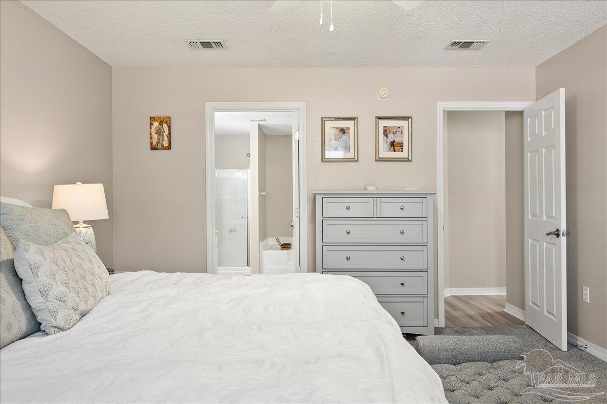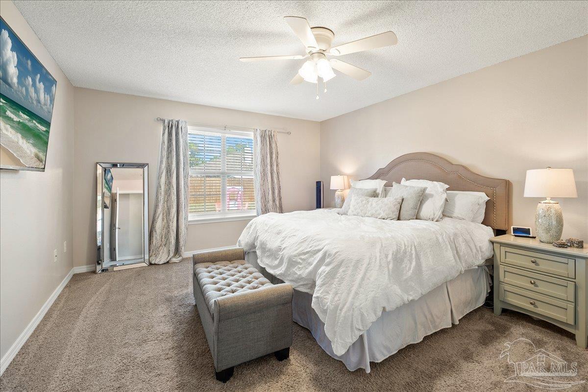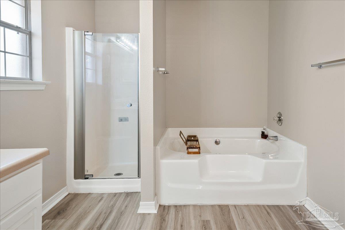 Beautifully Updated East Navarre Home! This all-brick 4-bedroom, 3 bath home features a fenced yard and a lengthy list of 2024 upgrades, including a brand-new roof and renovated kitchen. Luxury vinyl plank flooring extends throughout the main living areas and guest bedrooms for a clean, modern look. The renovated kitchen shines with new quartz countertops, an extended quartz-top buffet cabinet, breakfast bar, new sink and faucet, and newer stainless appliances—including the refrigerator. A pantry adds even more storage. The great room boasts a high cathedral ceiling and has access to the covered patio. A separate dining room offers space for either formal or casual meals. The generous primary suite features a bath with double vanity, garden tub, separate shower, and walk-in closet. Two guest bedrooms share a convenient Jack-and-Jill bath, while the fourth bedroom is adjacent to a full guest bath. Outside, enjoy a large patio and fully fenced yard—perfect for family activities. Additional features include 2024 gutters and downspouts, 2022 Hvac,2021 water heater, 2021 stainless appliances, irrigation system with well, and updated lighting throughout. Newly deep-cleaned and pressure-washed, this home is truly move-in ready. Located close to military bases, shopping, schools, and the sugar-sand beaches and turquoise waters of the Gulf of America, this is an exceptional opportunity to have everything done for you—just turn the key, move in, and head to the beach!