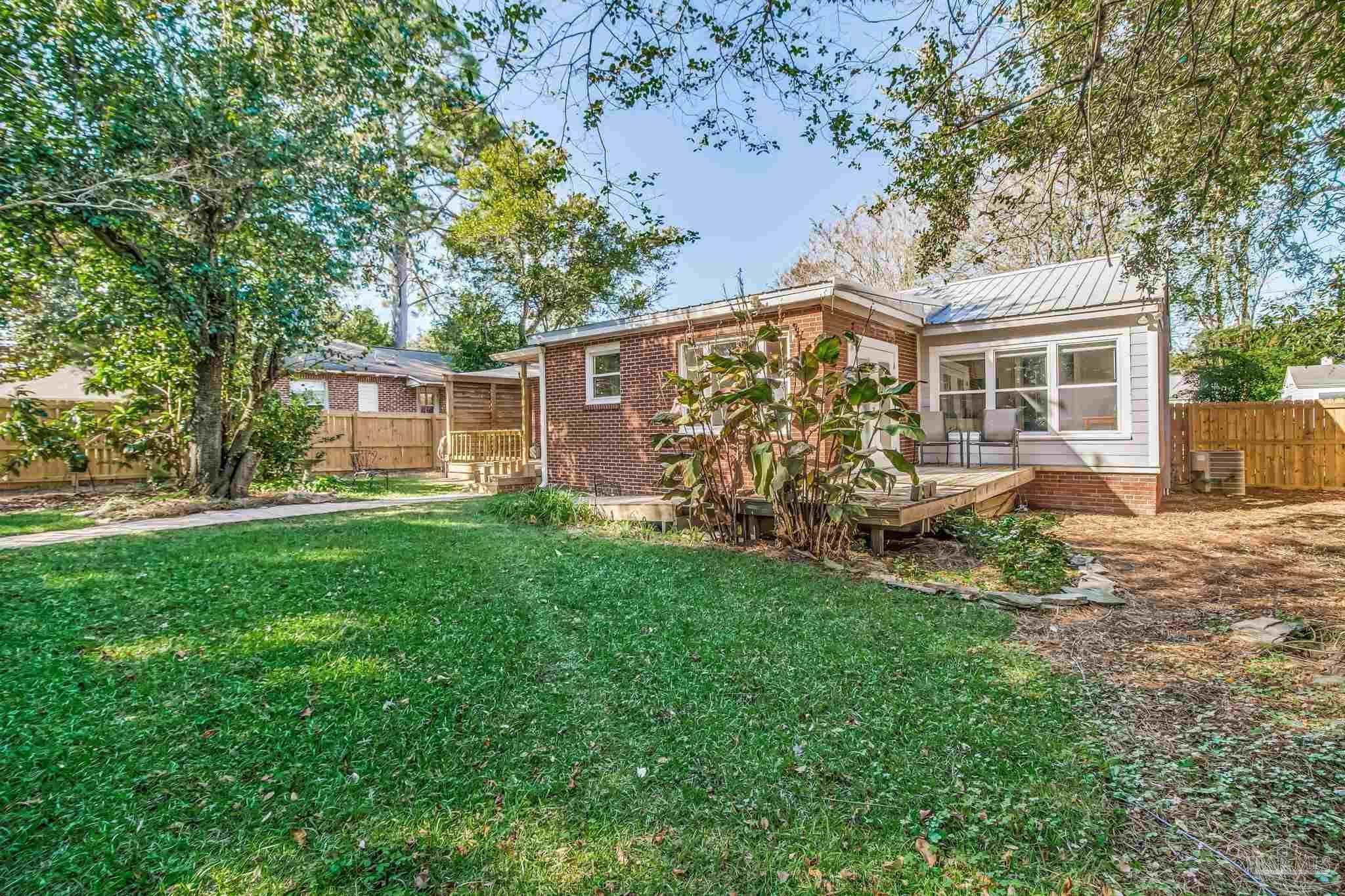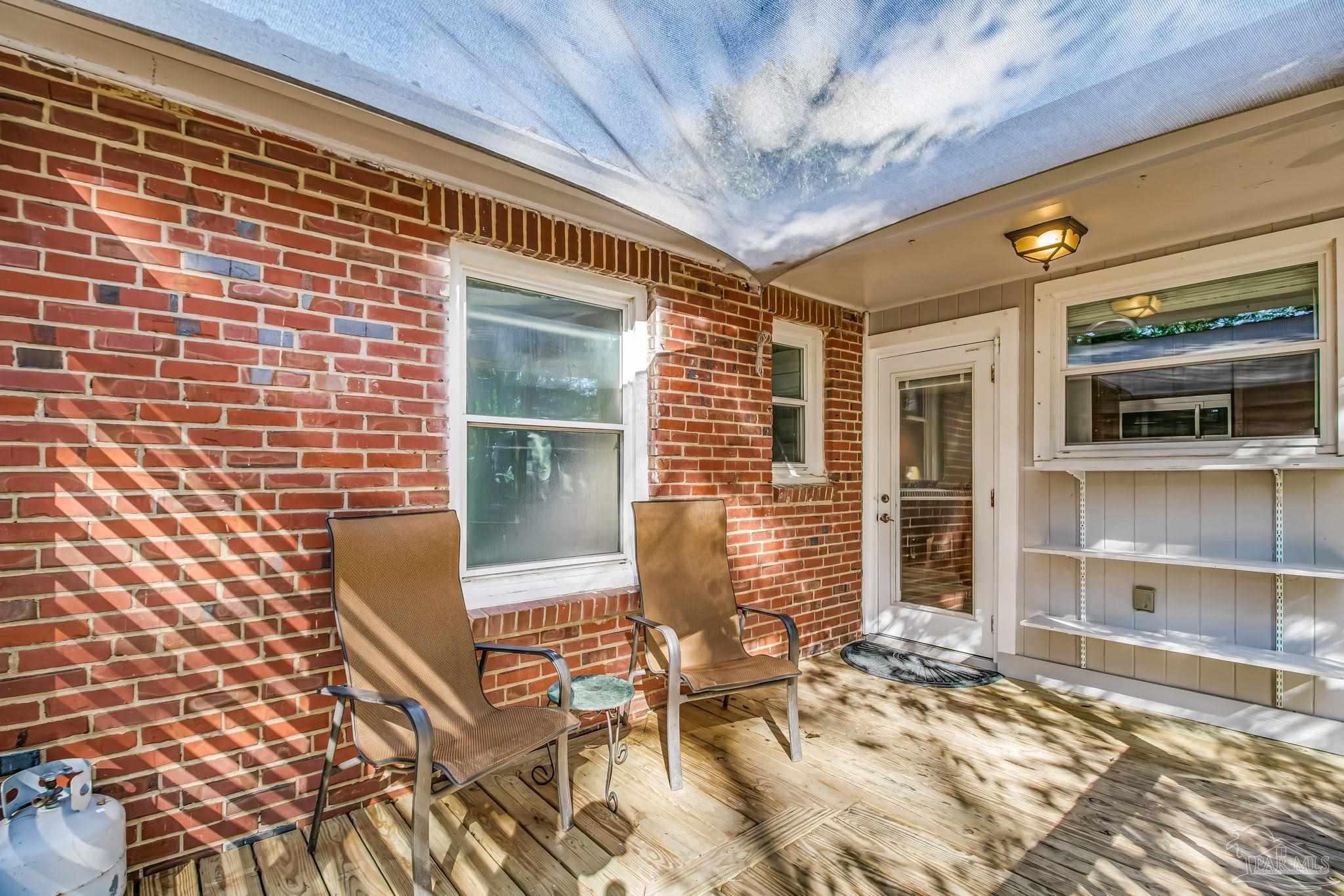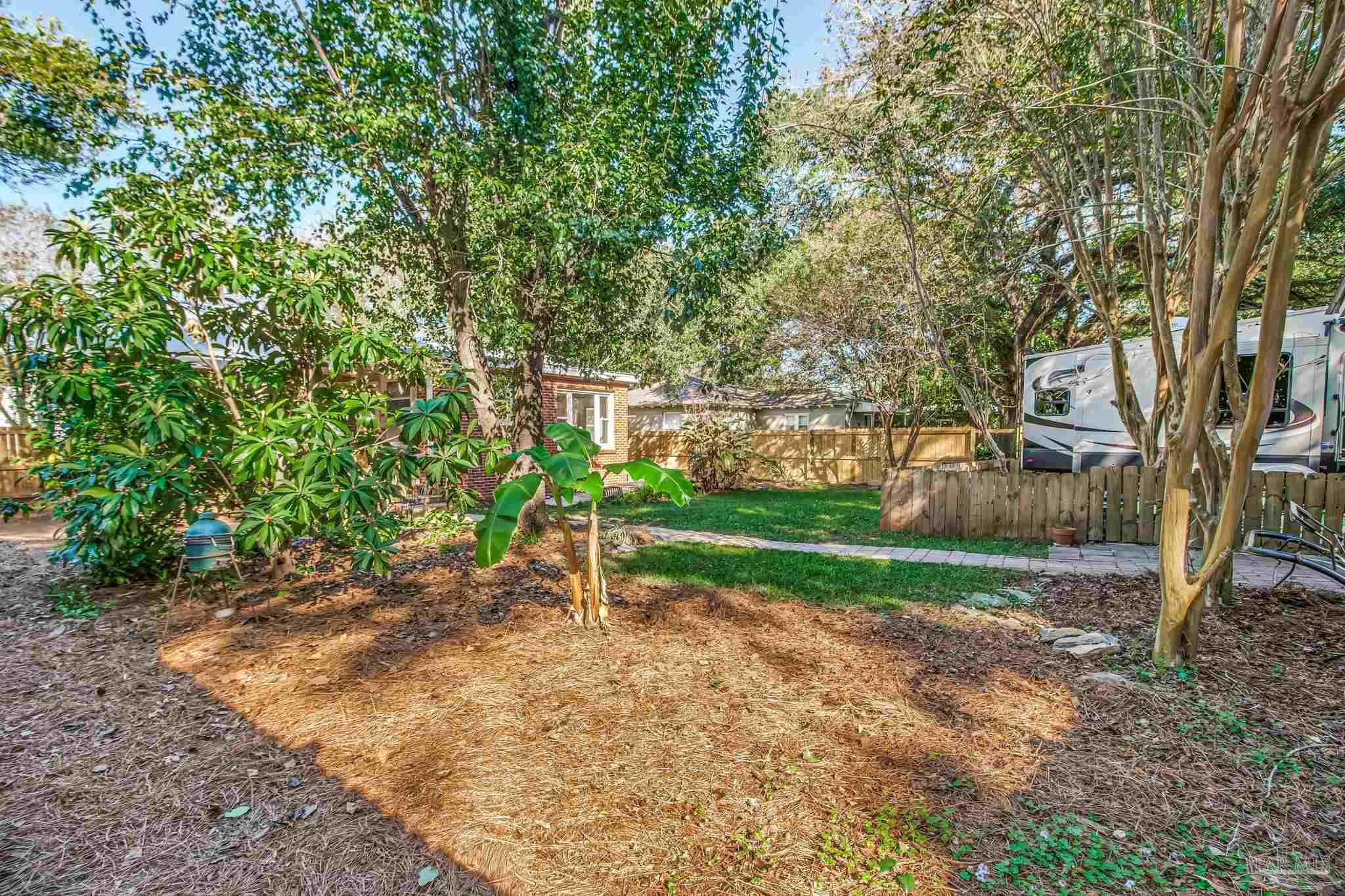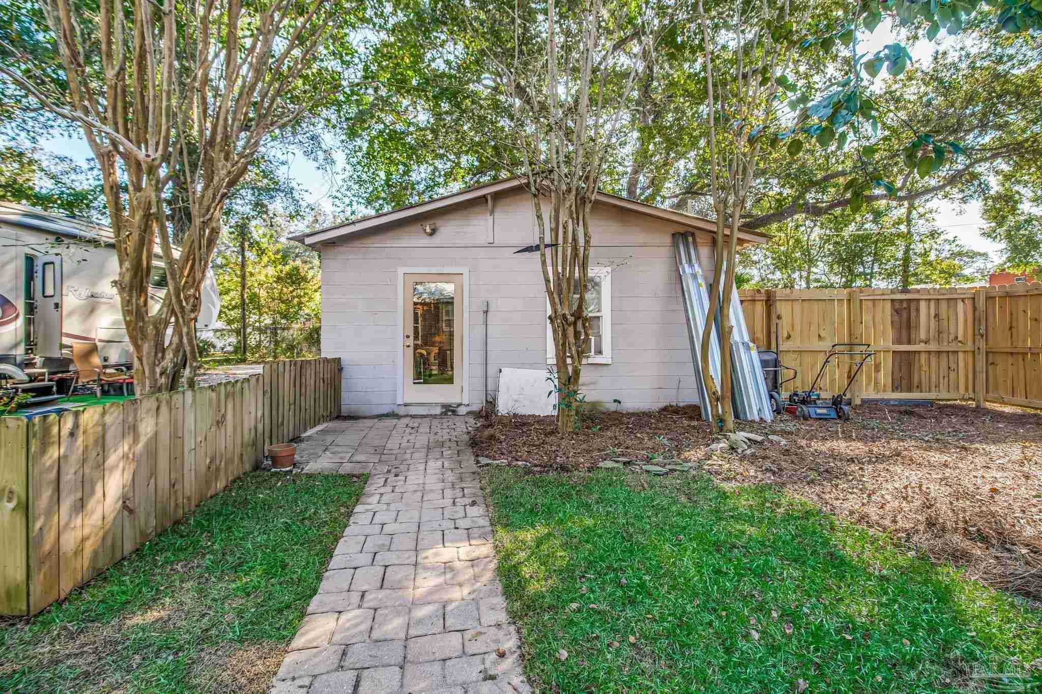 Located just minutes from downtown Pensacola, this charming all-brick home features beautifully refinished original hardwood floors and a bright, open layout. Enjoy generous living, dining, and kitchen spaces perfect for everyday life or entertaining. Just off the main living area is a dedicated office that could serve as a third bedroom, complete with built-in bookshelves and multiple windows overlooking the backyard. The spacious primary suite offers a walk-in closet and abundant natural light from numerous windows. French doors open to a back patio overlooking the privacy-fenced yard with mature landscaping, and a second deck off the kitchen provides another inviting outdoor space. The detached two-car garage sits at the rear of the property and can be accessed through the back alley. Next to the garage, there is ample space to park a boat, RV, or additional vehicles, offering excellent flexibility and convenience. The garage also includes a conditioned storage room for year-round use. Call today to schedule your personal tour of this beautiful home.