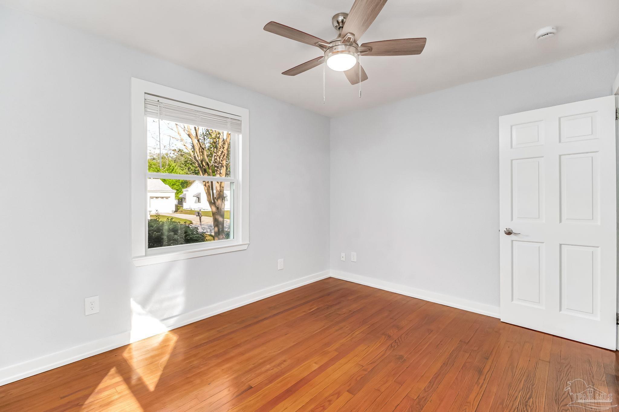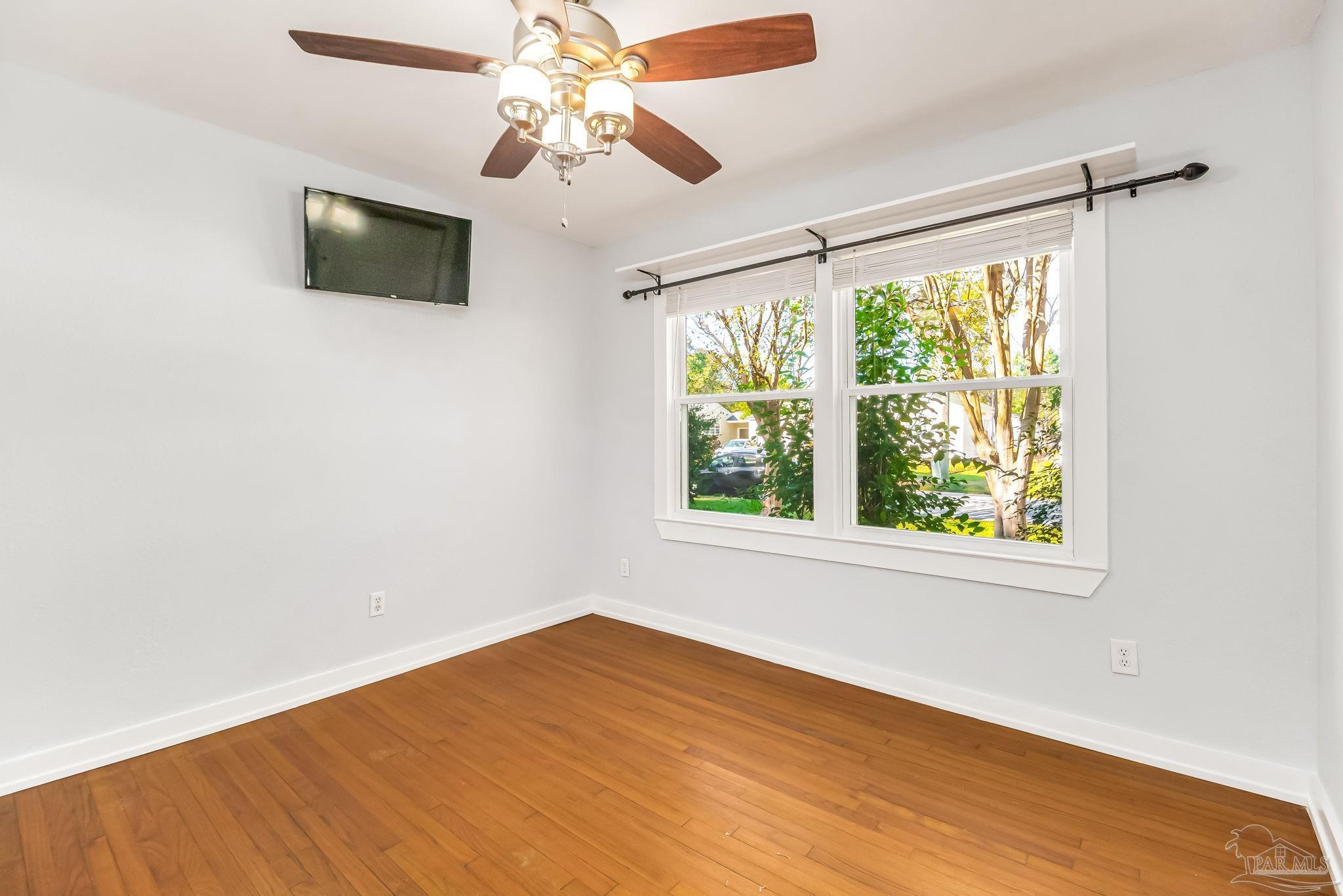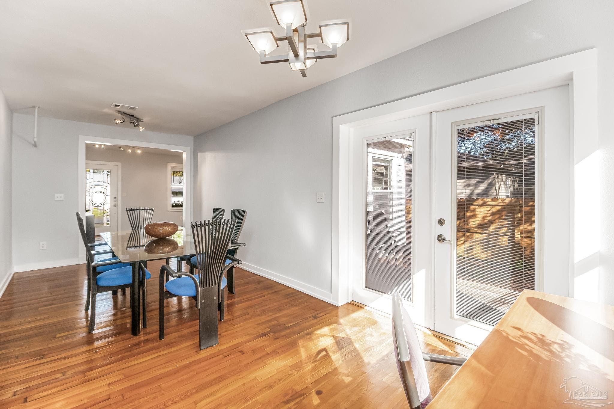 Located just minutes from downtown Pensacola, this charming all-brick home features beautifully refinished original hardwood floors and a bright, open layout. Enjoy generous living, dining, and kitchen spaces perfect for everyday life or entertaining. Just off the main living area is a dedicated office that could serve as a third bedroom, complete with built-in bookshelves and multiple windows overlooking the backyard. The spacious primary suite offers a walk-in closet and abundant natural light from numerous windows. French doors open to a back patio overlooking the privacy-fenced yard with mature landscaping, and a second deck off the kitchen provides another inviting outdoor space. The detached two-car garage sits at the rear of the property and can be accessed through the back alley. Next to the garage, there is ample space to park a boat, RV, or additional vehicles, offering excellent flexibility and convenience. The garage also includes a conditioned storage room for year-round use. Call today to schedule your personal tour of this beautiful home.