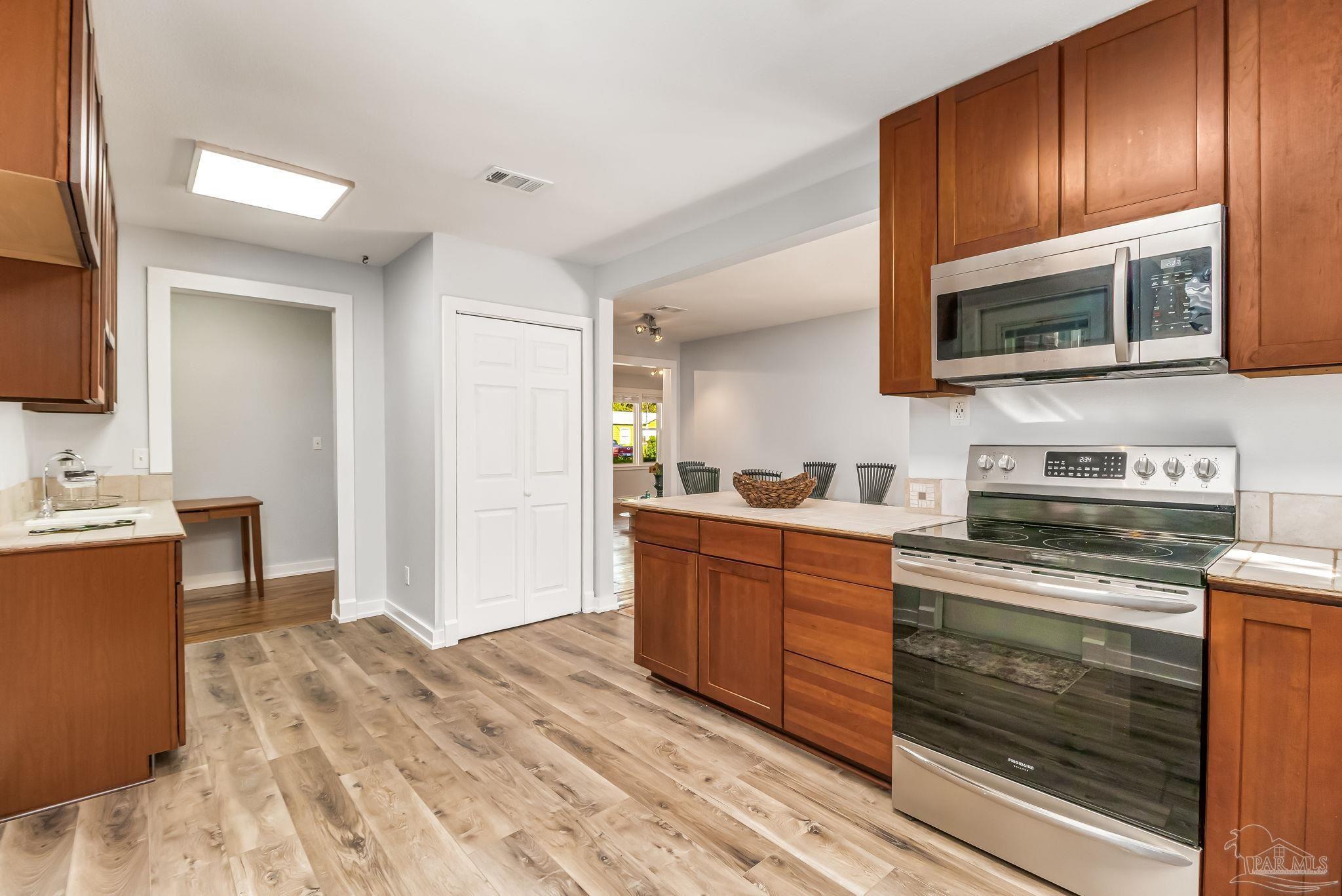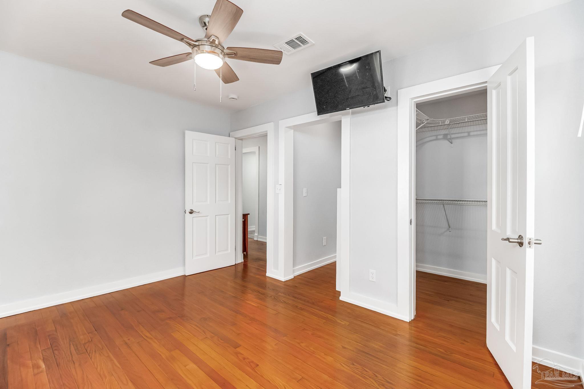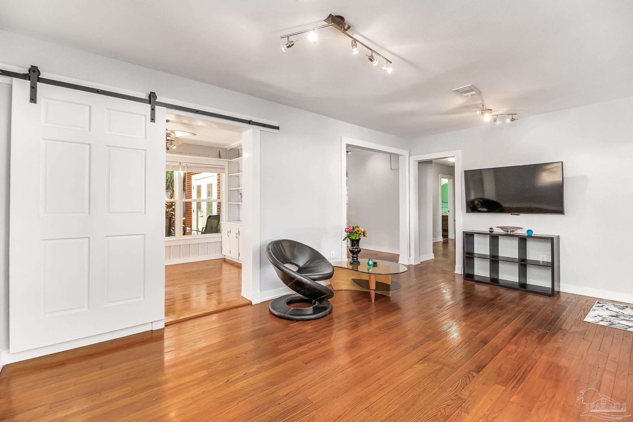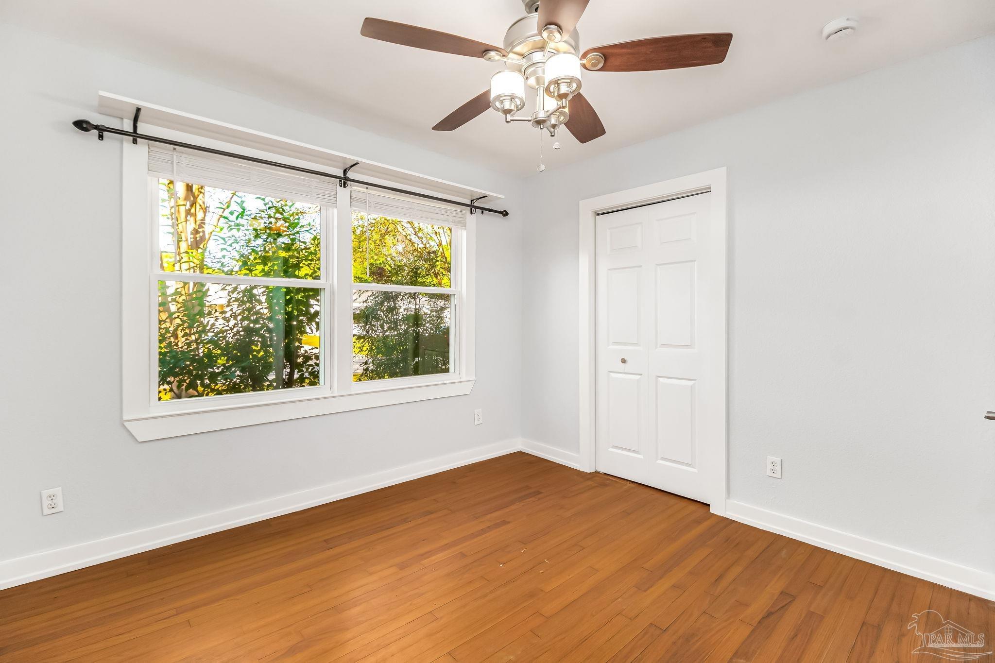 Located just minutes from downtown Pensacola, this charming all-brick home features beautifully refinished original hardwood floors and a bright, open layout. Enjoy generous living, dining, and kitchen spaces perfect for everyday life or entertaining. Just off the main living area is a dedicated office that could serve as a third bedroom, complete with built-in bookshelves and multiple windows overlooking the backyard. The spacious primary suite offers a walk-in closet and abundant natural light from numerous windows. French doors open to a back patio overlooking the privacy-fenced yard with mature landscaping, and a second deck off the kitchen provides another inviting outdoor space. The detached two-car garage sits at the rear of the property and can be accessed through the back alley. Next to the garage, there is ample space to park a boat, RV, or additional vehicles, offering excellent flexibility and convenience. The garage also includes a conditioned storage room for year-round use. Call today to schedule your personal tour of this beautiful home.