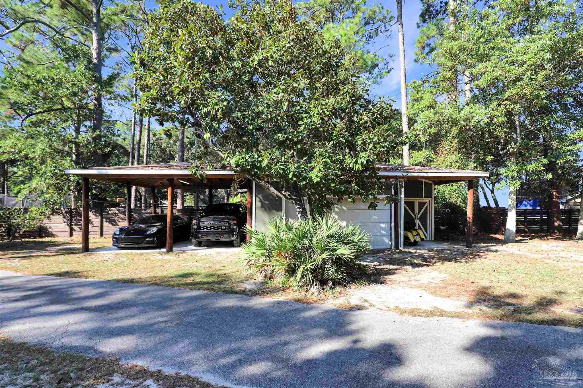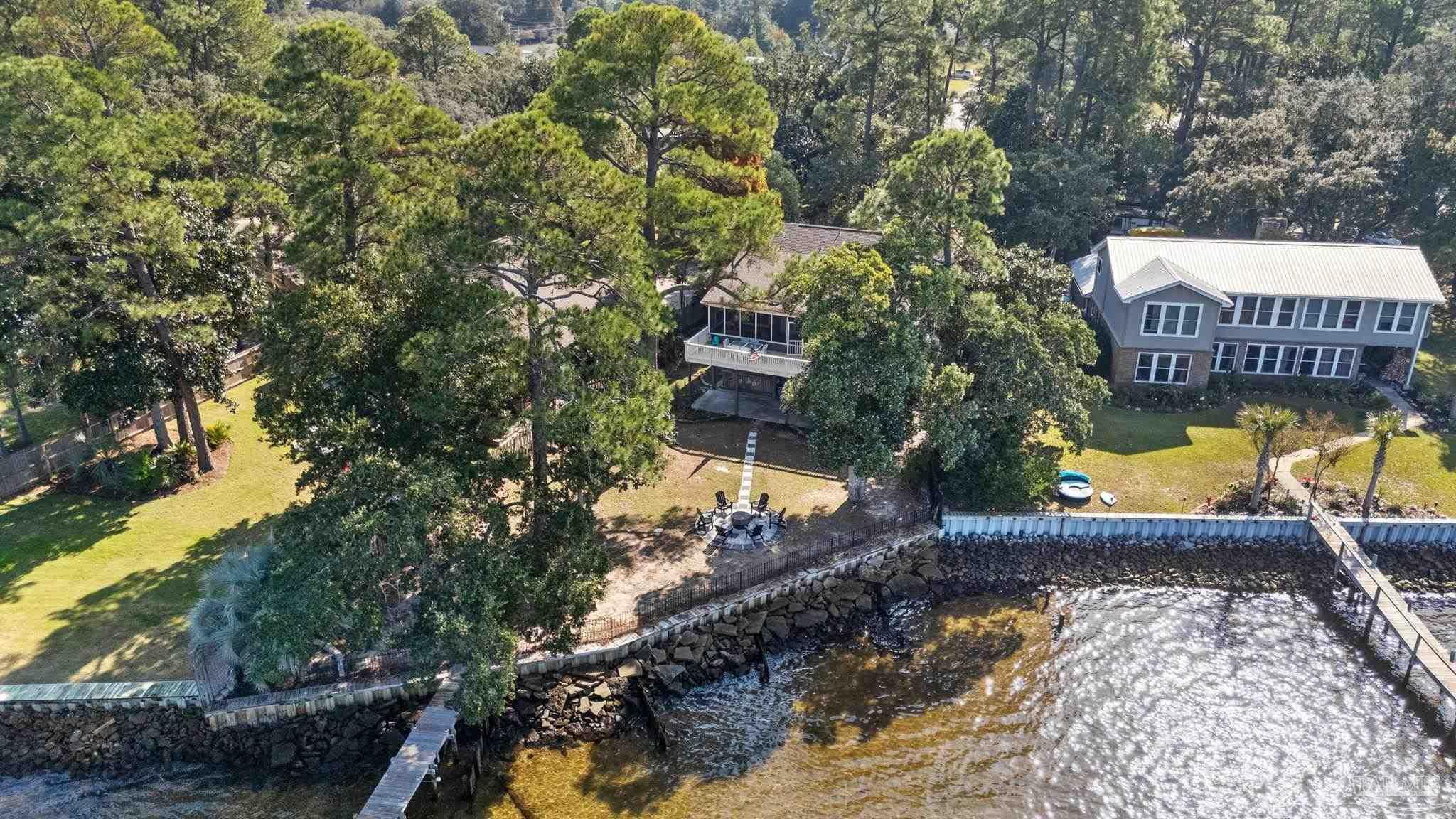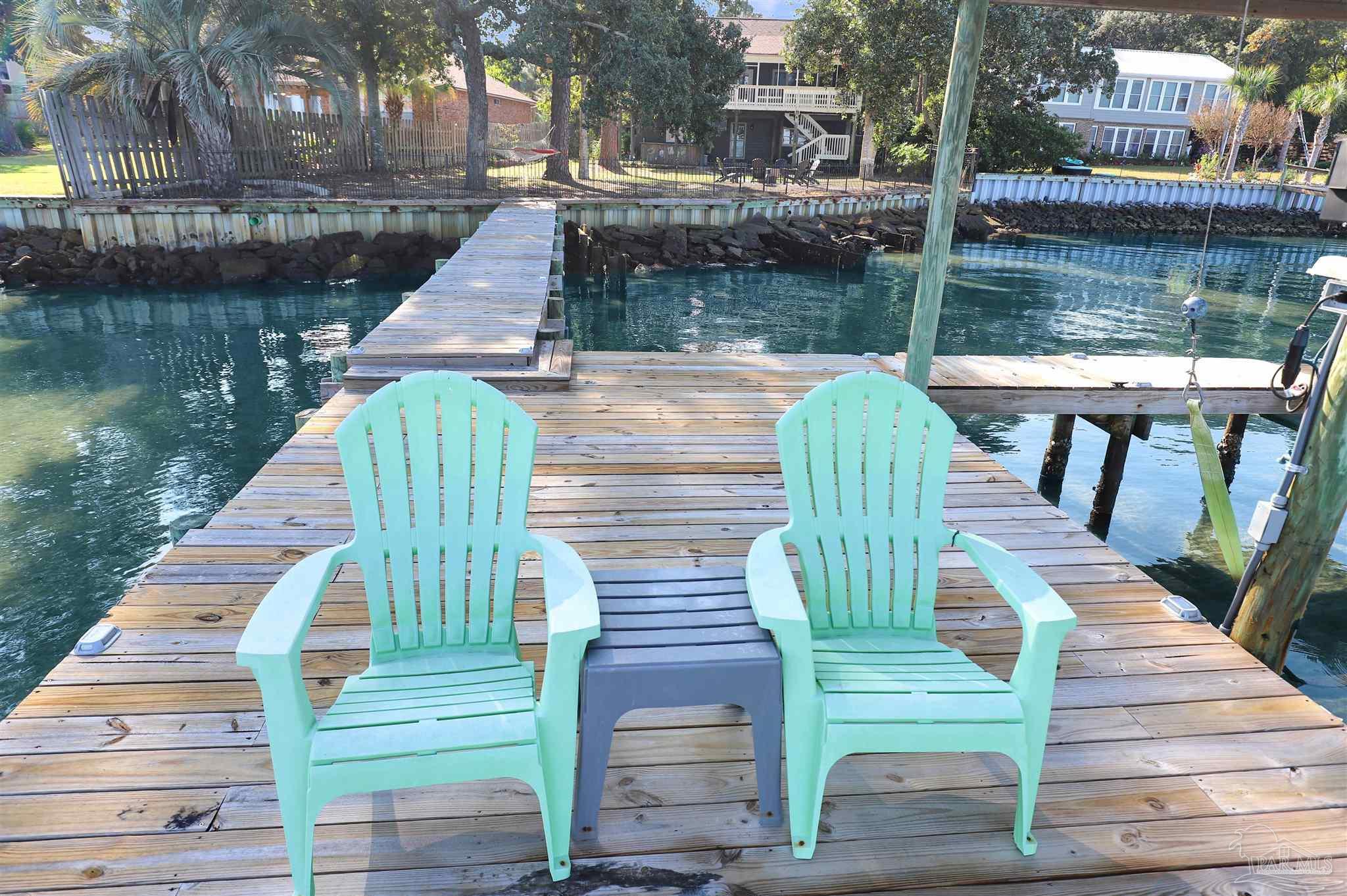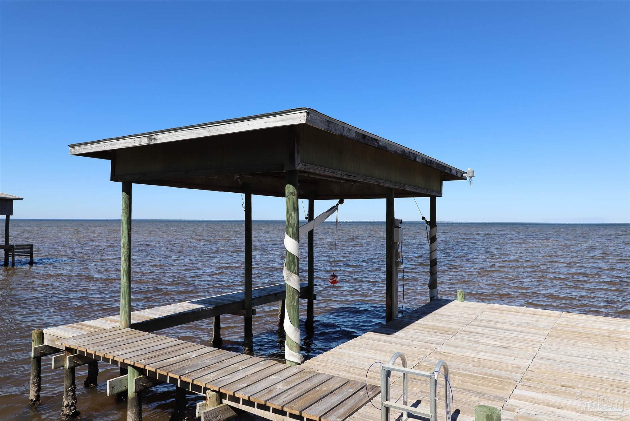 Let’s start outside, because that’s where this home truly shines. As you come through the electric gate, the property opens up in front of you — plenty of space for cars, projects, and storage with a 22x52 detached garage/workshop, an additional carport, and a separate shed, grapefruit and satsuma trees. But the water pulls you forward. You’ve got 83 feet directly on Escambia Bay, with a seawall in excellent condition, a wood walkway, metal corrugated wall, and rip rap for peace of mind. A decorative metal fence runs the length of the waterfront, complete with a pedestrian gate that leads to your private dock and boat lift — water, power, and a new 6,000-lb lift ready for an 18-ft boat. The dolphins, reds, trout, mullet, sheepshead, and blue crabs show up regularly, like neighbors popping by to say hello. Sunrises and sunsets bookend each day with color. Up on the main level, the screened porch stretches an unbelievable 48 feet — and the open porch mirrors it, giving you two different ways to take in the bay. Mornings with coffee, evenings with friends, quiet time with a book. Down on the lower level, there’s another covered outdoor space right at the waterline, perfect for grilling or hosting without ever leaving the breeze. Inside, the home is set up for flexibility. Two full bedrooms and two baths on each level make it easy for multi-generational living, guests, or simply extra privacy. Both floors have their own living room, kitchen, and laundry. On the main level, the open layout brings the kitchen, dining, and living together — simple, comfortable, and perfect for everyday living. The sellers added extra pantry cabinetry, shelving, and a utility sink & fresh interior paint to keep everything feeling clean and bright. Whether you're coming home from a day on the boat, hosting weekend guests, or settling in to watch the sky change over the bay, this property makes it easy to live on the water and with it. HVACs: 2017/19 Water heaters: 2024/25 Roof: 2022