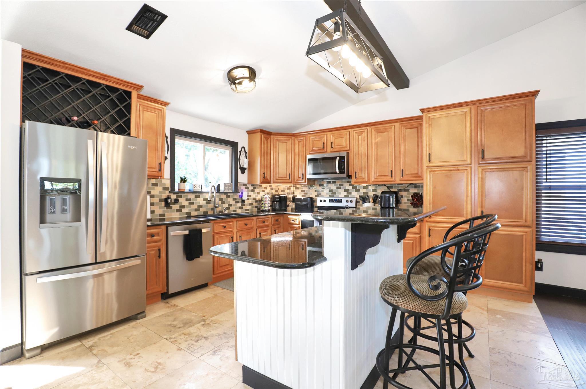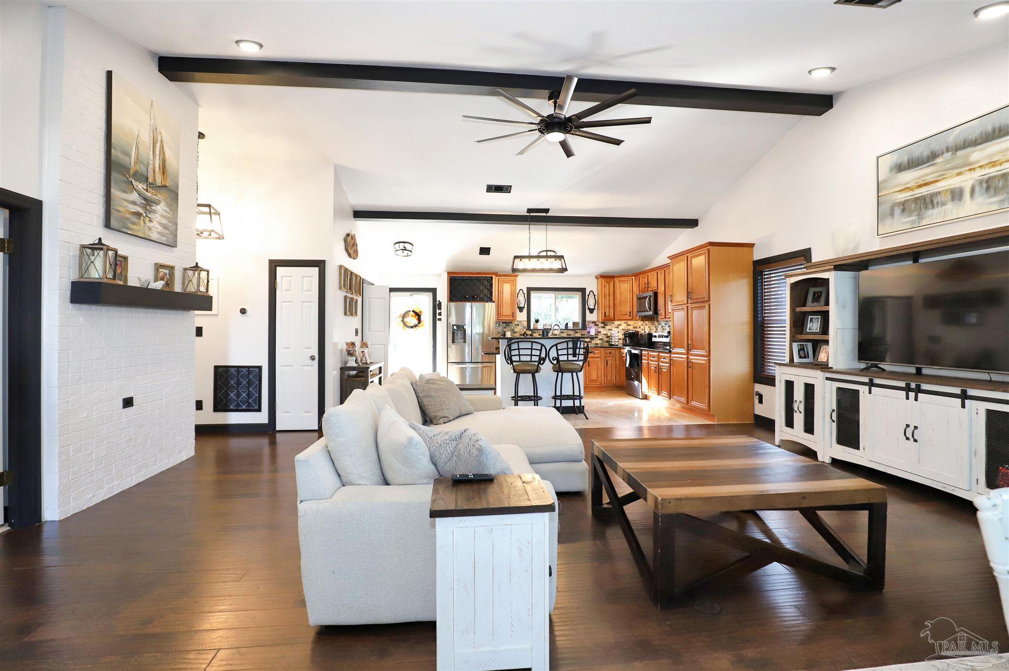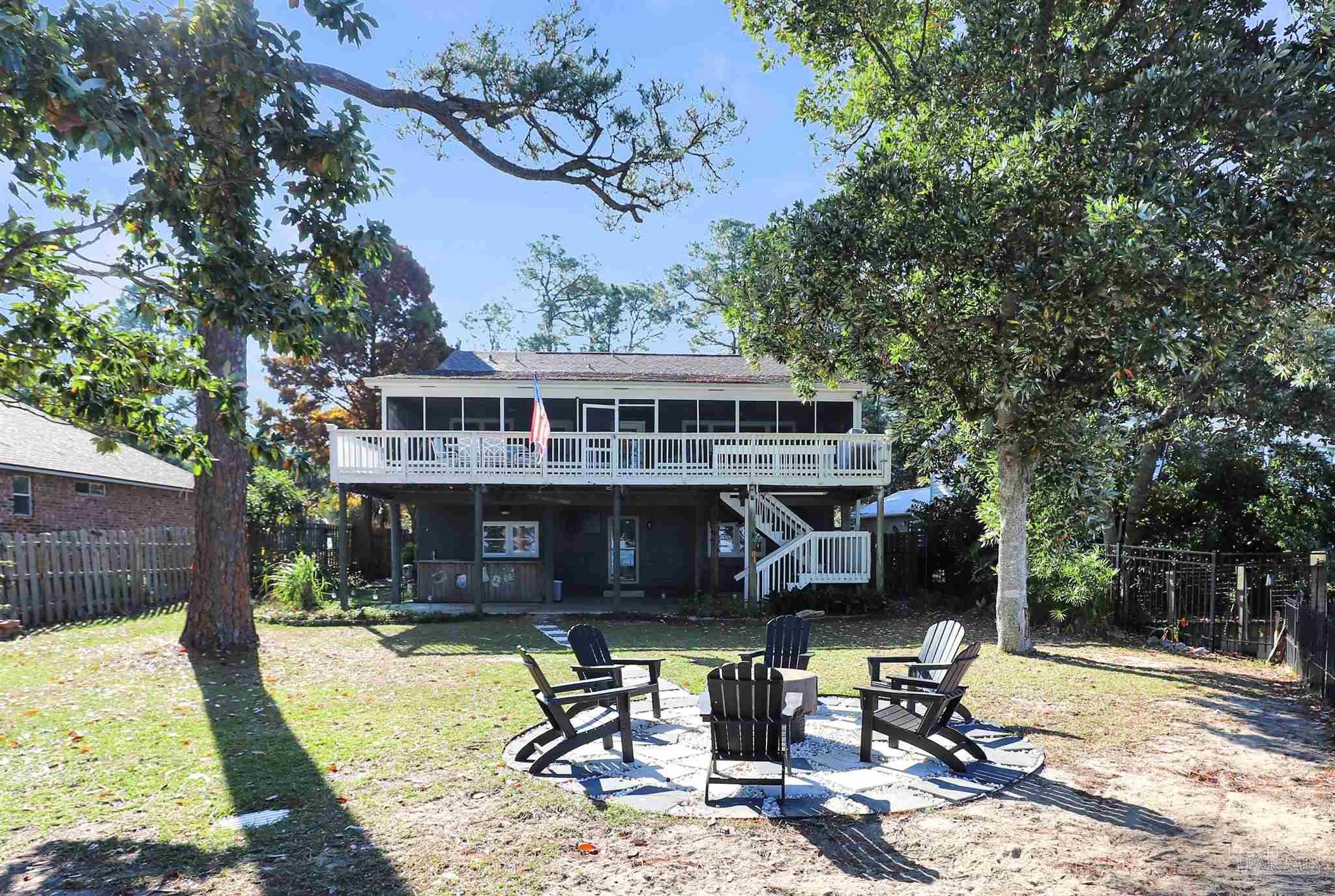 Let’s start outside, because that’s where this home truly shines. As you come through the electric gate, the property opens up in front of you — plenty of space for cars, projects, and storage with a 22x52 detached garage/workshop, an additional carport, and a separate shed, grapefruit and satsuma trees. But the water pulls you forward. You’ve got 83 feet directly on Escambia Bay, with a seawall in excellent condition, a wood walkway, metal corrugated wall, and rip rap for peace of mind. A decorative metal fence runs the length of the waterfront, complete with a pedestrian gate that leads to your private dock and boat lift — water, power, and a new 6,000-lb lift ready for an 18-ft boat. The dolphins, reds, trout, mullet, sheepshead, and blue crabs show up regularly, like neighbors popping by to say hello. Sunrises and sunsets bookend each day with color. Up on the main level, the screened porch stretches an unbelievable 48 feet — and the open porch mirrors it, giving you two different ways to take in the bay. Mornings with coffee, evenings with friends, quiet time with a book. Down on the lower level, there’s another covered outdoor space right at the waterline, perfect for grilling or hosting without ever leaving the breeze. Inside, the home is set up for flexibility. Two full bedrooms and two baths on each level make it easy for multi-generational living, guests, or simply extra privacy. Both floors have their own living room, kitchen, and laundry. On the main level, the open layout brings the kitchen, dining, and living together — simple, comfortable, and perfect for everyday living. The sellers added extra pantry cabinetry, shelving, and a utility sink & fresh interior paint to keep everything feeling clean and bright. Whether you're coming home from a day on the boat, hosting weekend guests, or settling in to watch the sky change over the bay, this property makes it easy to live on the water and with it. HVACs: 2017/19 Water heaters: 2024/25 Roof: 2022