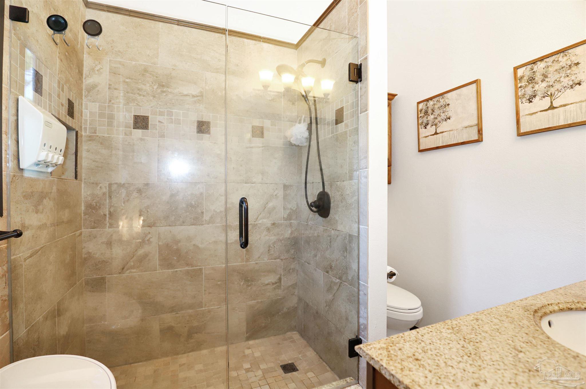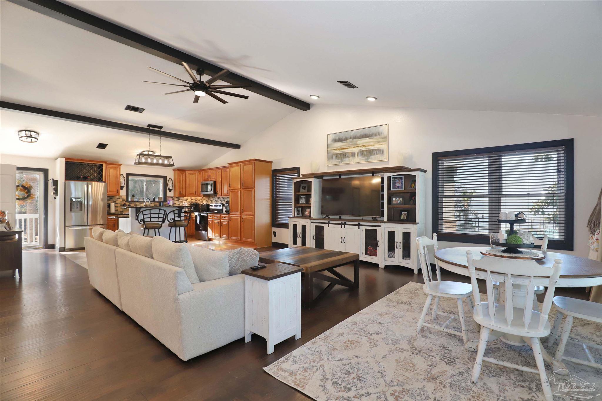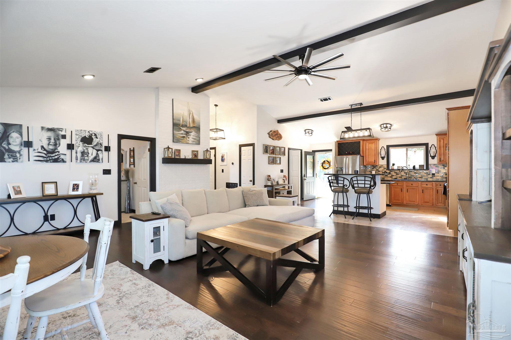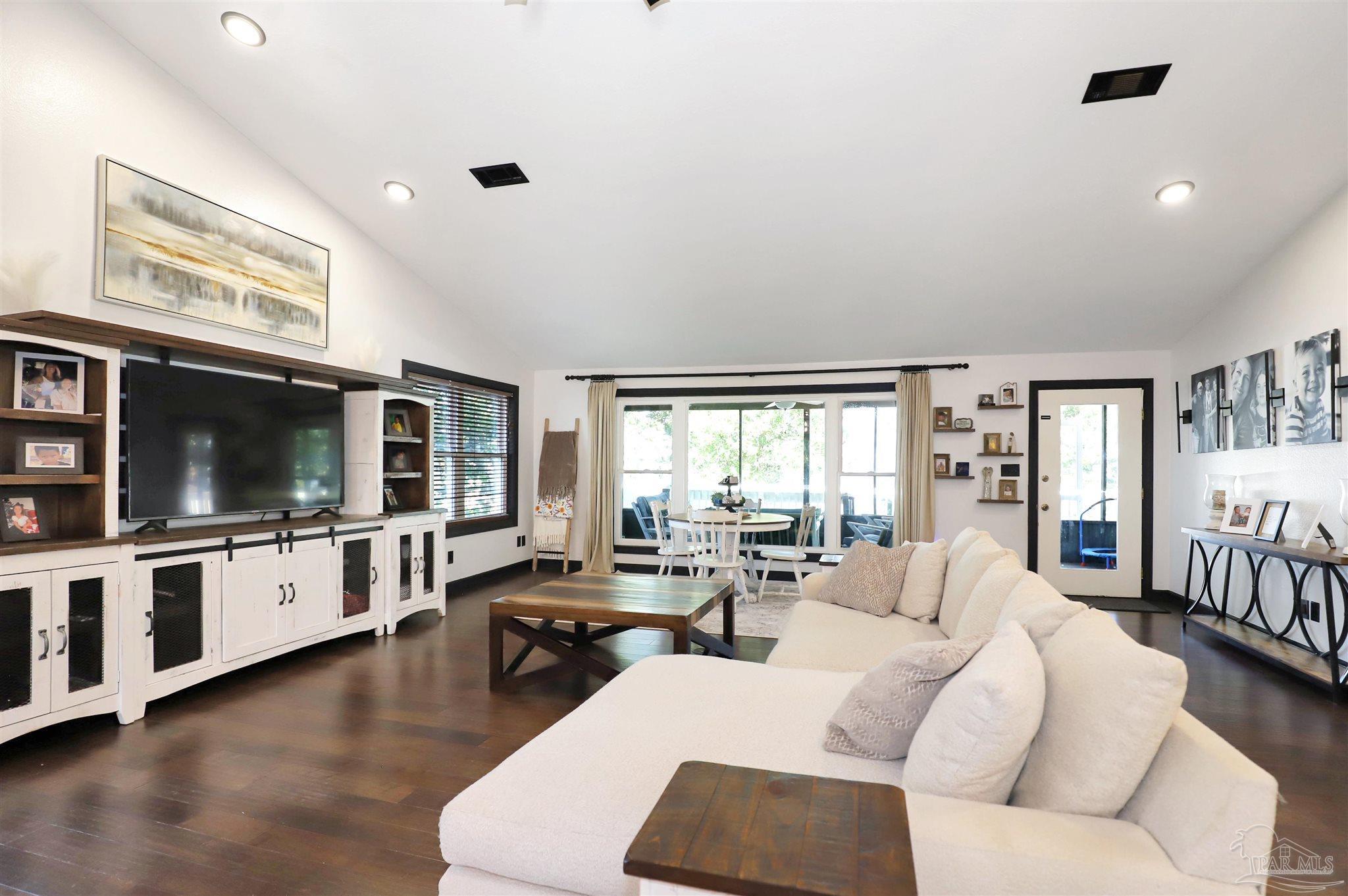 Let’s start outside, because that’s where this home truly shines. As you come through the electric gate, the property opens up in front of you — plenty of space for cars, projects, and storage with a 22x52 detached garage/workshop, an additional carport, and a separate shed, grapefruit and satsuma trees. But the water pulls you forward. You’ve got 83 feet directly on Escambia Bay, with a seawall in excellent condition, a wood walkway, metal corrugated wall, and rip rap for peace of mind. A decorative metal fence runs the length of the waterfront, complete with a pedestrian gate that leads to your private dock and boat lift — water, power, and a new 6,000-lb lift ready for an 18-ft boat. The dolphins, reds, trout, mullet, sheepshead, and blue crabs show up regularly, like neighbors popping by to say hello. Sunrises and sunsets bookend each day with color. Up on the main level, the screened porch stretches an unbelievable 48 feet — and the open porch mirrors it, giving you two different ways to take in the bay. Mornings with coffee, evenings with friends, quiet time with a book. Down on the lower level, there’s another covered outdoor space right at the waterline, perfect for grilling or hosting without ever leaving the breeze. Inside, the home is set up for flexibility. Two full bedrooms and two baths on each level make it easy for multi-generational living, guests, or simply extra privacy. Both floors have their own living room, kitchen, and laundry. On the main level, the open layout brings the kitchen, dining, and living together — simple, comfortable, and perfect for everyday living. The sellers added extra pantry cabinetry, shelving, and a utility sink & fresh interior paint to keep everything feeling clean and bright. Whether you're coming home from a day on the boat, hosting weekend guests, or settling in to watch the sky change over the bay, this property makes it easy to live on the water and with it. HVACs: 2017/19 Water heaters: 2024/25 Roof: 2022