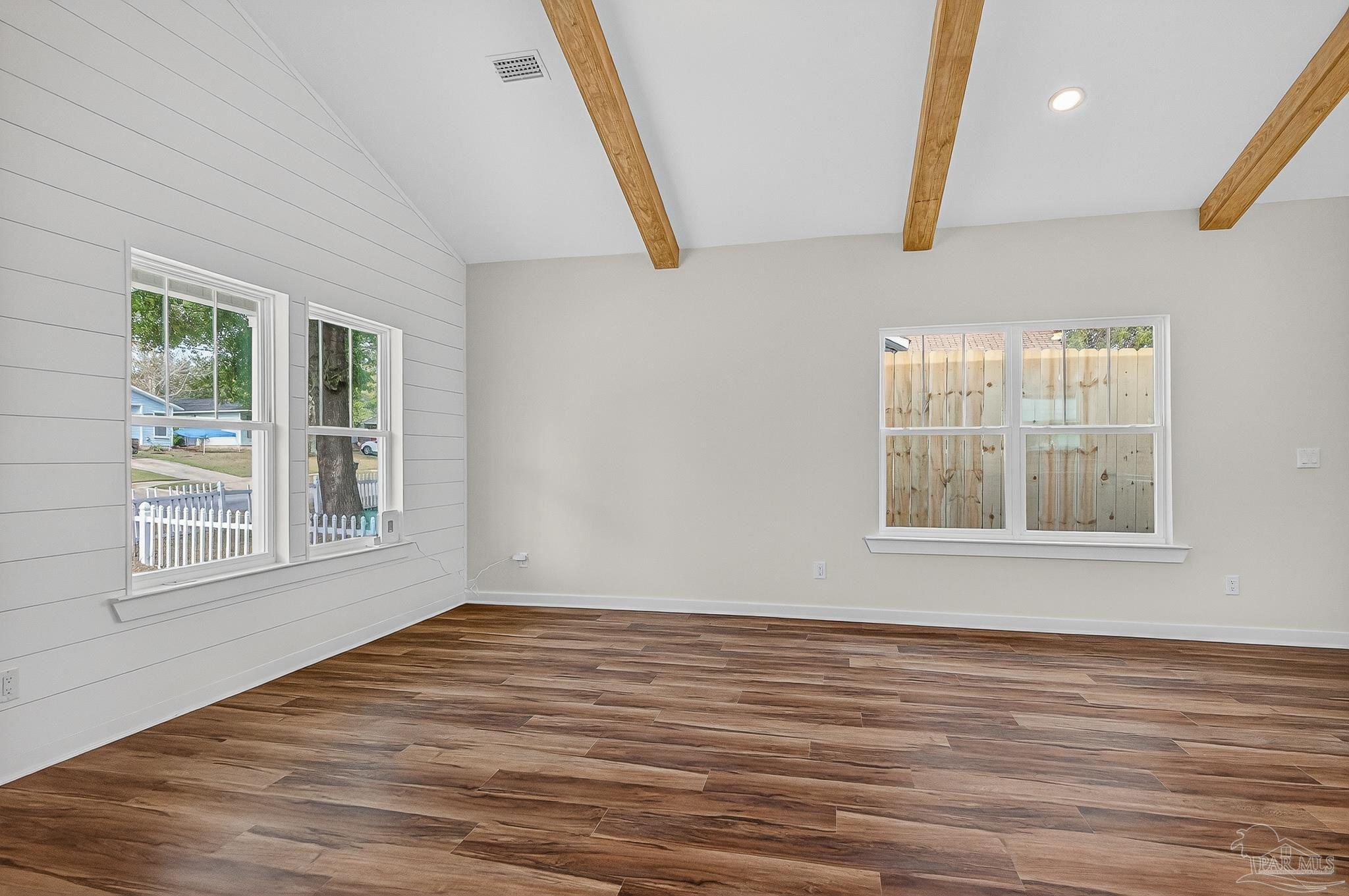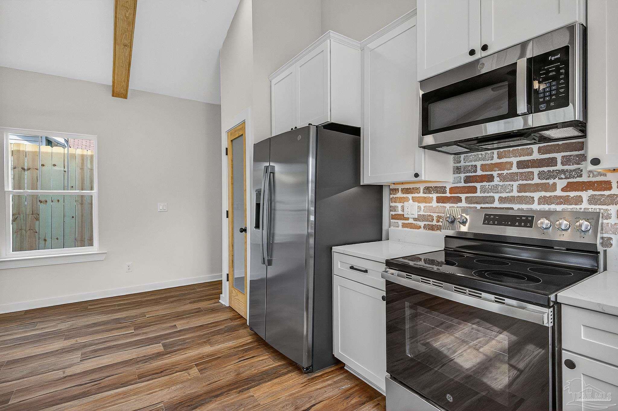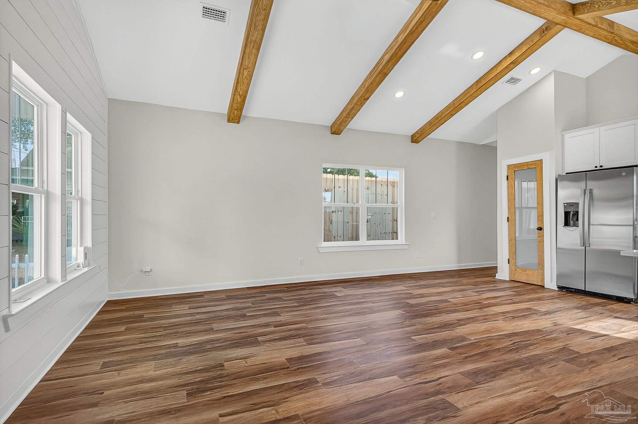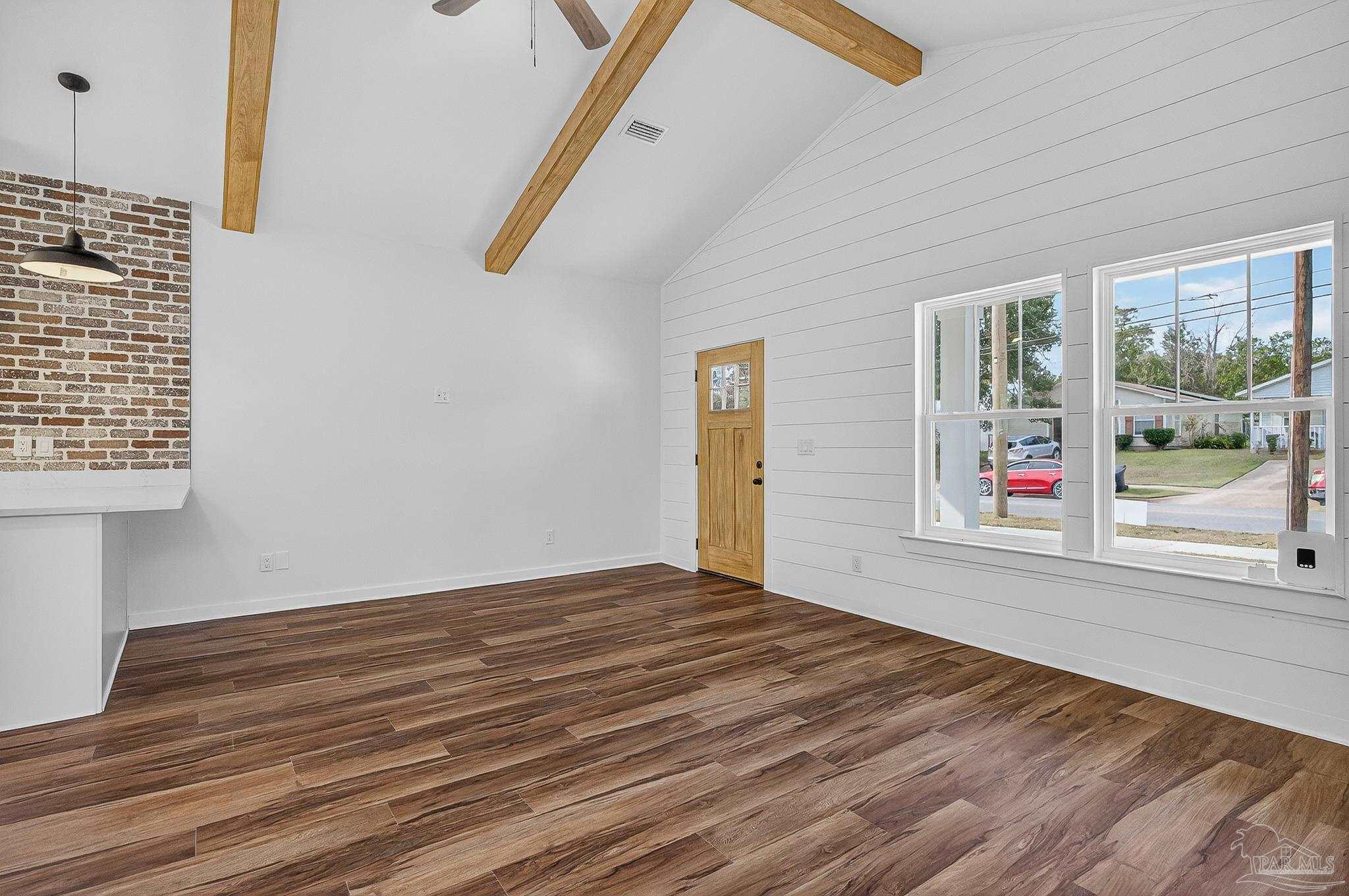 Welcome to this beautifully crafted custom 1,330 sq/ft new build—where modern finishes meet classic Southern charm. This 3 bedroom, 2 bathroom home offers an inviting open-concept layout highlighted by wood ceiling beams and gorgeous LVP flooring throughout. The kitchen is a true showpiece with quartz countertops, a spacious island, under-cabinet lighting, and sleek stainless-steel touches—perfect for both everyday living and entertaining. The living room features charming shiplap accents, adding warmth and character to the space. Retreat to a serene primary suite complete with a tiled walk-in shower, while both bathrooms include beautiful shiplap detailing for a custom, elevated feel. Enjoy your mornings and evenings on either the front or back porch, offering peaceful spaces to relax. Located just minutes from downtown with no HOA, you’ll have the convenience you want and the freedom you deserve. This thoughtfully designed home blends style, comfort, and location—ready for you to move in and make it your own.