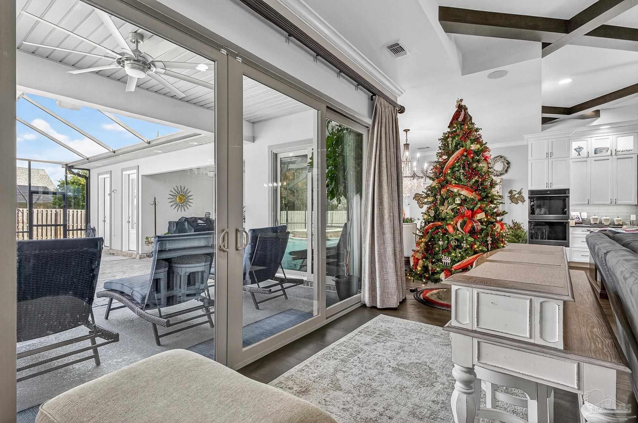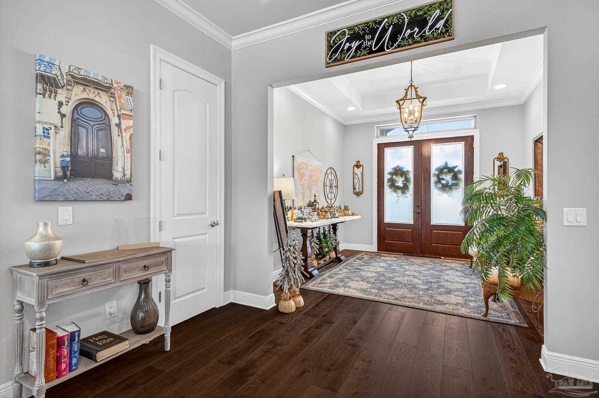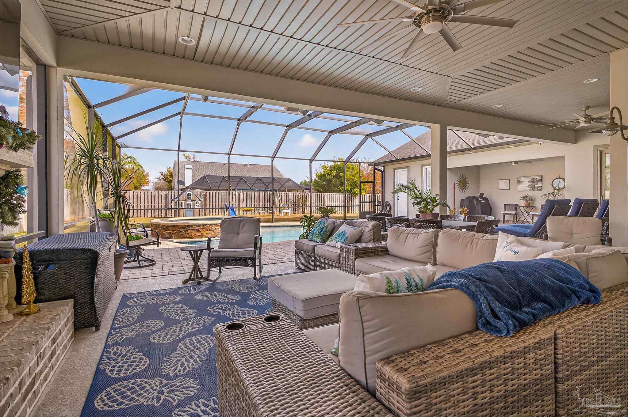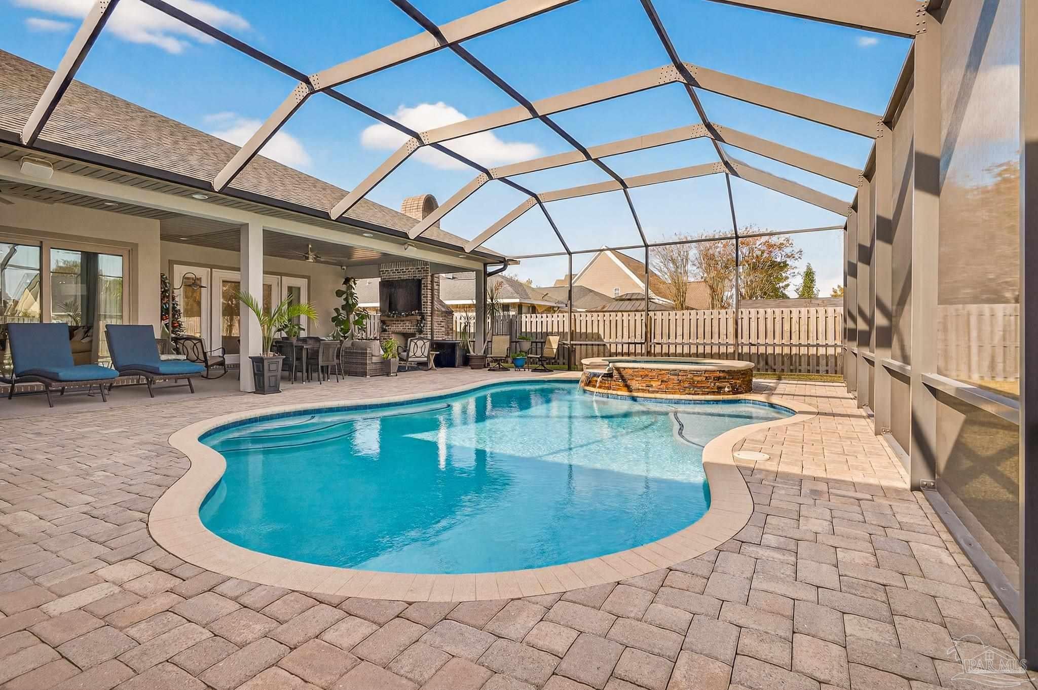 Welcome to this stunning 2017 custom-built residence, crafted with superior construction and high-end finishes throughout. Designed with durability and efficiency in mind, this home features 2x6 exterior walls, ½” OSB plywood, and 6” spray-foam insulation, paired with impact-rated windows and doors for exceptional strength and energy performance. Step inside to soaring 10–11 ft ceilings, 8’ interior doors, and an open, elegant layout filled with natural light. This true Smart Home offers premium convenience with built-in surround-sound speakers in the main living area and the primary suite—including the bathroom—fully operated by the Control4 app from your phone or iPad. Enjoy additional luxury touches such as custom motorized blackout drapes in the main living area and primary bedroom. Outside, your private oasis awaits. The backyard showcases a beautiful gunite swimming pool with a spill-over hot tub, heated by gas and controlled by the newly installed automated OmniLogic pool system. Perfect for entertaining or unwinding at home. Additional upgrades include: • Whole-house generator for peace of mind • Newly upgraded automated pool equipment • High ceilings, thoughtful design, and quality craftsmanship throughout. This home blends luxury, technology, and comfort—offering a rare opportunity to own a truly custom, high-performance property.