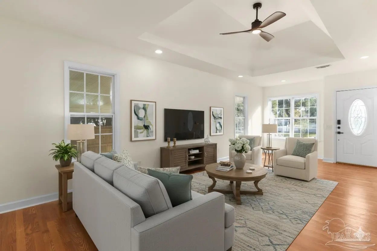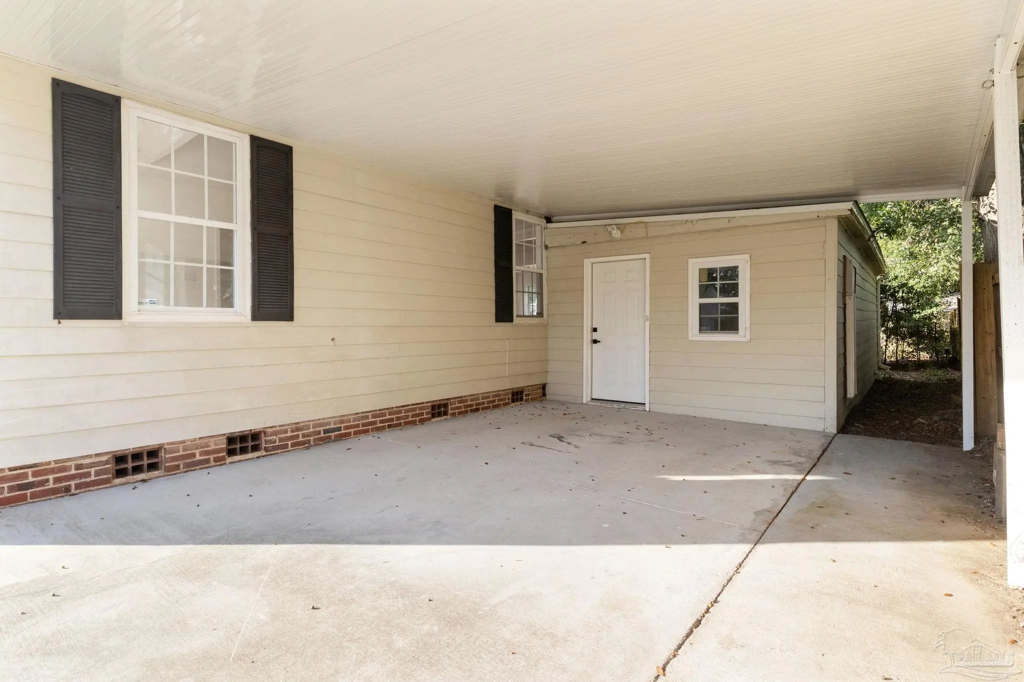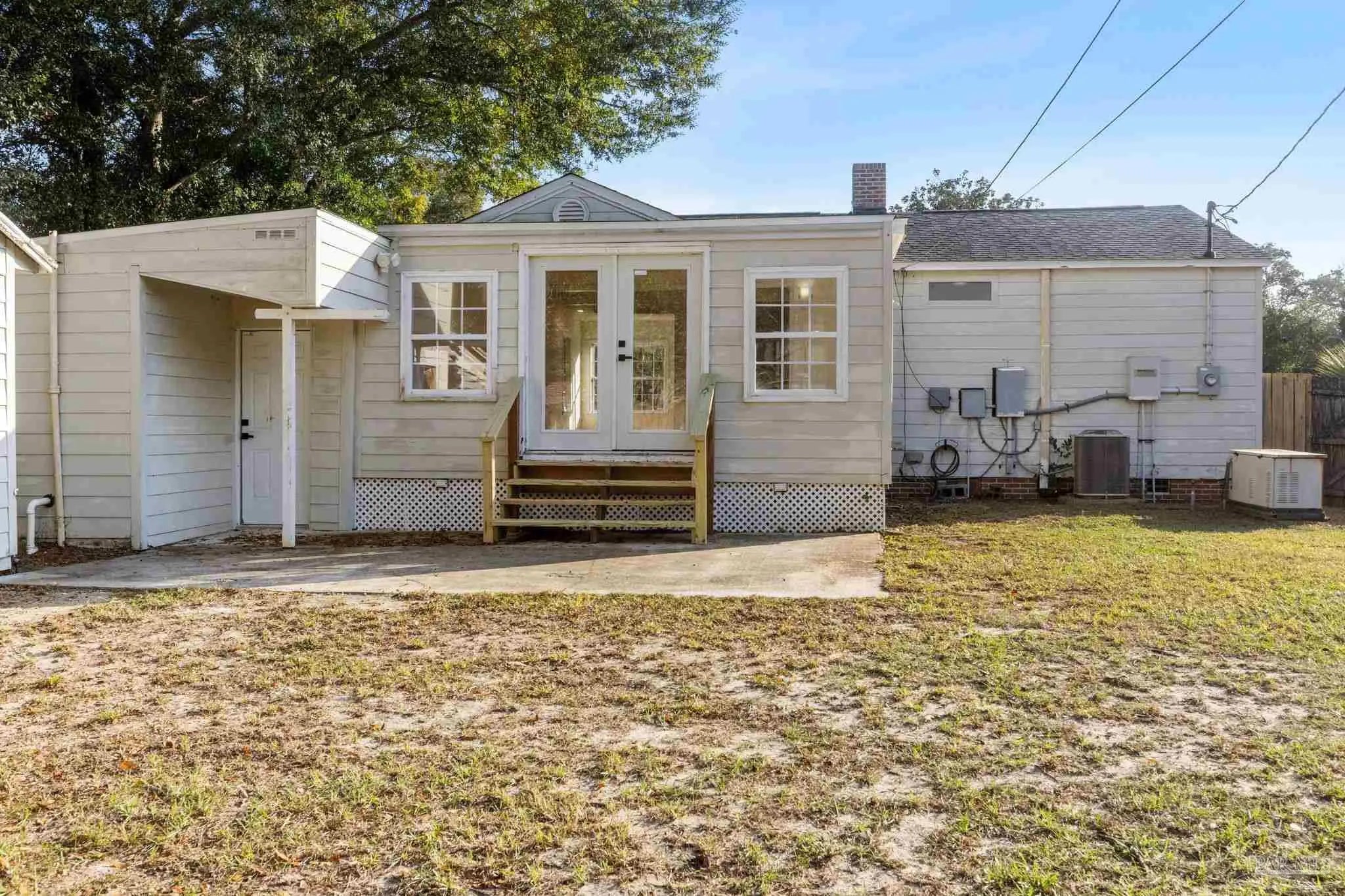 Looking for a home in the highly desirable Navy Point community? Look no further, this delightful cottage is move-in ready! From the moment you arrive, you’ll appreciate the covered carport and welcoming front entry. Inside, you’ll be greeted by a bright living room featuring a high tray ceiling, ceiling fan, and natural light. The open layout flows from front to back, and the home offers wood-look flooring and hardwood, NO CARPET! The dining area is spacious enough for your favorite dining table, and the adjoining sunroom is the perfect spot to enjoy morning coffee, read, or take in the sunshine. Off the dining room is an additional bedroom with a window unit, suitable for a guest suite, hobby room, or home office, and it has its own door for entry. The laundry/utility area is conveniently located off this space and includes a wash sink. Back in the central area, you’ll find a galley-style kitchen equipped with new stainless-steel appliances, a smooth-top electric range, a farmhouse-style sink, granite countertops, and a pantry with a sliding barn door for added character. Down the hallway, the primary suite offers a private bathroom with a linen closet, tile flooring, and a walk-in tiled shower. The second bedroom is nicely sized, and there’s also a full hallway bathroom featuring tile floors, a single vanity, and a tub/shower combo. Through the rear French doors, you’ll find a backyard perfect for grilling, relaxing, or gathering with friends. This home is full of charm and ready for its next owner to move right in. Navy Point is a community like no other, with scenic walking trails, a playground, a boat ramp, and easy access to Pensacola favorites such as the National Naval Aviation Museum, U.S. Navy Blue Angels practice flights, Pensacola Lighthouse, Fort Barrancas, and historic downtown Pensacola.