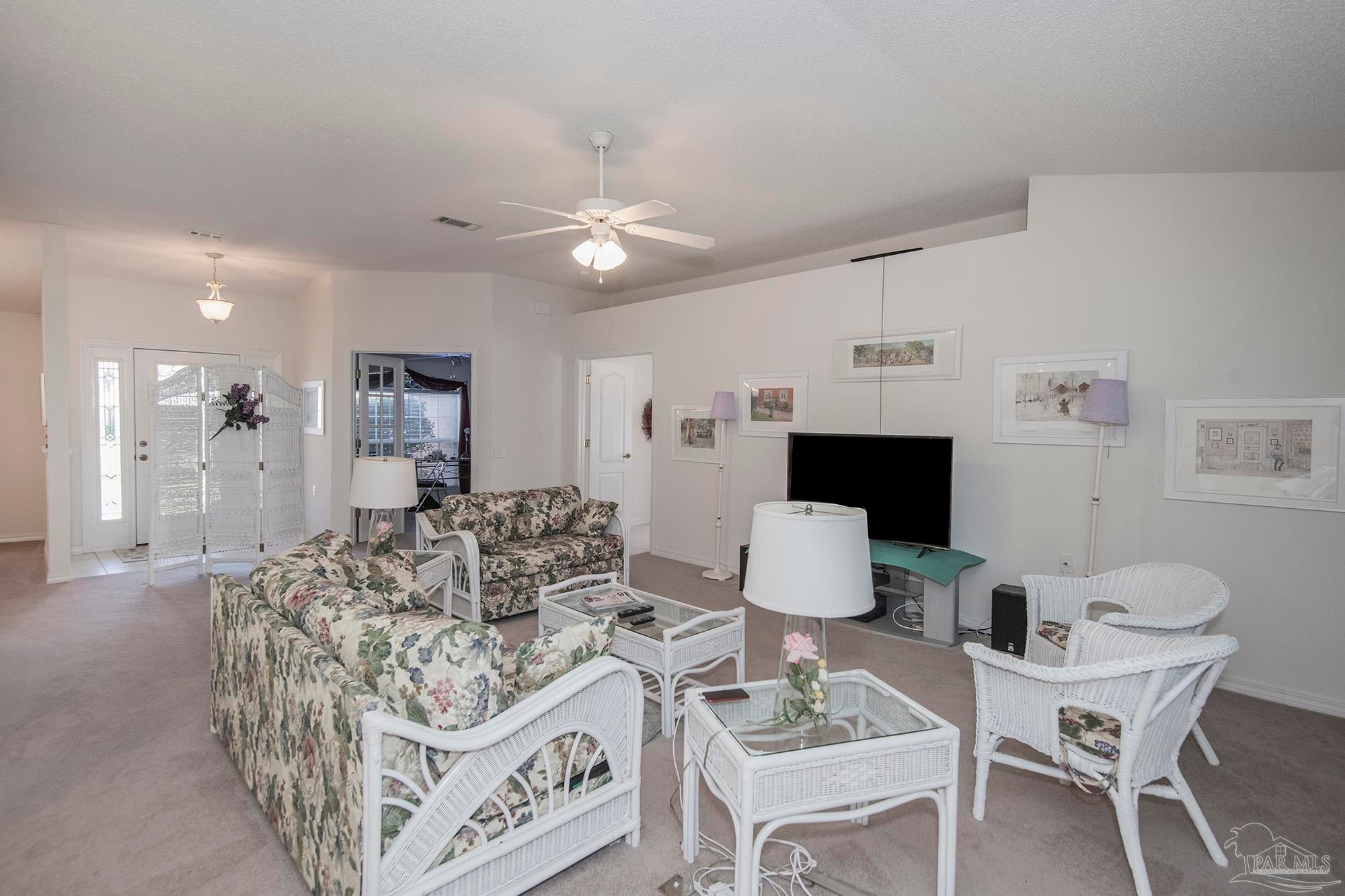 Discover comfort, space, and unbeatable location in this well maintained all-brick 3-bedroom, 2-bath home with a dedicated office, perfectly situated on a quiet cul-de-sac. From the moment you step inside, you’re welcomed by vaulted ceilings and an open, airy layout that fills the home with natural light. The oversized kitchen is ideal for entertaining—featuring abundant counter space, generous cabinetry, and a functional layout perfect for both everyday meals and hosting. A private office provides the flexibility needed for remote work, hobbies, or a quiet retreat. Outdoors, the home is equipped with well irrigation, making lawn care effortless year-round. The property is surrounded by beautiful parks, offering endless recreation and scenic walking paths just steps from your door. Residents also enjoy access to the sound with a community pier, perfect for weekend relaxation, kayaking, or taking in the sunset over the water. Combining solid construction, thoughtful design, and an exceptional location, this home is truly a rare find—ready for its next owners to fall in love.