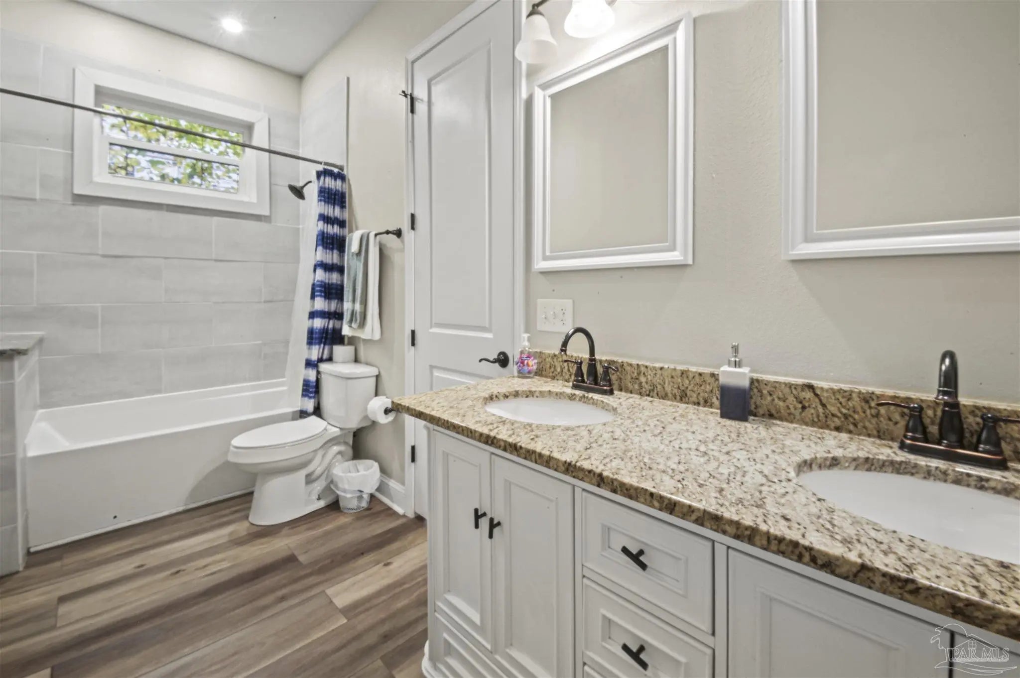 This FULLY-UPDATED, historic home is located just north of downtown Pensacola in the highly desired North Hill neighborhood! All major items are taken care of - 2022 roof, 2021 HVAC, and 2021 water heater. Stepping inside, you will notice the perfect blend of historic charm and modern convenience. This home offers an open-concept layout with jaw dropping 12 FOOT ceilings and 6 FOOT windows pouring natural light in from all sides! The LVP flooring throughout the common areas makes cleaning a breeze, and the seamless transition between spaces is perfect for entertaining guests. The HUGE kitchen is a chef's dream; complete with an abundance of soft-close cabinets, seemingly unlimited granite counter space, and stainless steel appliances. The massive master suite is located in the rear of the home, and includes a private en-suite as well as a walk in closet. All guest bedrooms are equally as spacious, easily accommodating King beds. To top it off, this property even features an oversized laundry room just off the kitchen that can be used for storage or customize it for maximum laundry efficiency! After long days in the Florida sun, enjoy a cup of coffee as the sun sets from the spacious covered patio. Stop on by and make this house your home today!