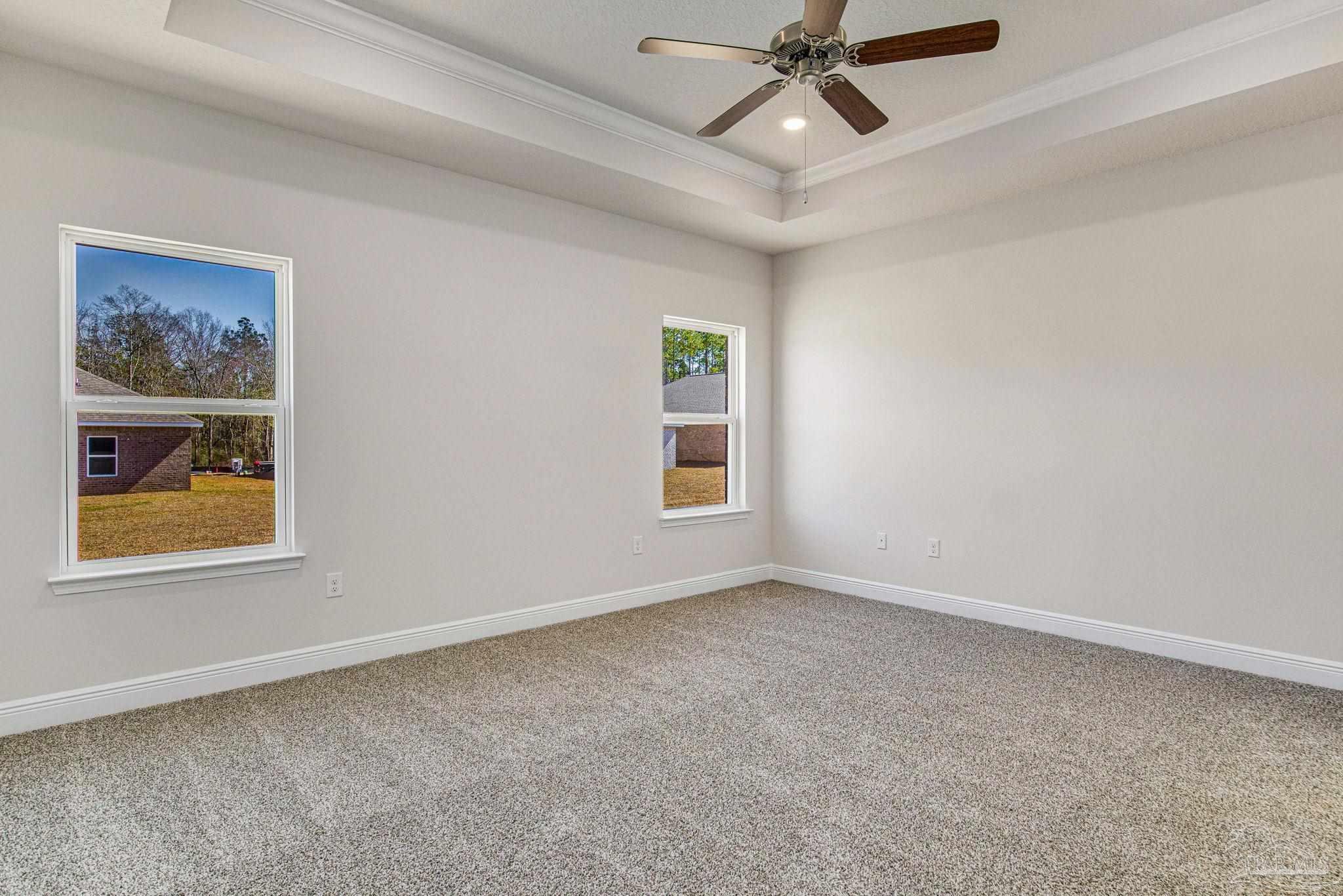 - Baseboards, Ceiling Fan(s), Crown Molding, High Ceilings, Recessed Lighting