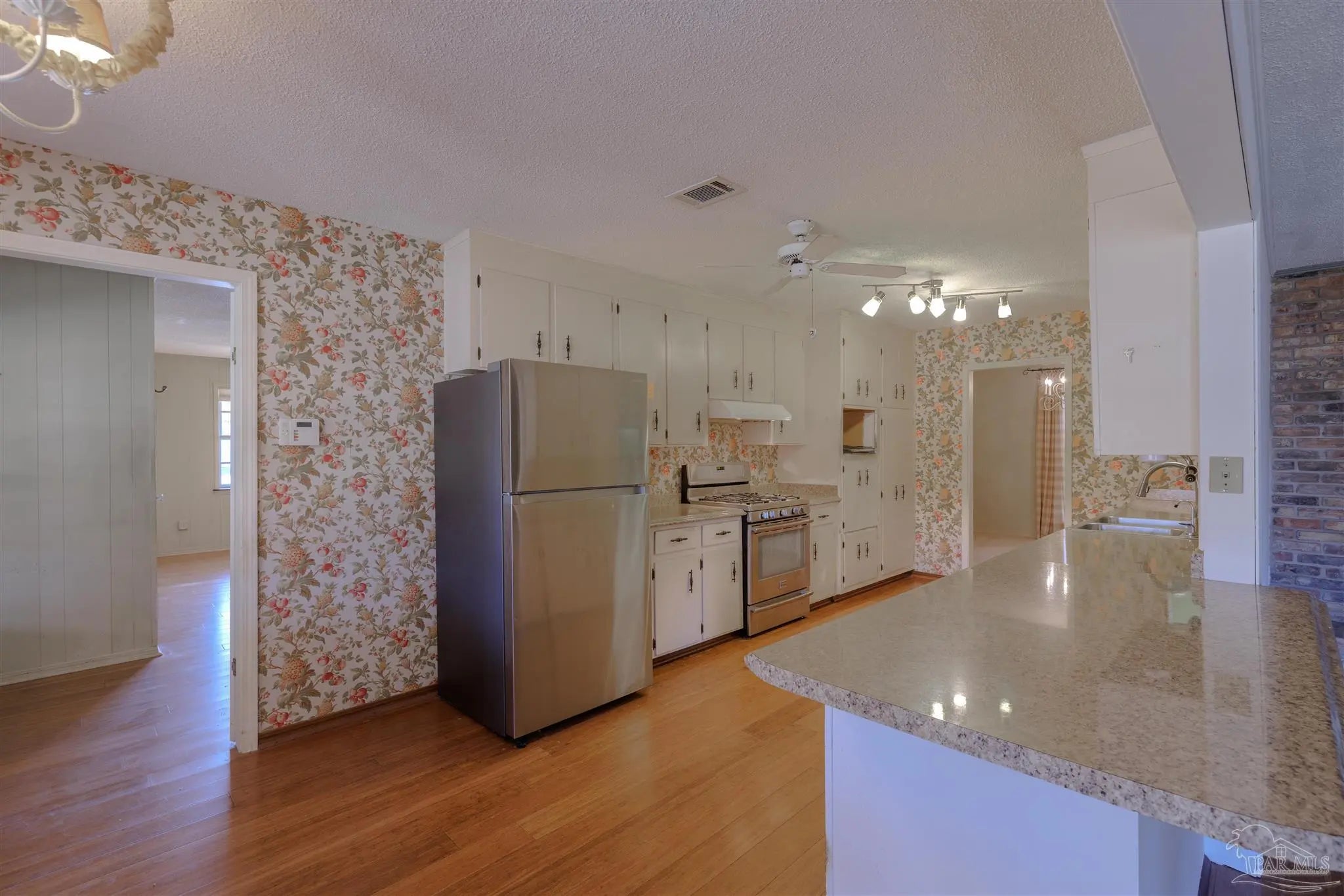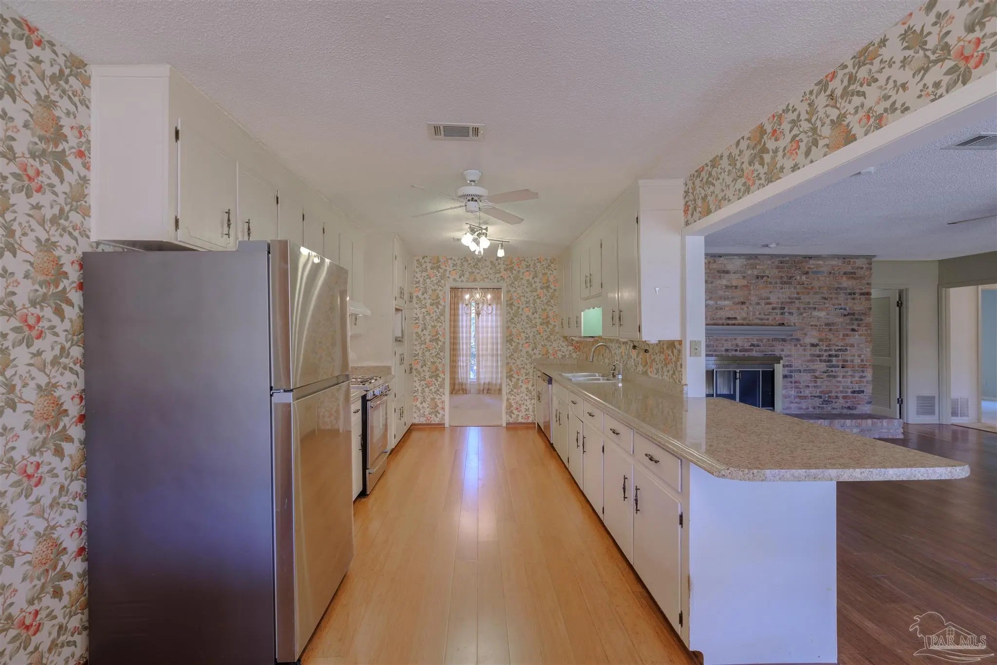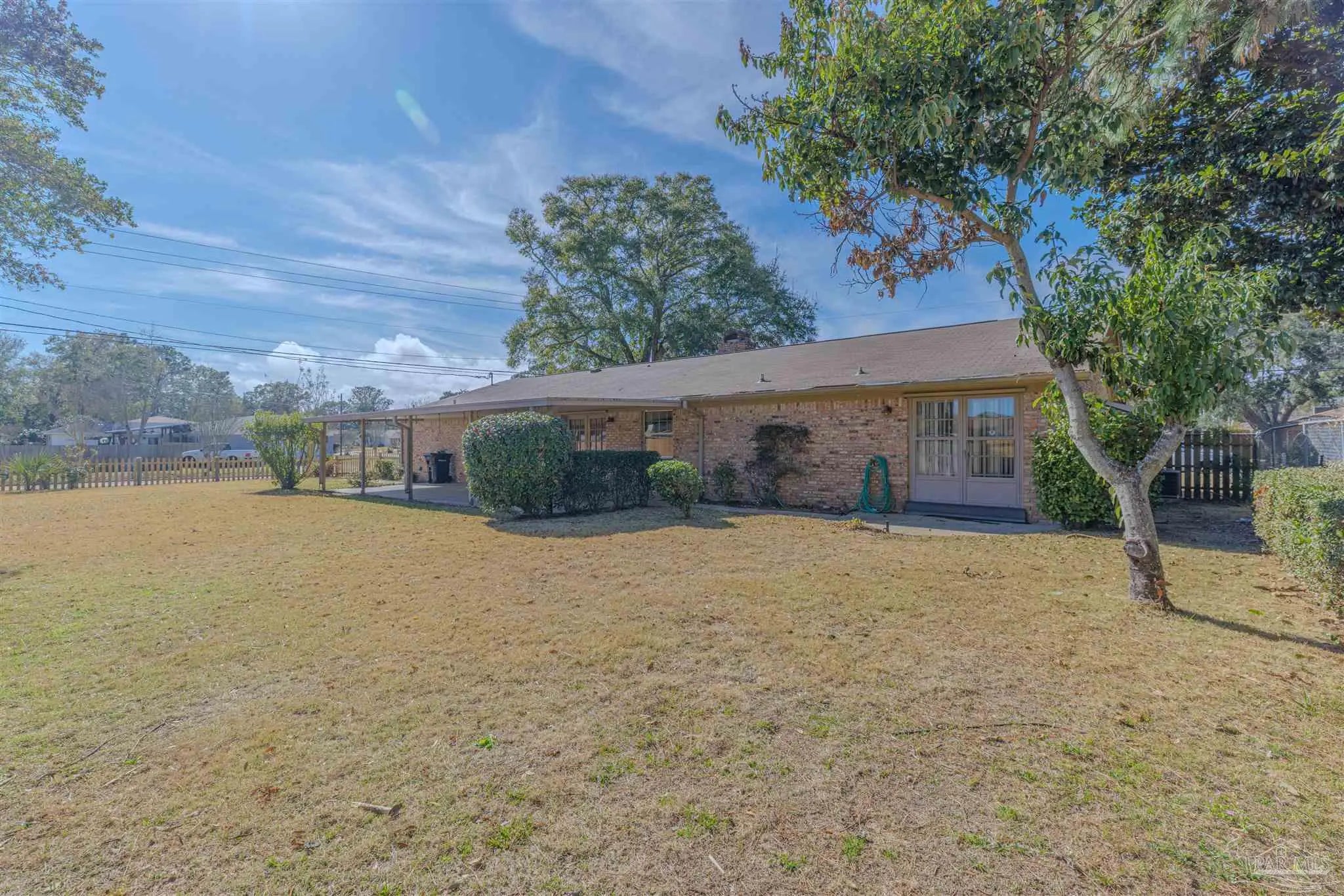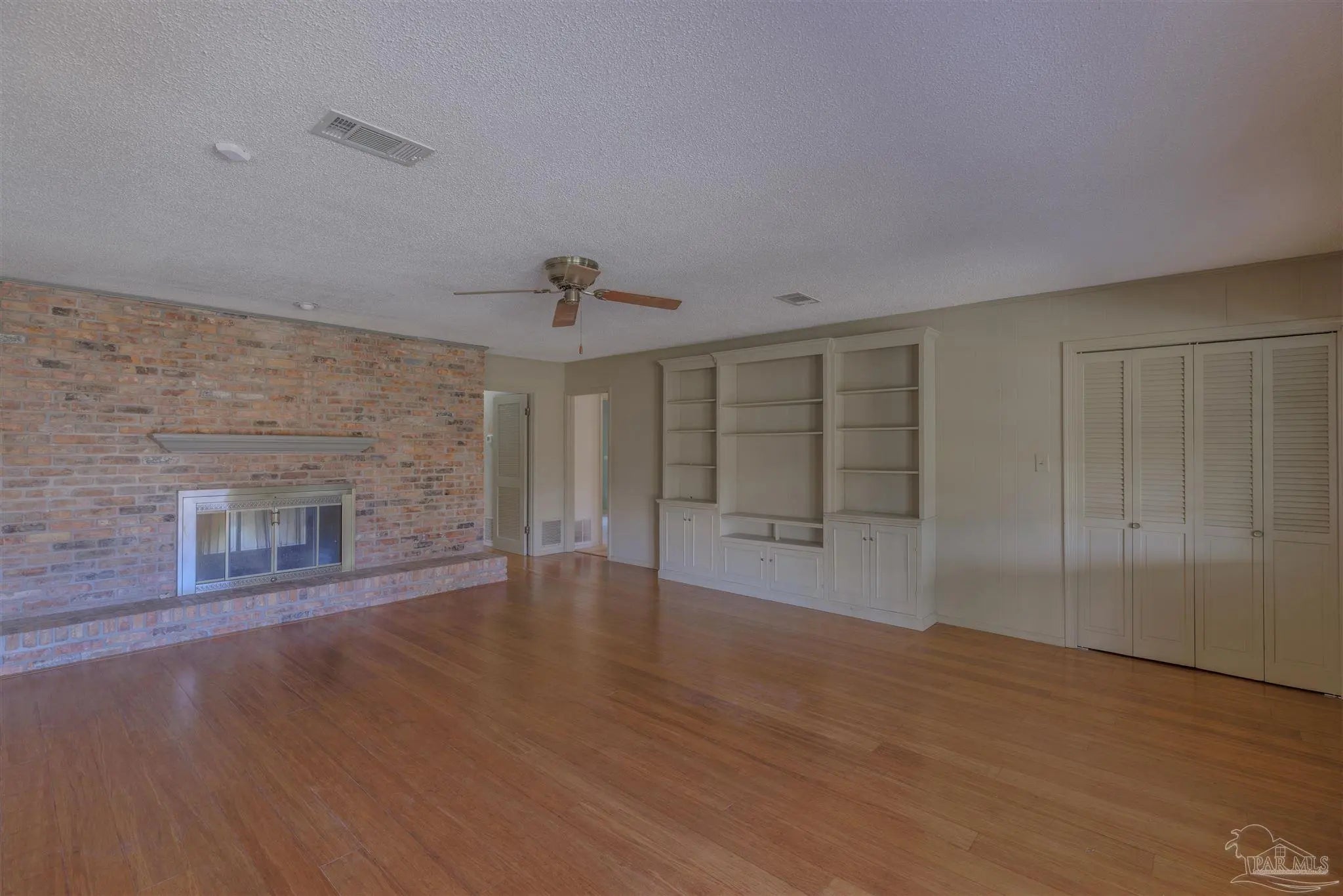 Discover this spacious home, offering comfort, flexibility, and exceptional livability. A standout feature is the large bonus room with its own full bathroom and shower—perfect as a second primary suite, guest quarters, or multigenerational living space. A dramatic double-sided brick fireplace serves as the centerpiece of both the living room and family room, creating an inviting atmosphere. The main bedroom boasts double doors opening to the backyard, while additional double doors off the great room provide seamless access to the patio for easy indoor–outdoor entertaining. The home features beautiful bamboo floors crafted from engineered wood planks, adding warmth, style, and durability to the interior. Outdoors, includes an avocado tree and a fragrant gardenia tree, enhancing the backyard with natural beauty and charm. Located in a desirable sidewalk community, this home also offers charming window awnings, extensive built-in cabinetry, a Carrier HVAC system, and a 5-burner gas stove. It is additionally equipped with hurricane straps that tie the roof securely to the structure, along with metallic storm shutters—features that may help lower insurance costs while adding protection and peace of mind. This is a must-see home with exceptional potential and timeless appeal.