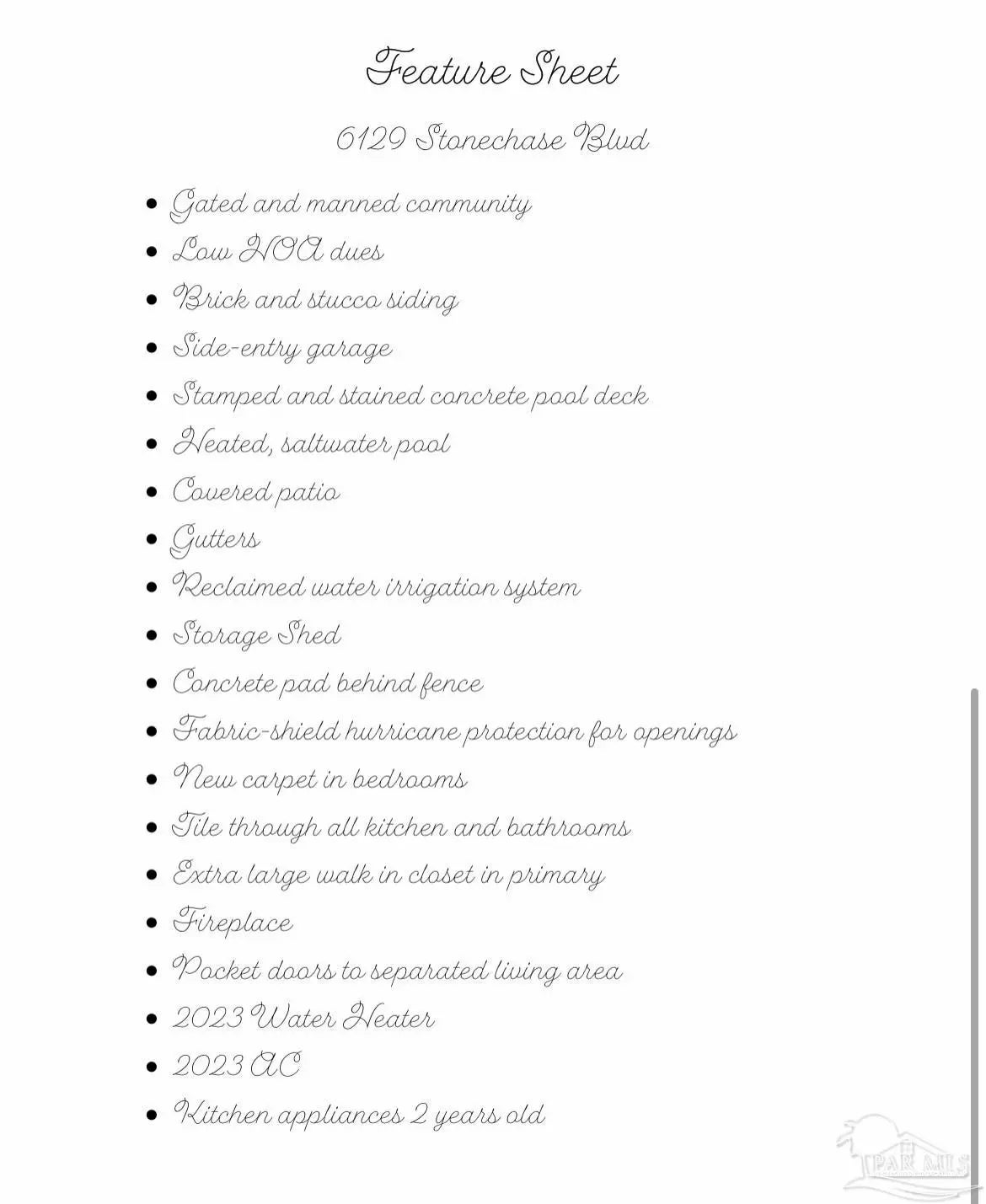 Welcome to this beautifully maintained pool home located in a gated community offering peace of mind, curb appeal, low HOA dues, and an amazing school district. Featuring classic brick and stucco siding and a convenient side-entry garage, this residence blends timeless style with everyday functionality. Step inside to find beautiful architectural and bonus features such as arched doorways, pendant lighting, new carpet in the bedrooms, tile flooring throughout the kitchen and all bathrooms, and thoughtful touches like pocket doors that open to a separate living area—perfect for a media room, or private retreat. French doors separate the office from the rest of the home-convenient for those who work from home. The inviting living room showcases a cozy fireplace, adding warmth and charm to the heart of the home. The kitchen is equipped with appliances just three years old, and gas stove, ensuring a modern cooking experience, while the extra-large walk-in closet in the primary suite provides exceptional storage and comfort. Major systems have been updated as well, including a 2023 water heater and 2023 HVAC system, making this home truly move-in ready. Step outside to your own private oasis: a heated, saltwater pool surrounded by a stamped and stained concrete decking, perfect for year-round enjoyment. The covered patio offers a relaxing space for outdoor dining or lounging, and the yard is enhanced by a reclaimed-water irrigation system to keep landscaping lush and efficient. Additional exterior features include a storage shed, concrete pad behind the fence ideal for extra vehicles or equipment, and fabric-shield hurricane protection for all openings—providing ease of mind during storm season. Combining comfort, updates, and standout amenities, this home delivers the best of Florida living in a secure, well-kept community. See the link for a virtual walkthrough tour! Also listed for rent.
