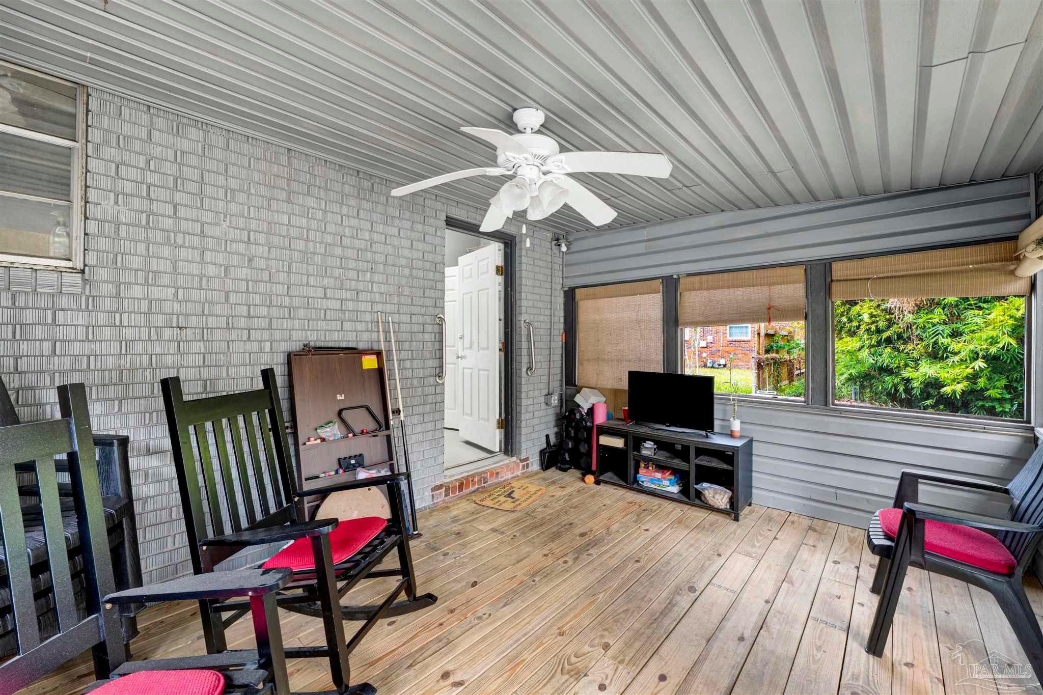 Welcome to this all-brick 3 bedroom, 2 bath home situated on over half an acre, offering space, potential, and a fantastic foundation for personalization. While the home needs a little TLC, it already boasts great features, generous room sizes, and valuable upgrades throughout. Step down into the large living room, highlighted by wood laminate flooring, high ceilings, and partial exposed brick walls that add charm and character. The adjacent dining room features luxury vinyl plank flooring and overlooks the living room through a wide, beautifully cased opening—perfect for both casual meals and entertaining. The oversized kitchen is a true standout with a center island, granite counters, abundant cabinetry, and a mix of stainless and black appliances, including a gas range—ideal for the home chef. The primary suite includes wood laminate flooring and an ensuite with a single vanity and walk-in shower. The additional bedrooms feature vinyl flooring, ceiling fans, and ample closet space. A second full bath offers a single vanity with granite counter and a tub/shower combo with a tiled surround. A spacious laundry room provides convenience and storage and includes an exterior door that leads to the screened porch overlooking the fenced backyard. Outdoor living shines here with an open deck, a BBQ with smoker, and a large powered workshop complete with a roll-up door—perfect for hobbies, storage, or projects. With its solid brick construction, generous lot, and thoughtful layout, this home offers an incredible opportunity to add your personal touch and make it truly your own.